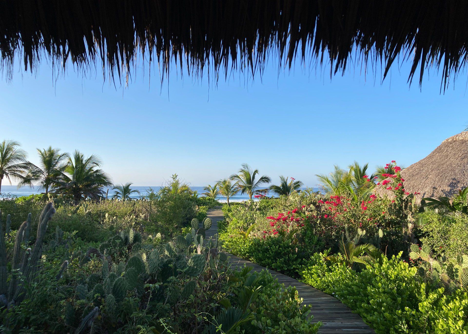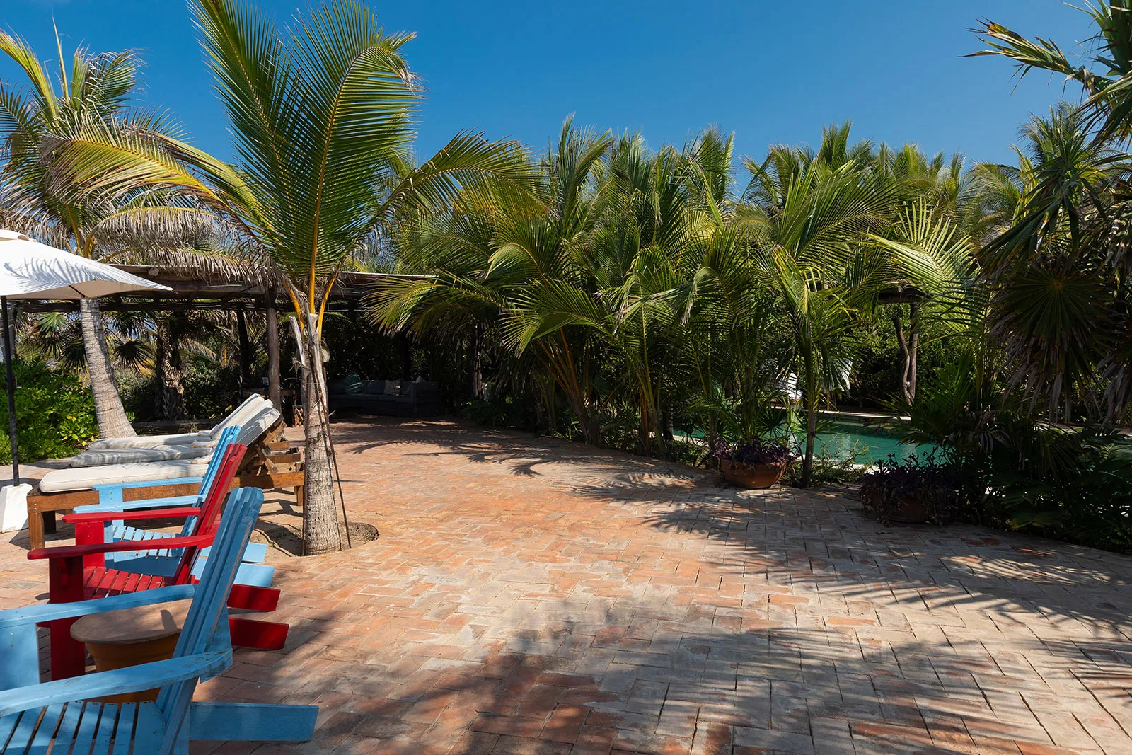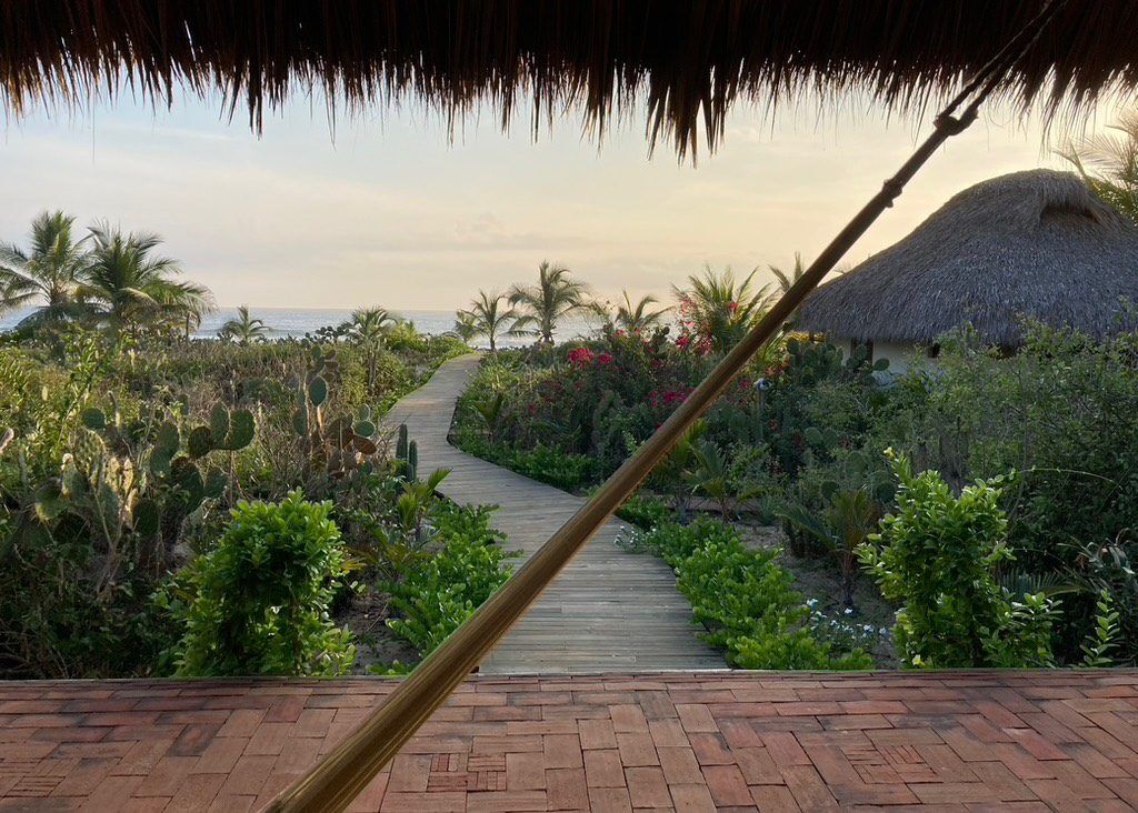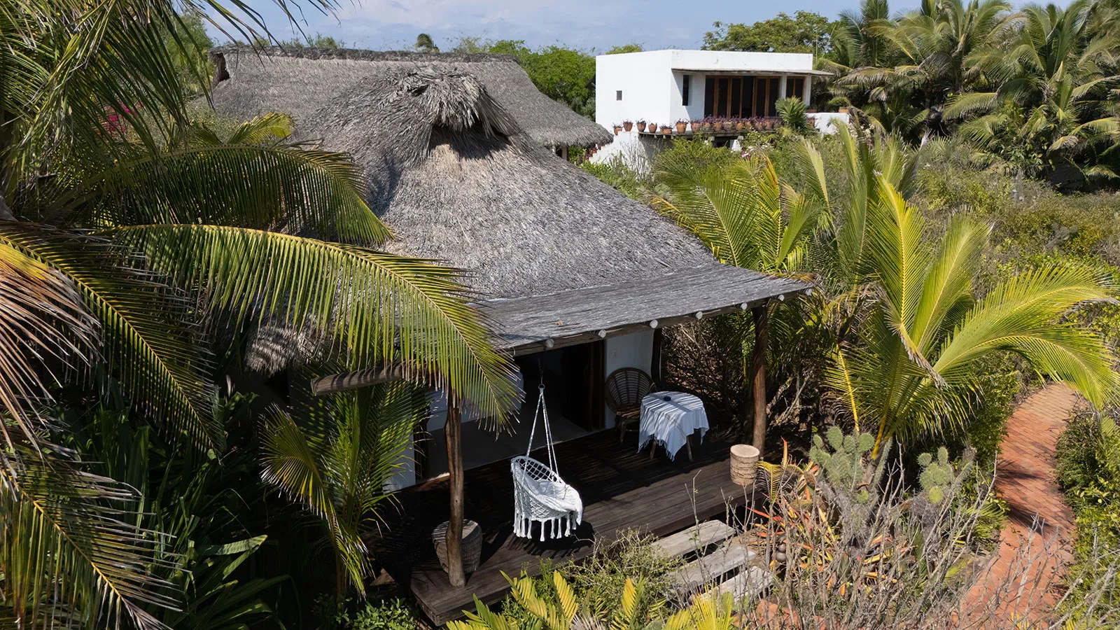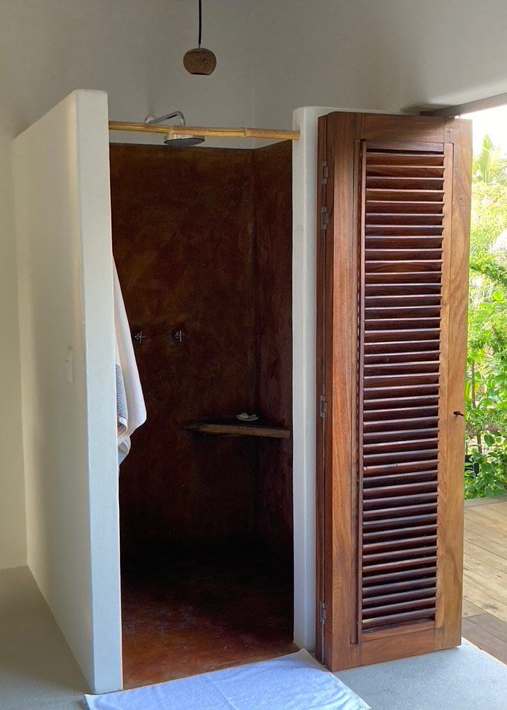 Situated on the ground floor, Bungalow Lavanda presents guests with captivating views of the gardens, pool, and the vast ocean. Its interior, painted in soft, neutral colors, harmoniously contrasts the rich green of the encircling jungle. When you lie on the king-sized bed, the serene outdoor view fills your sight from the terrace. Additionally, the bungalow boasts spacious closets, a comprehensive bathroom, and warm wood shutters. These features and a handy refrigerator for cooling beverages and snacks make Lavanda a delightful retreat.