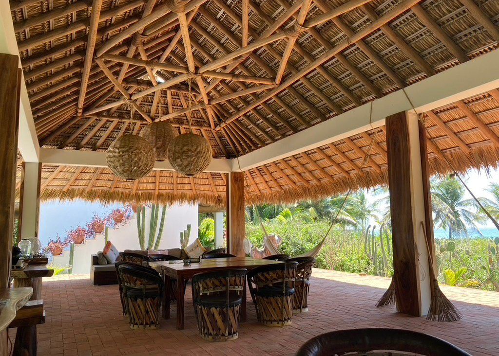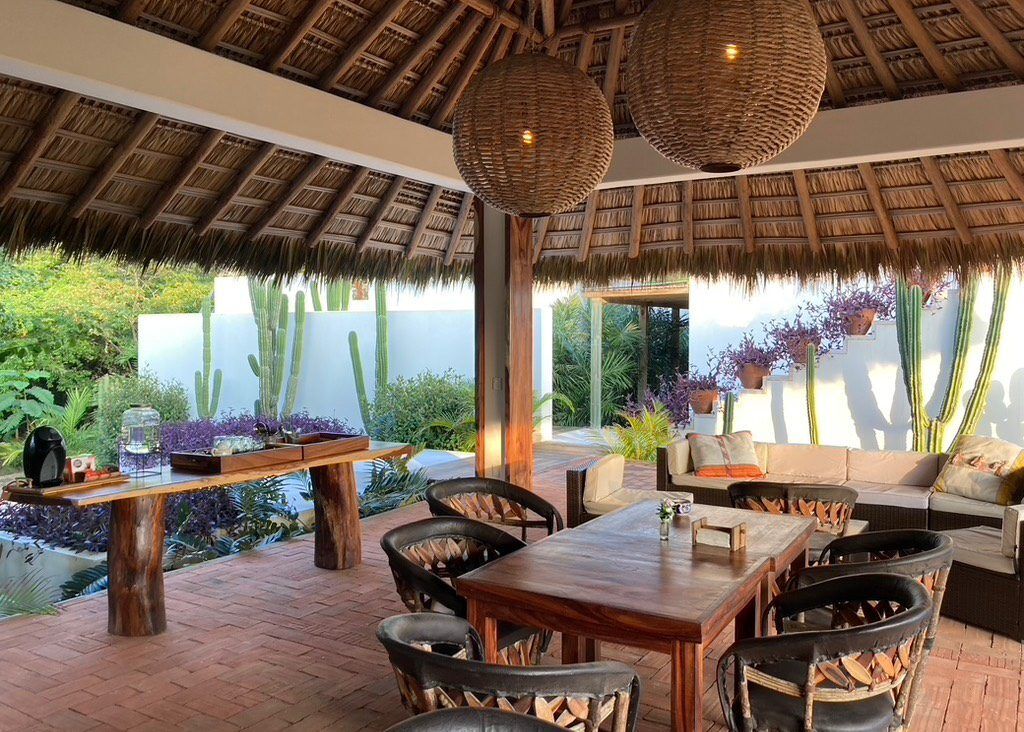 Every facet of this tropical haven centers around its prime location. Nestled in Oaxaca’s lush semi-tropics, the villa effortlessly integrates modern, sustainable amenities with nature. Built to embrace and accentuate its natural surroundings, Casa Los Guajes promises guests a tranquil, one-of-a-kind experience. The highlight? Its open-plan common areas, the pristine pool spots, and the welcoming sea-facing palapas where guests can unwind.