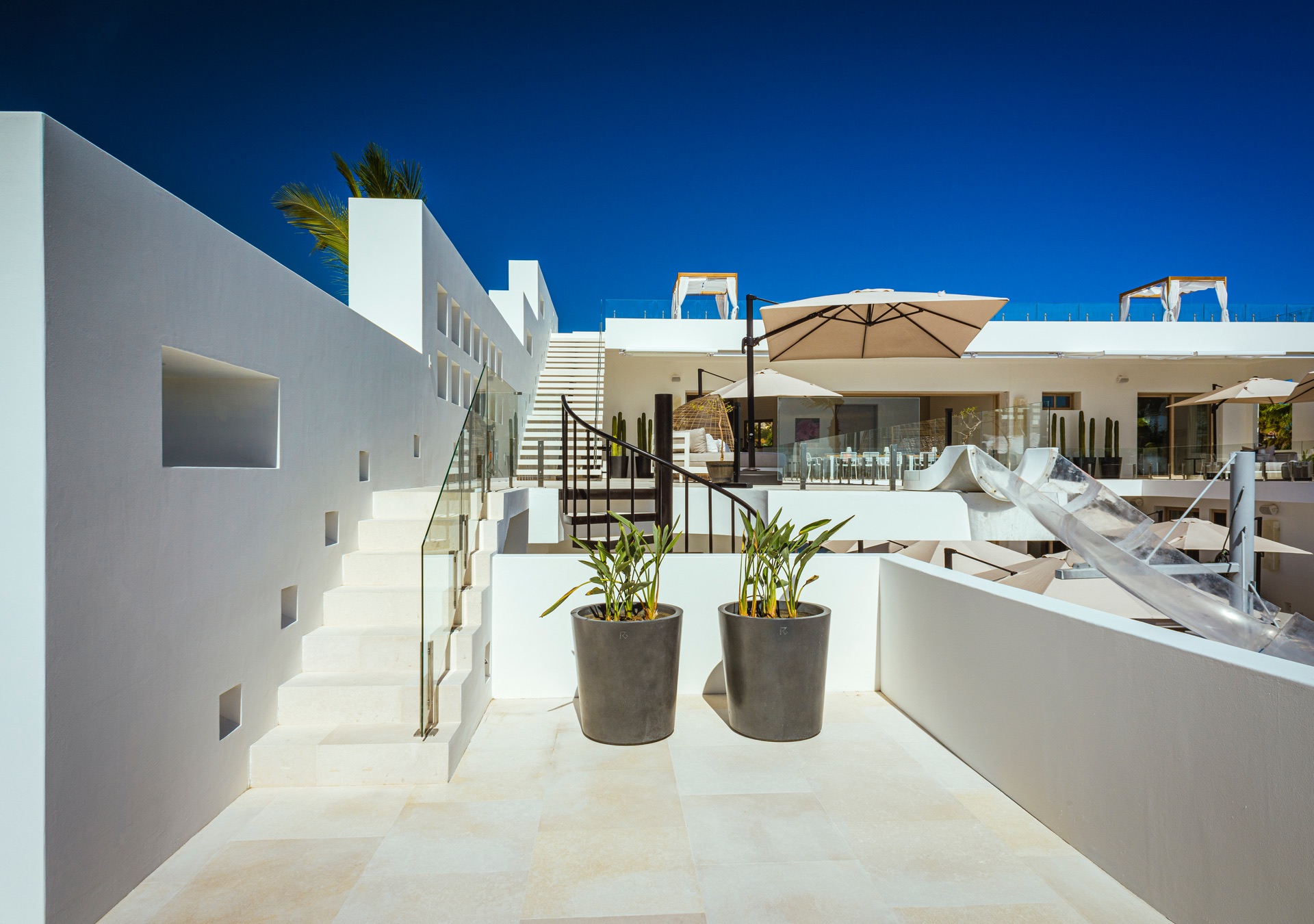 Casa Aqua Blanca’s outdoor areas include a sunroof/roof terrace, balcony, patio, and beach access. The villa is equipped with beach essentials and ample outdoor seating areas.