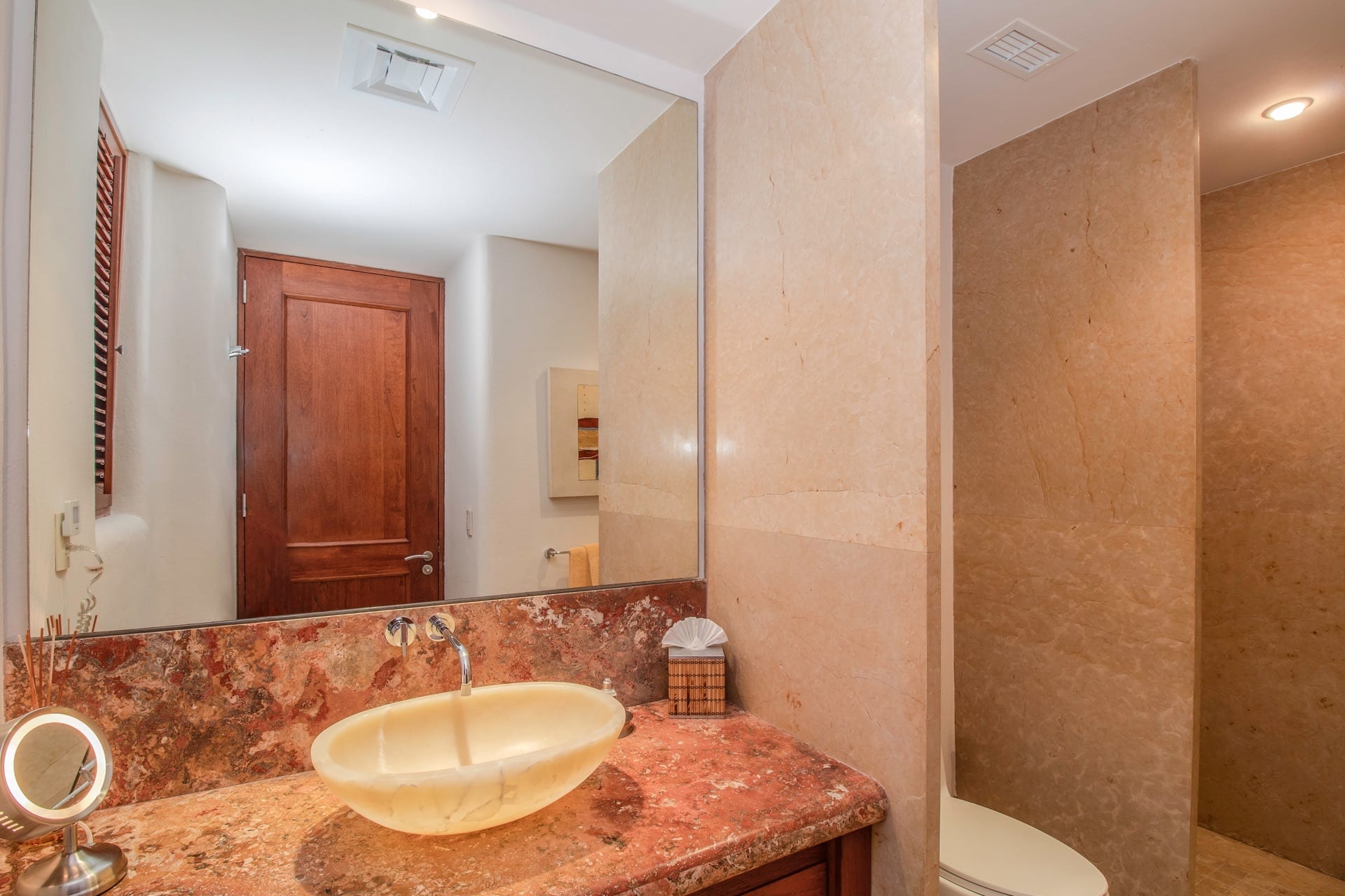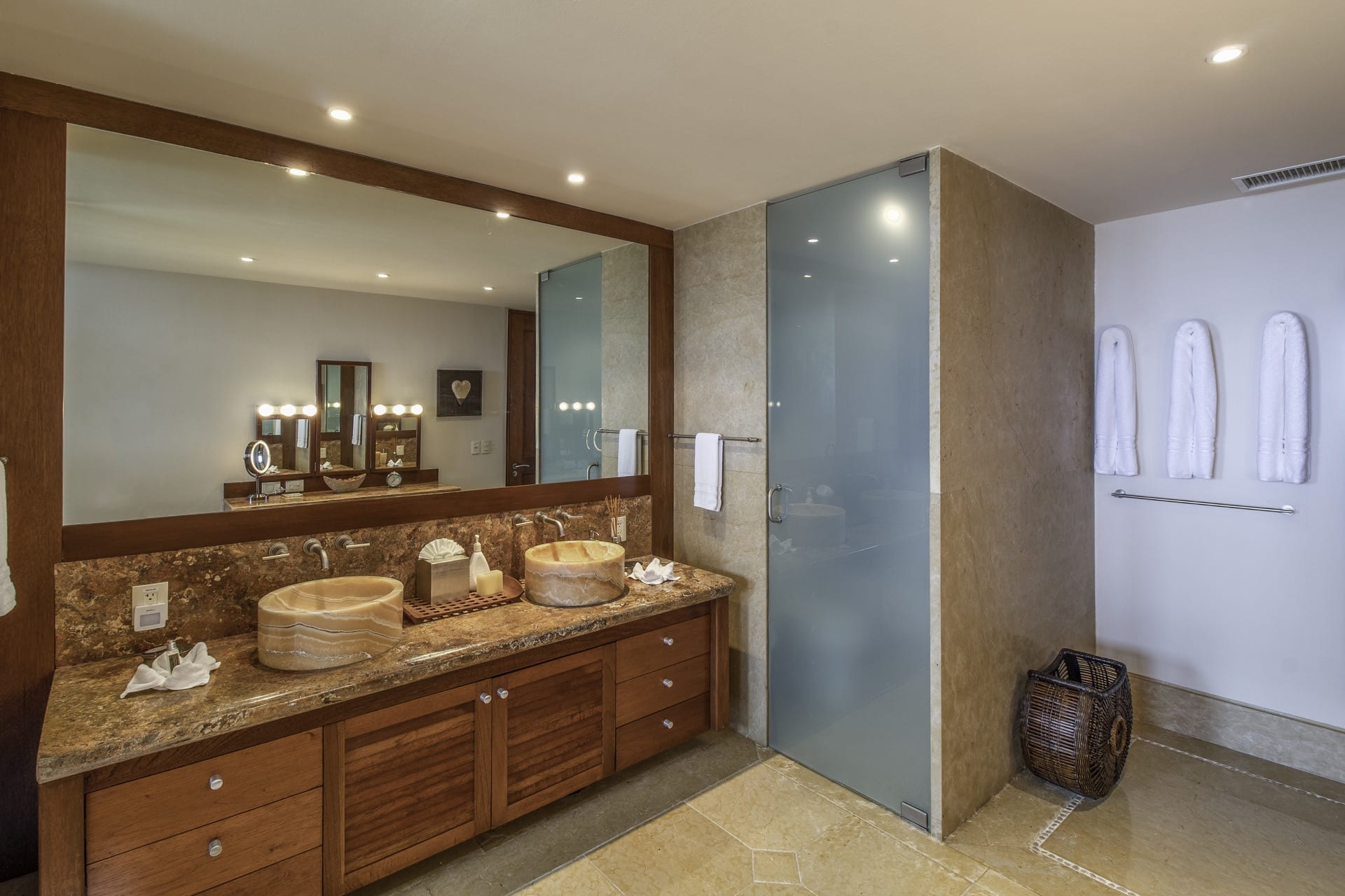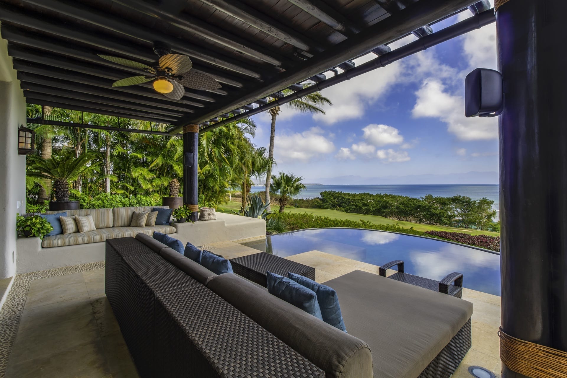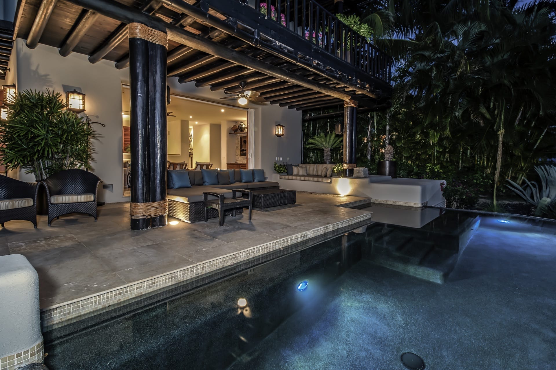 Nestled on the oceanfront, Casa Bahia is a glorious four-bedroom haven. It generously offers captivating views of the Pacific Ocean, the Sierra Madre Mountains, and the iconic Marietas Islands. Spread across its two luxurious levels; the villa seamlessly combines luxury with the serene embrace of nature. Furthermore, the main bedroom, adorned with pristine marble flooring, has indoor and outdoor showers.