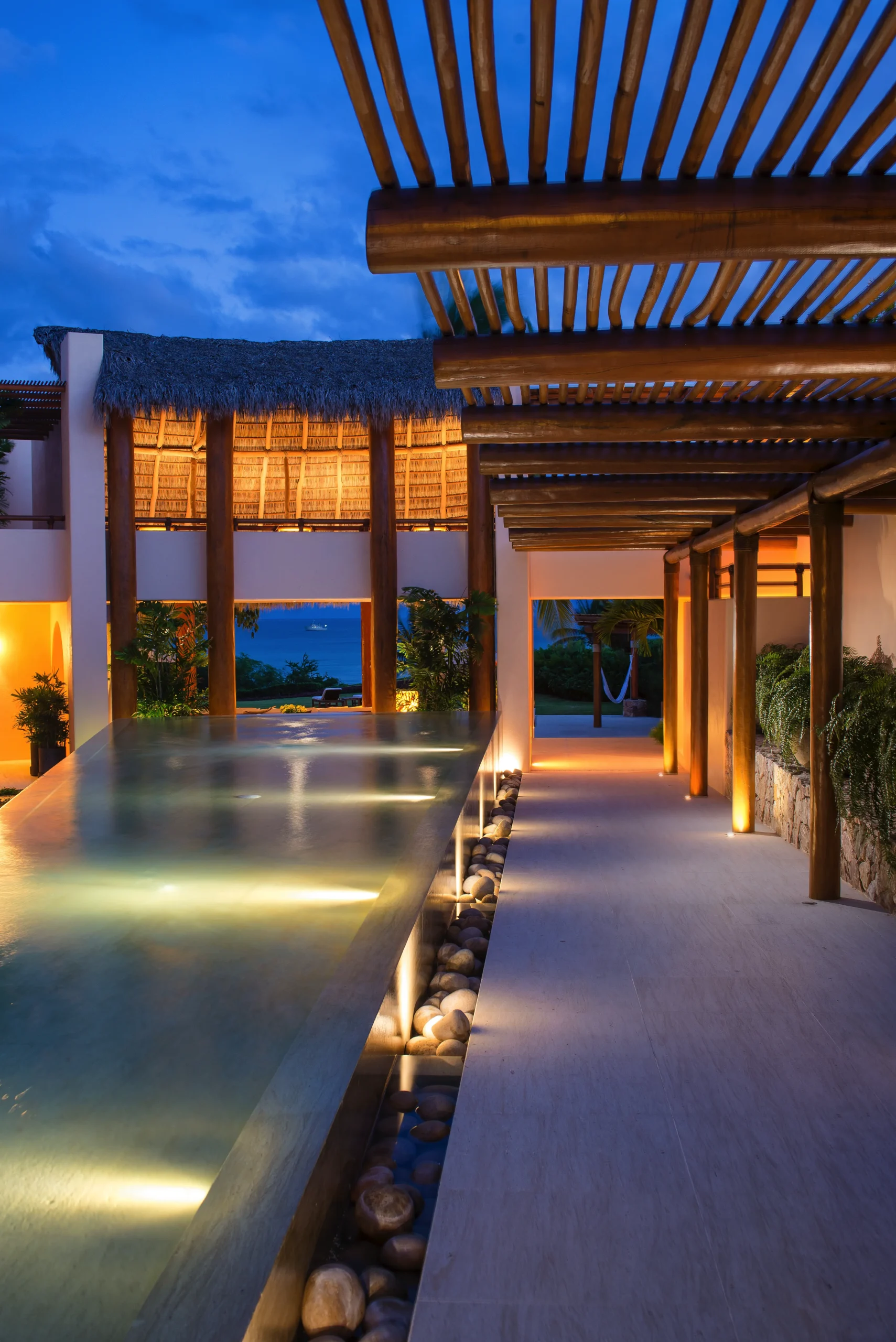Casa Caída de Agua is a five-star exclusive luxury villa rental located in the prestigious Lagos del Mar enclave within the private Punta Mita Residential Community. Overlooking the shimmering Pacific Ocean and the iconic Jack Nicklaus Signature Golf Course, this extraordinary private beachfront villa promises complete privacy, high-end amenities, and a personalized service experience for even the most discerning traveler.