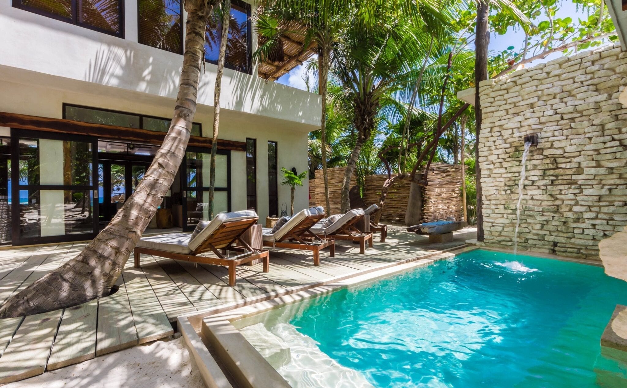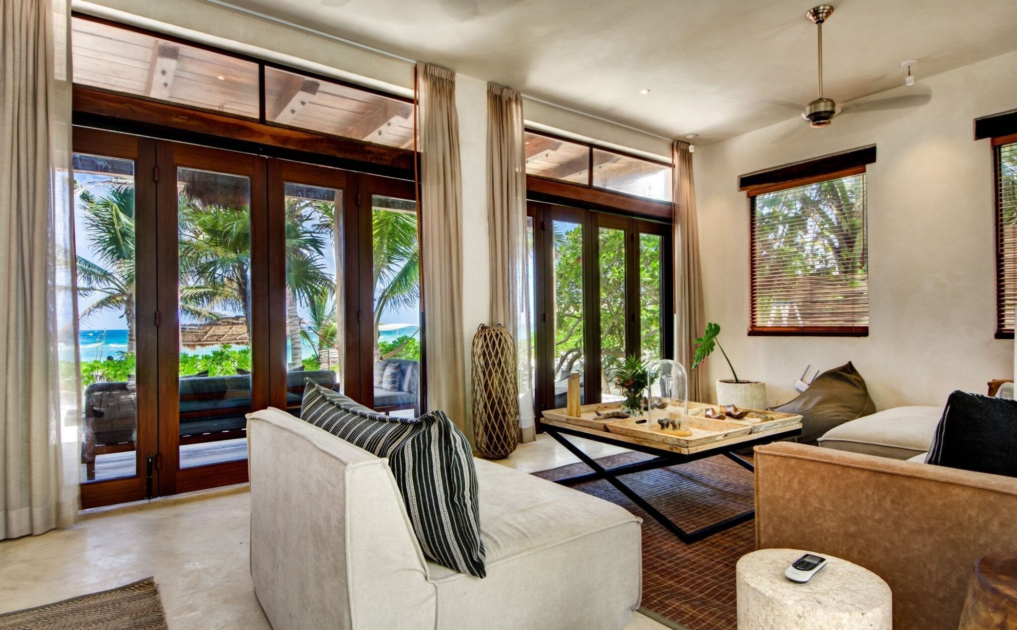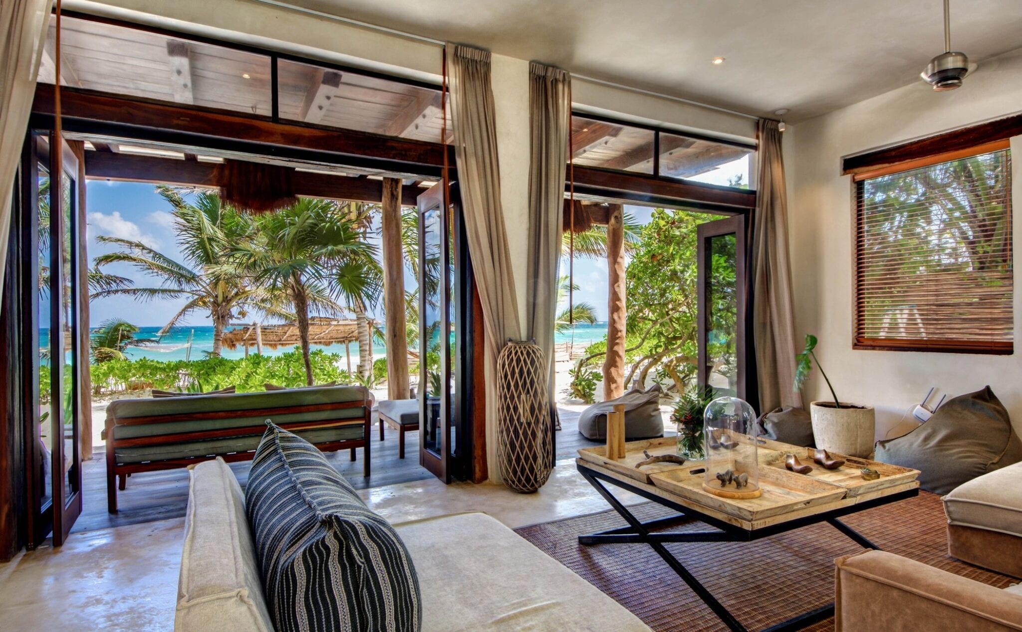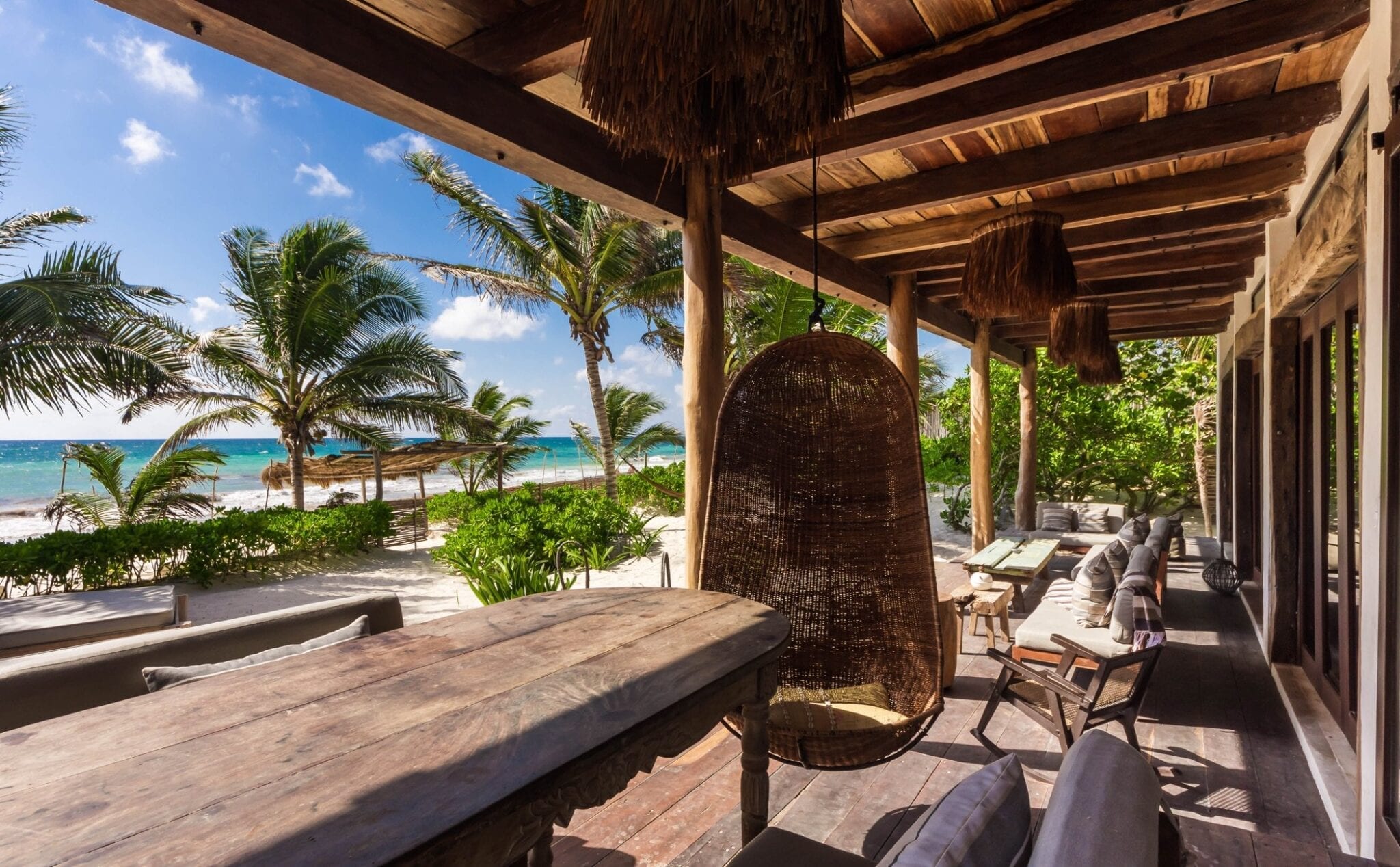 Set within one of the trendiest corners of Tulum’s hotel zone, the villa occupies a privileged position among three neighboring houses. Its surroundings balance the energy of a fashionable destination with the calm of a private retreat. Here, guests are close to the area’s celebrated beach culture while still enjoying a sense of seclusion that encourages slow mornings and quiet evenings.