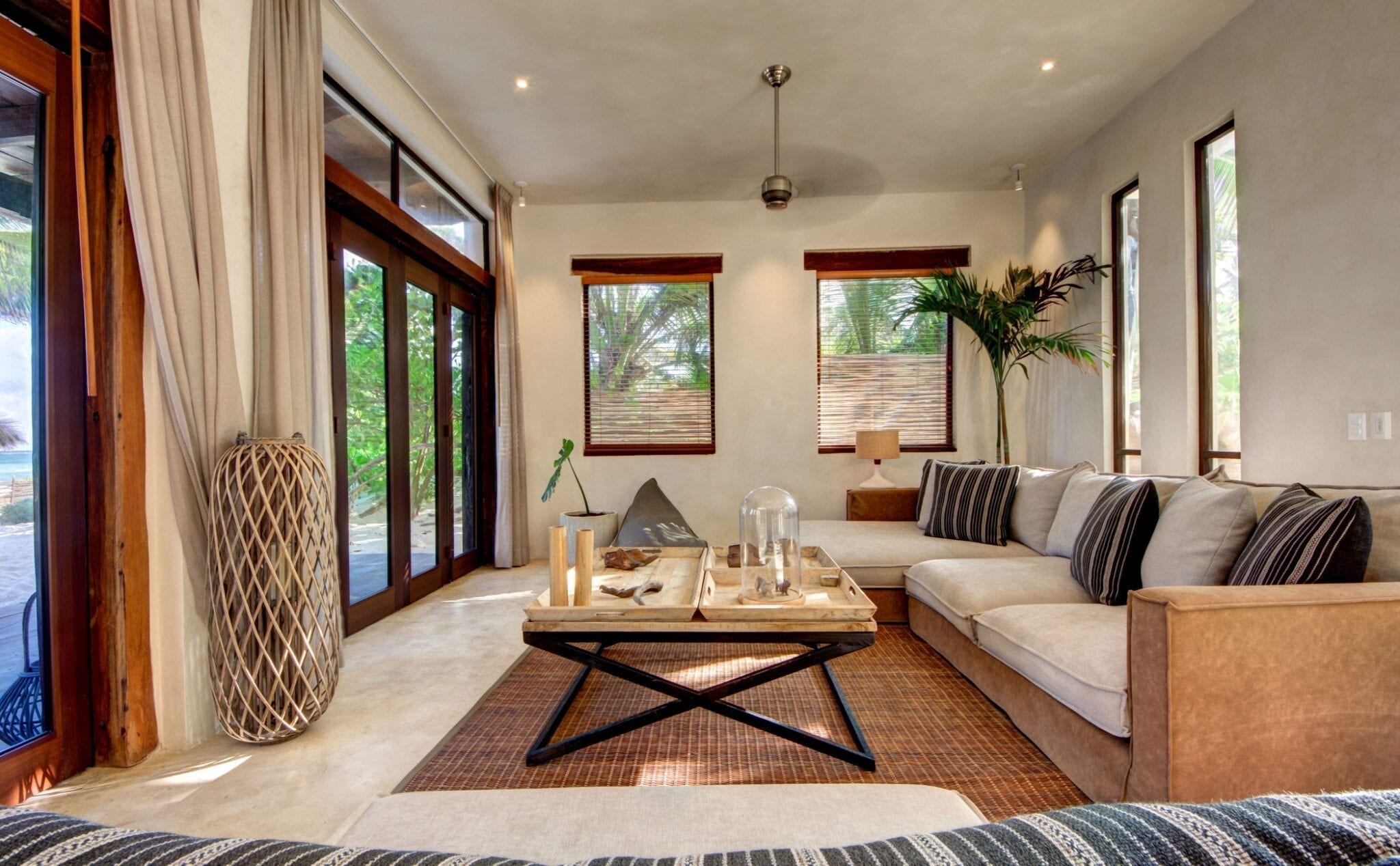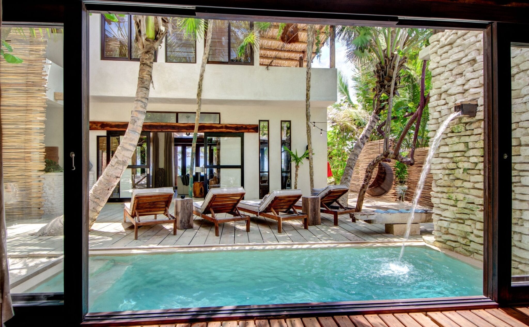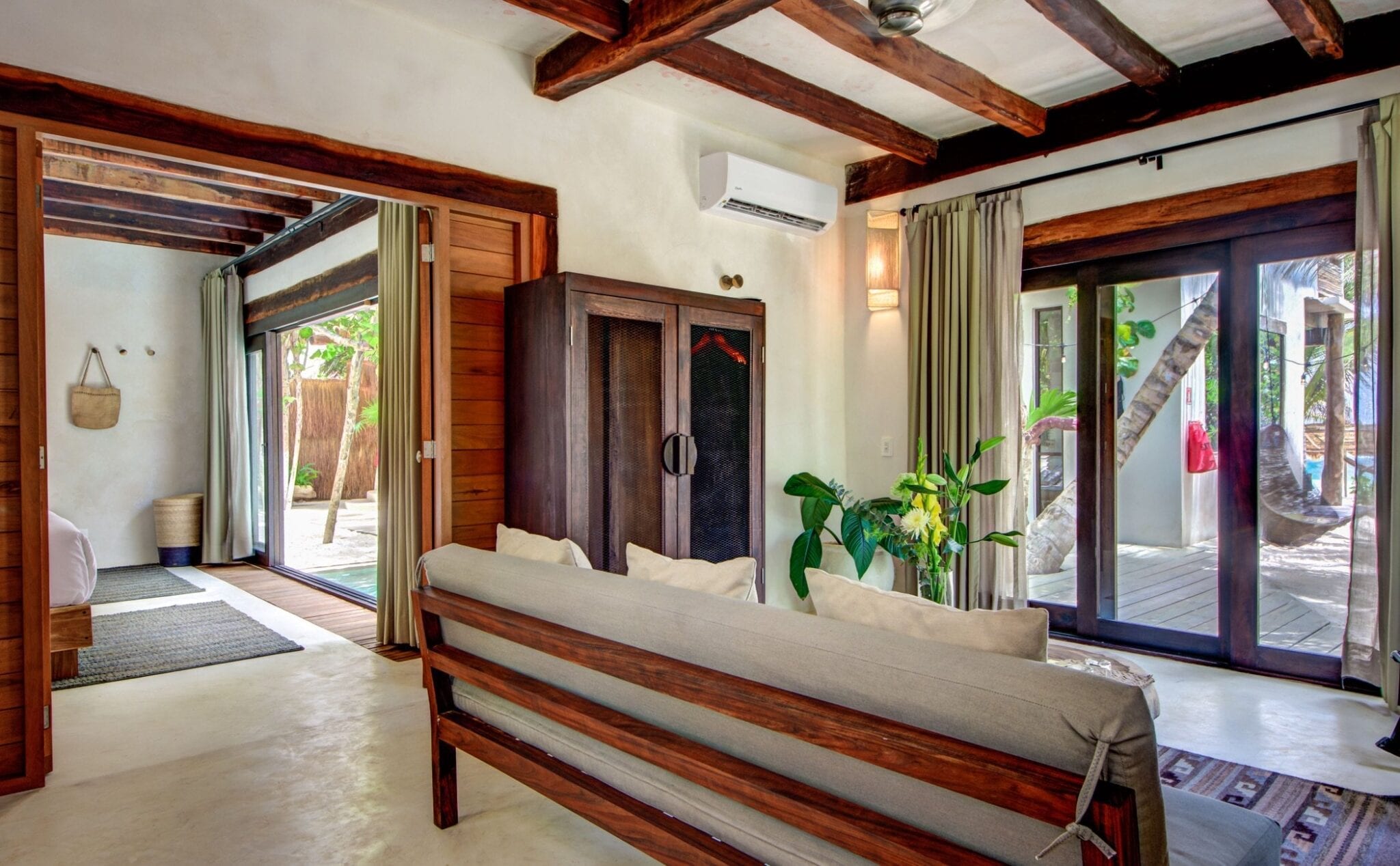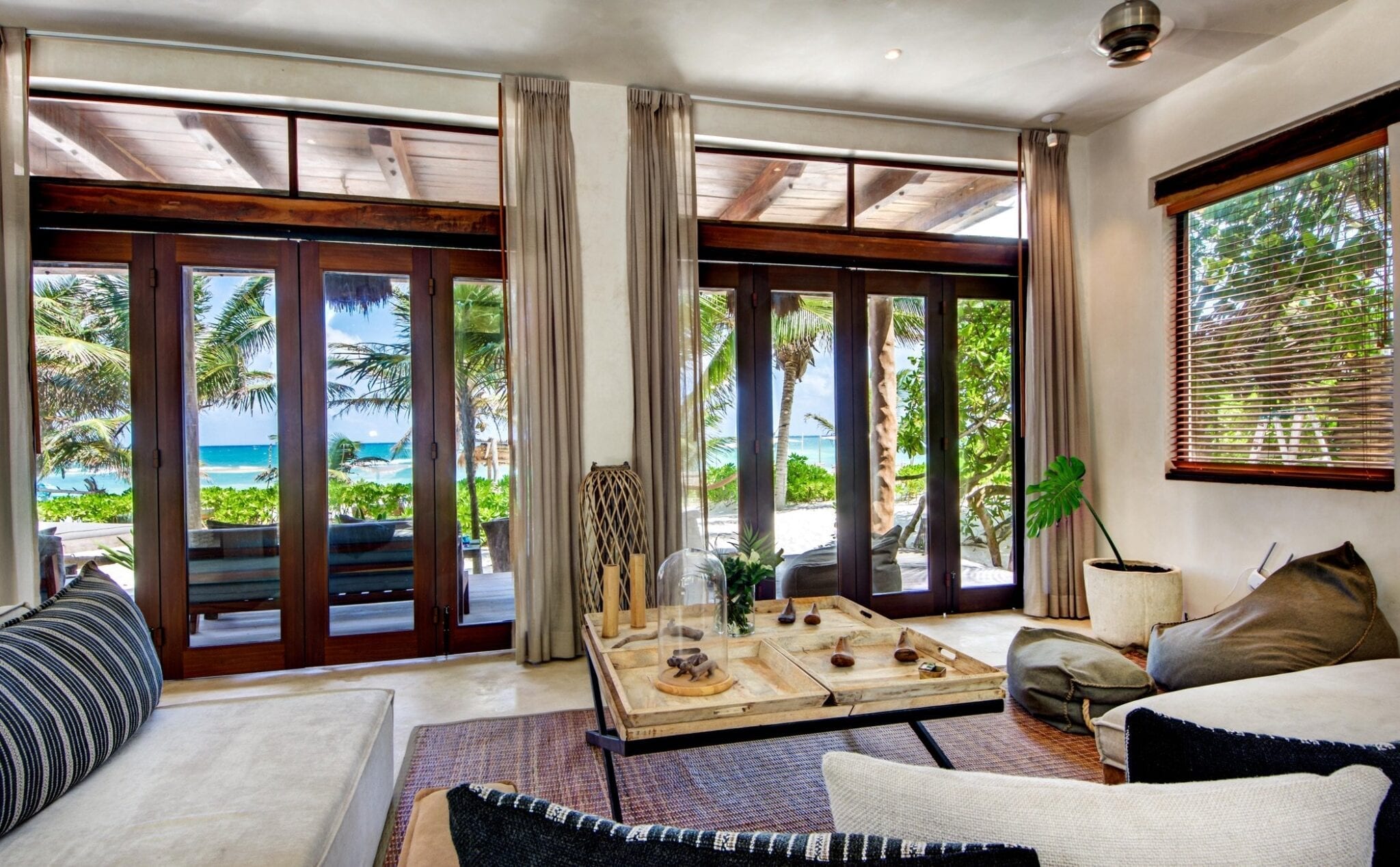 Set within one of the trendiest corners of Tulum’s hotel zone, the villa occupies a privileged position among three neighboring houses. Its surroundings balance the energy of a fashionable destination with the calm of a private retreat. Here, guests are close to the area’s celebrated beach culture while still enjoying a sense of seclusion that encourages slow mornings and quiet evenings.