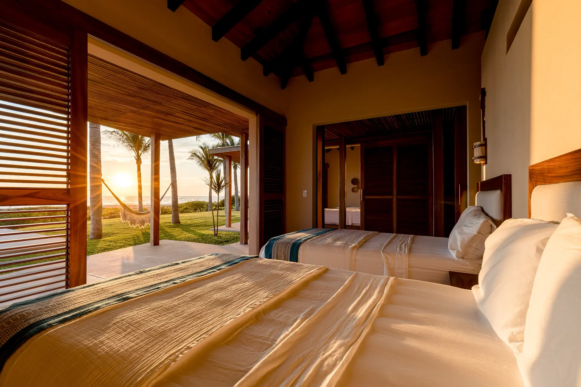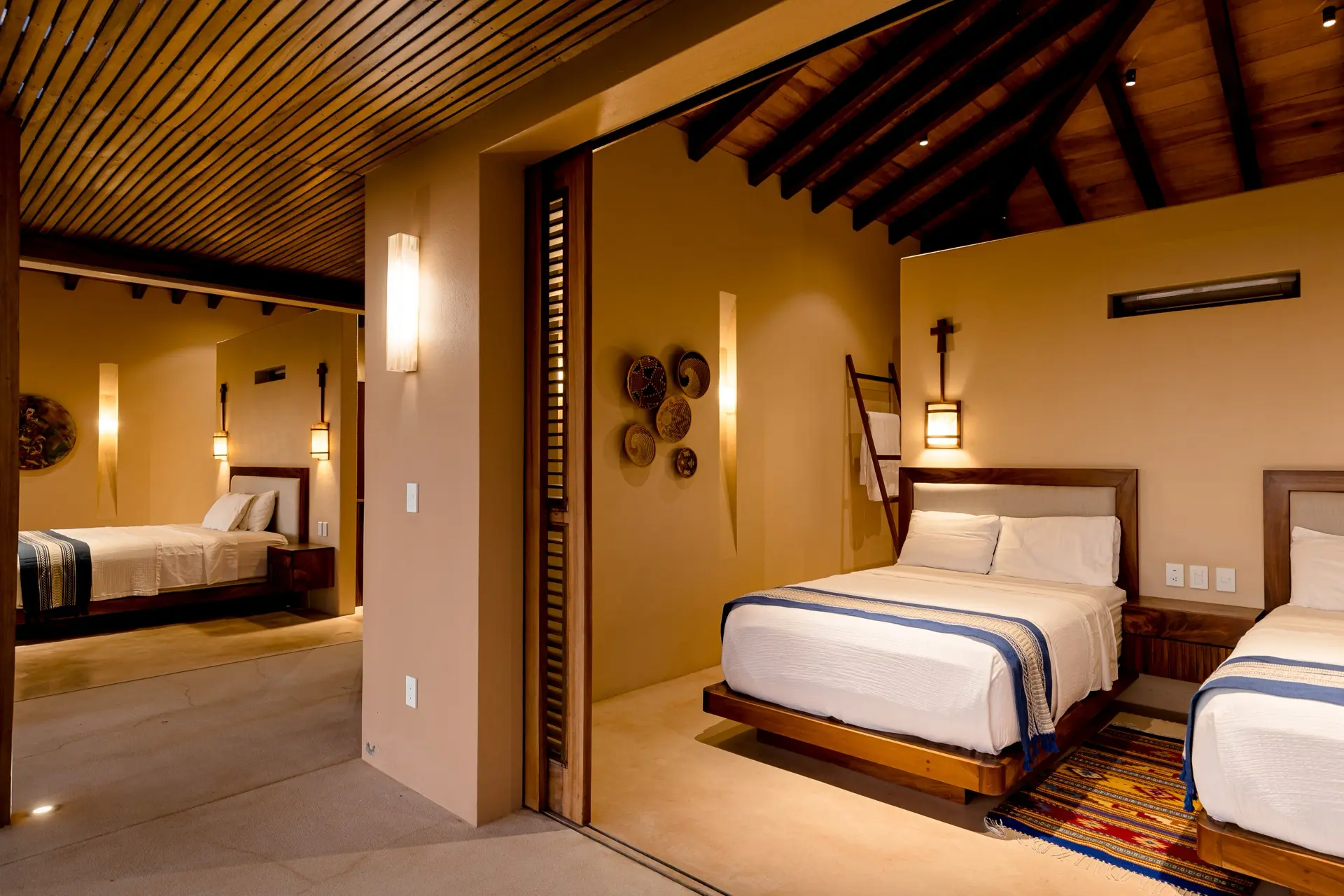 • Two double beds with handwoven bedding