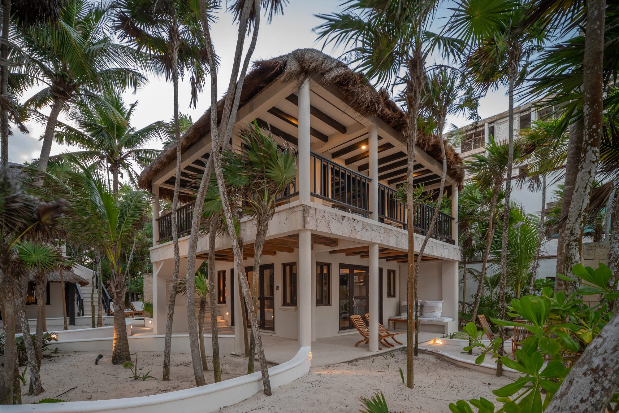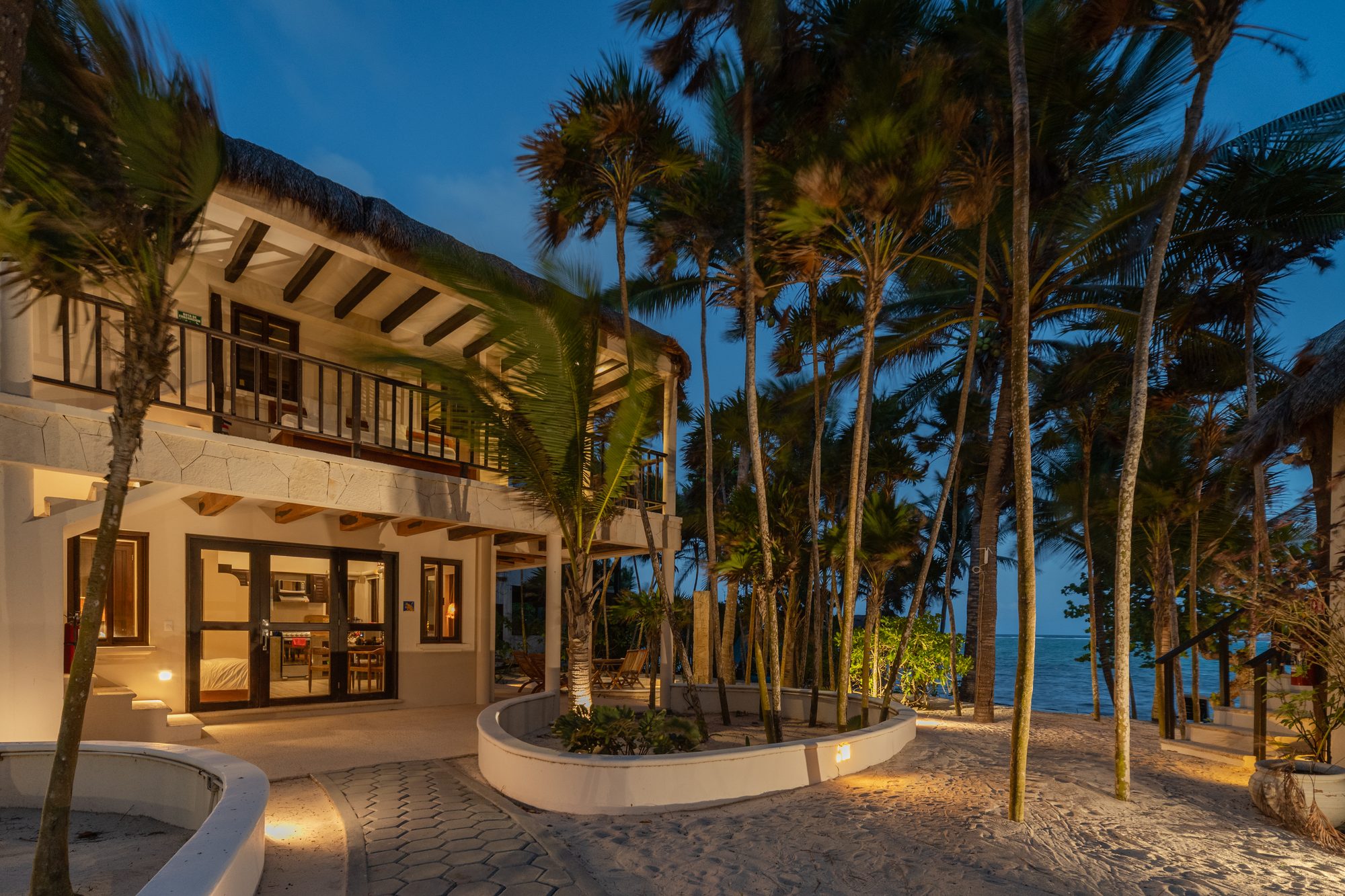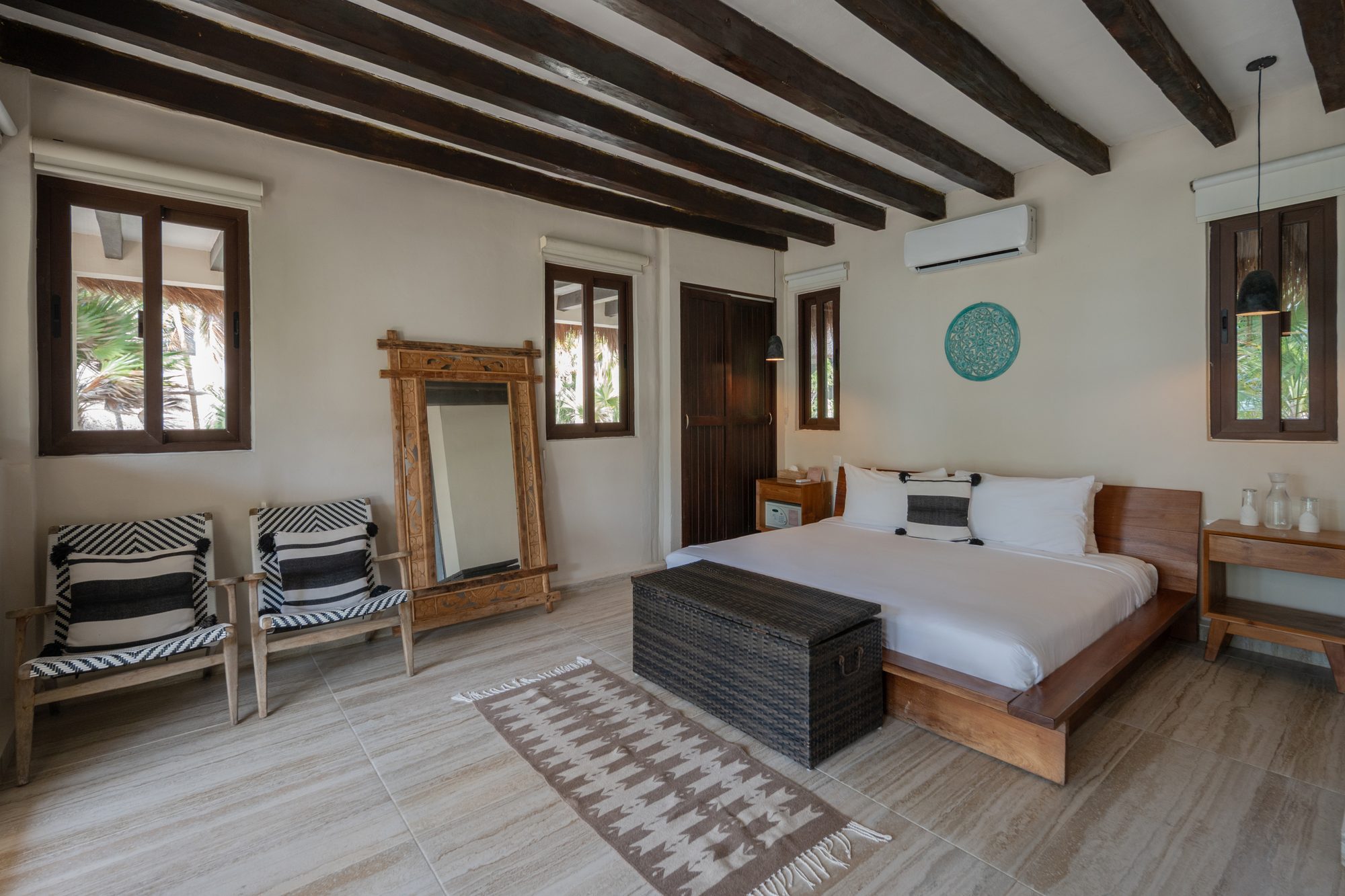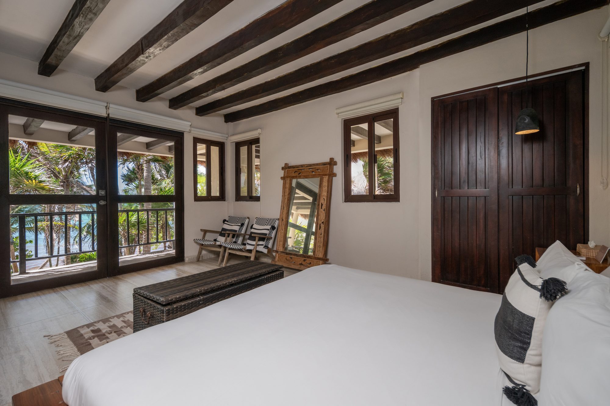 Casa Corazón Dos is a two-bedroom beachfront casita on Soliman Bay, Tulum, accommodating up to 4 guests with a queen bedroom on the ground floor and a king suite upstairs with a private terrace overlooking the bay. Designed for couples and small groups, it combines barefoot living with understated luxury at one of the Riviera Maya’s most intimate beaches.