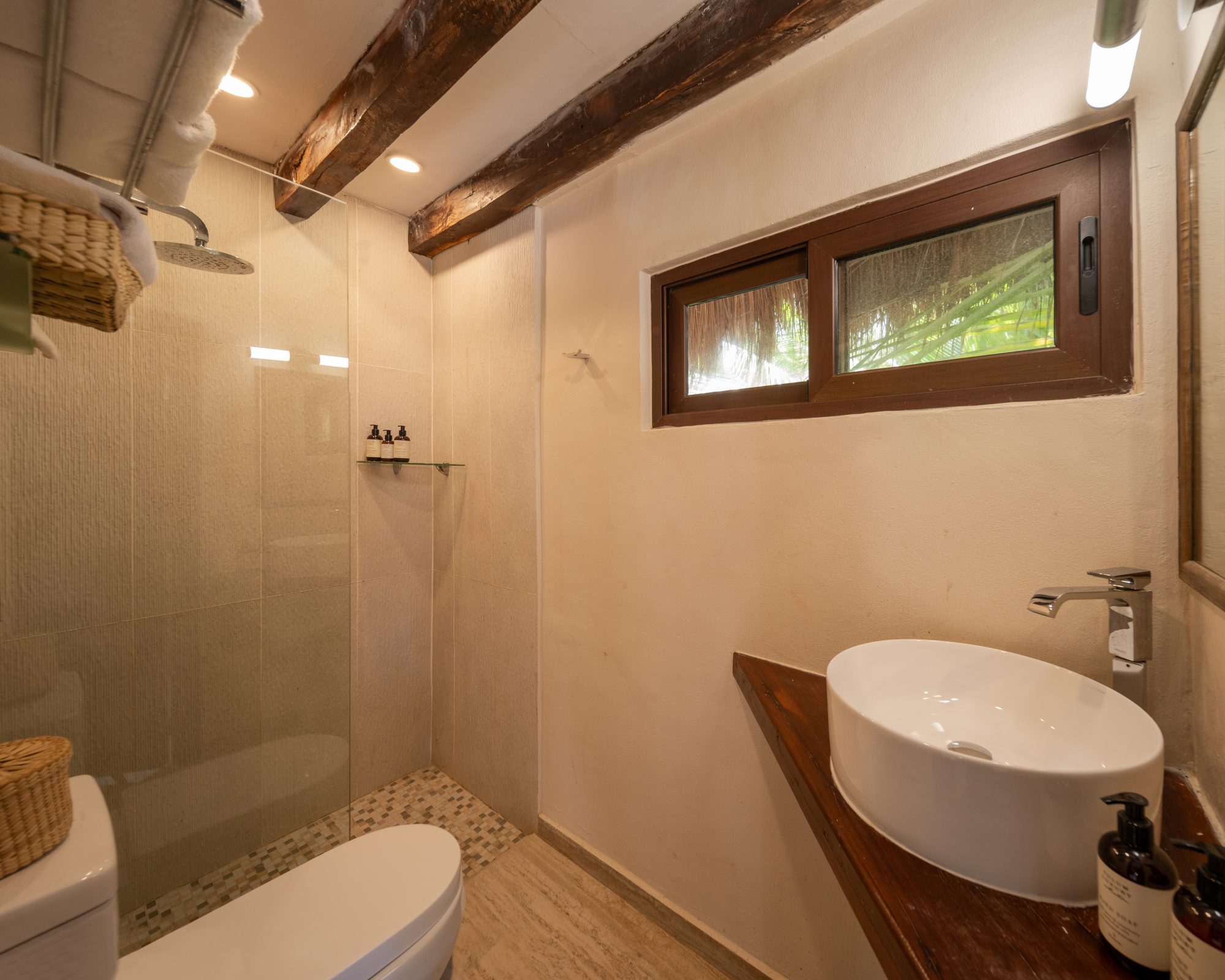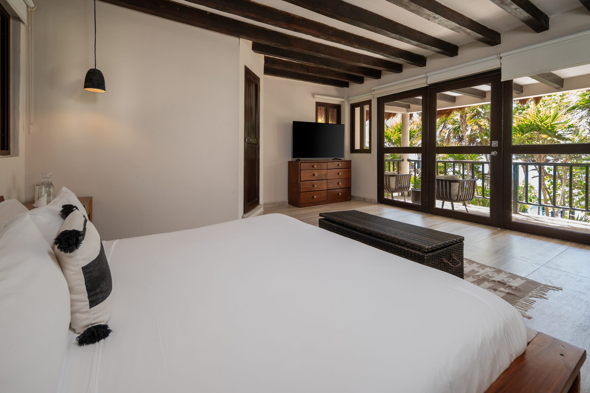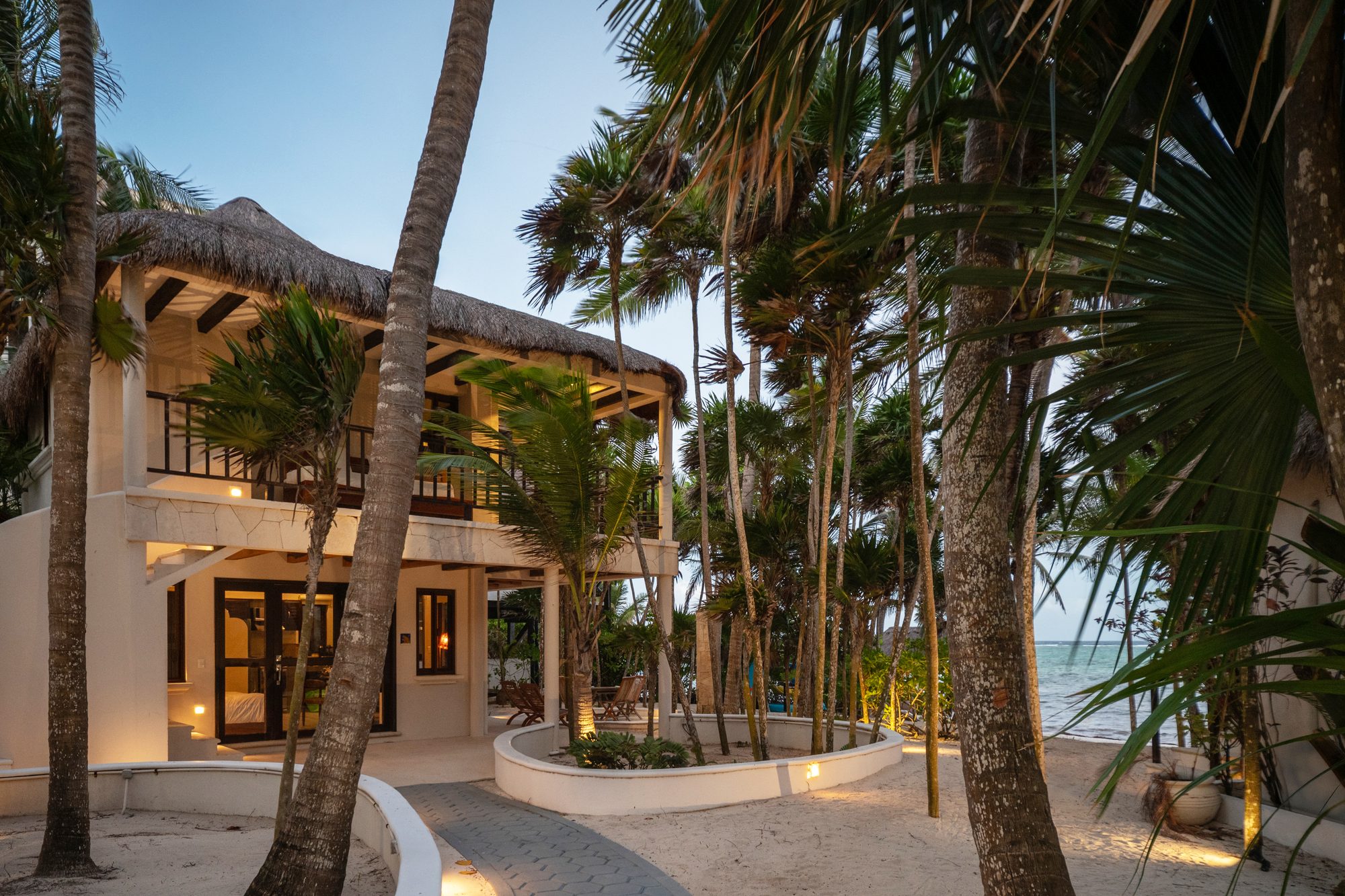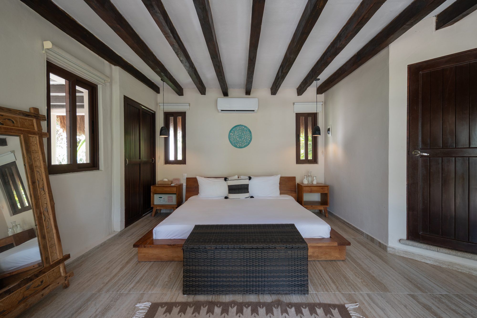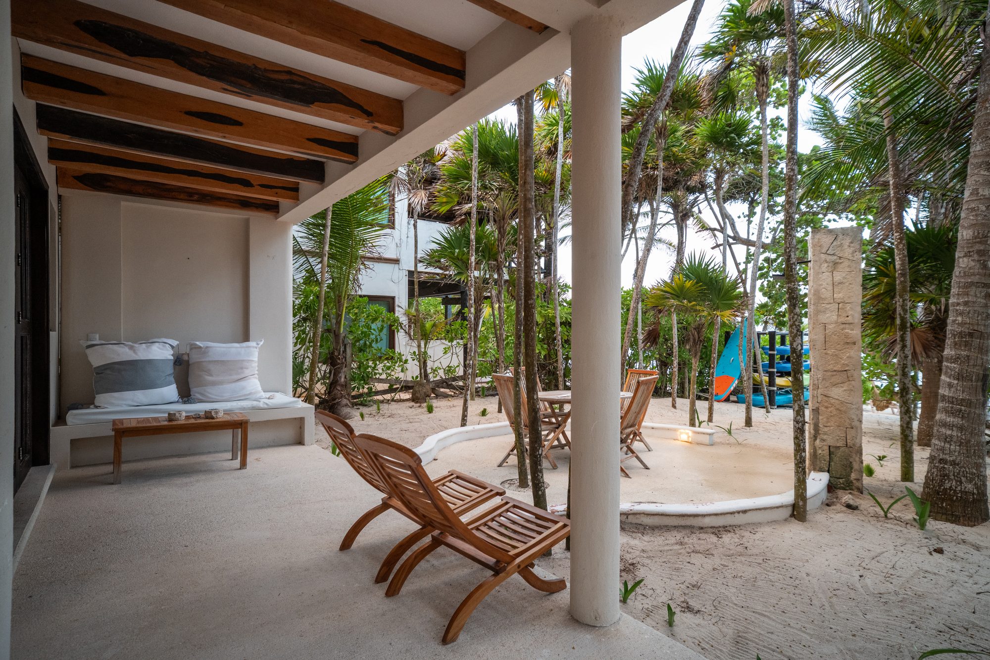 Casa Corazón Dos is a two-bedroom beachfront casita on Soliman Bay, Tulum, accommodating up to 4 guests with a queen bedroom on the ground floor and a king suite upstairs with a private terrace overlooking the bay. Designed for couples and small groups, it combines barefoot living with understated luxury at one of the Riviera Maya’s most intimate beaches.