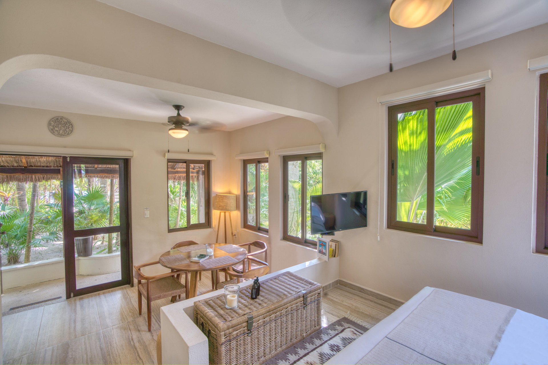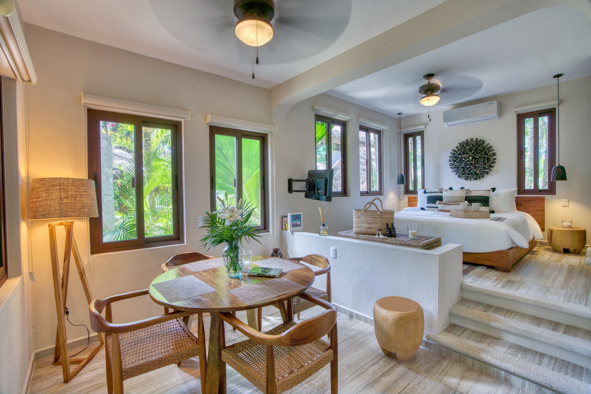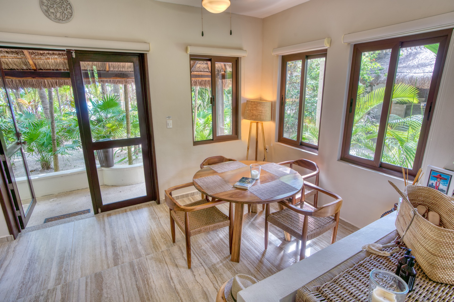 Discover Casa Corazon Tres, a secluded beachfront bungalow in the serene Soliman Bay, Riviera Maya. Perfect for those seeking peace and intimacy, this eco-friendly, two-level villa accommodates up to four guests and provides a private retreat from the world. With a shared sun-dappled pool and just steps from the beach, Casa Corazon Tres offers the ultimate escape into nature’s beauty and tranquility.