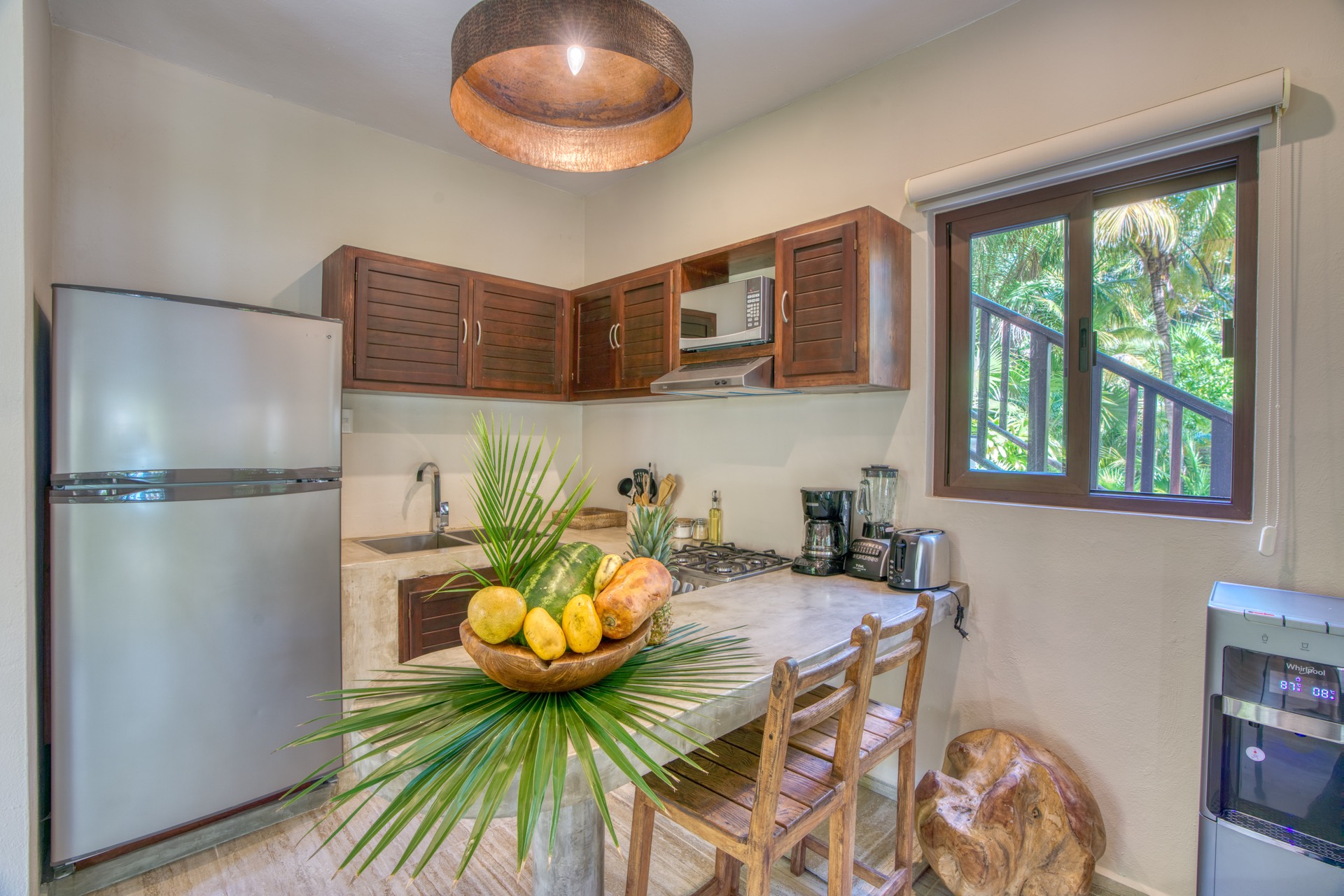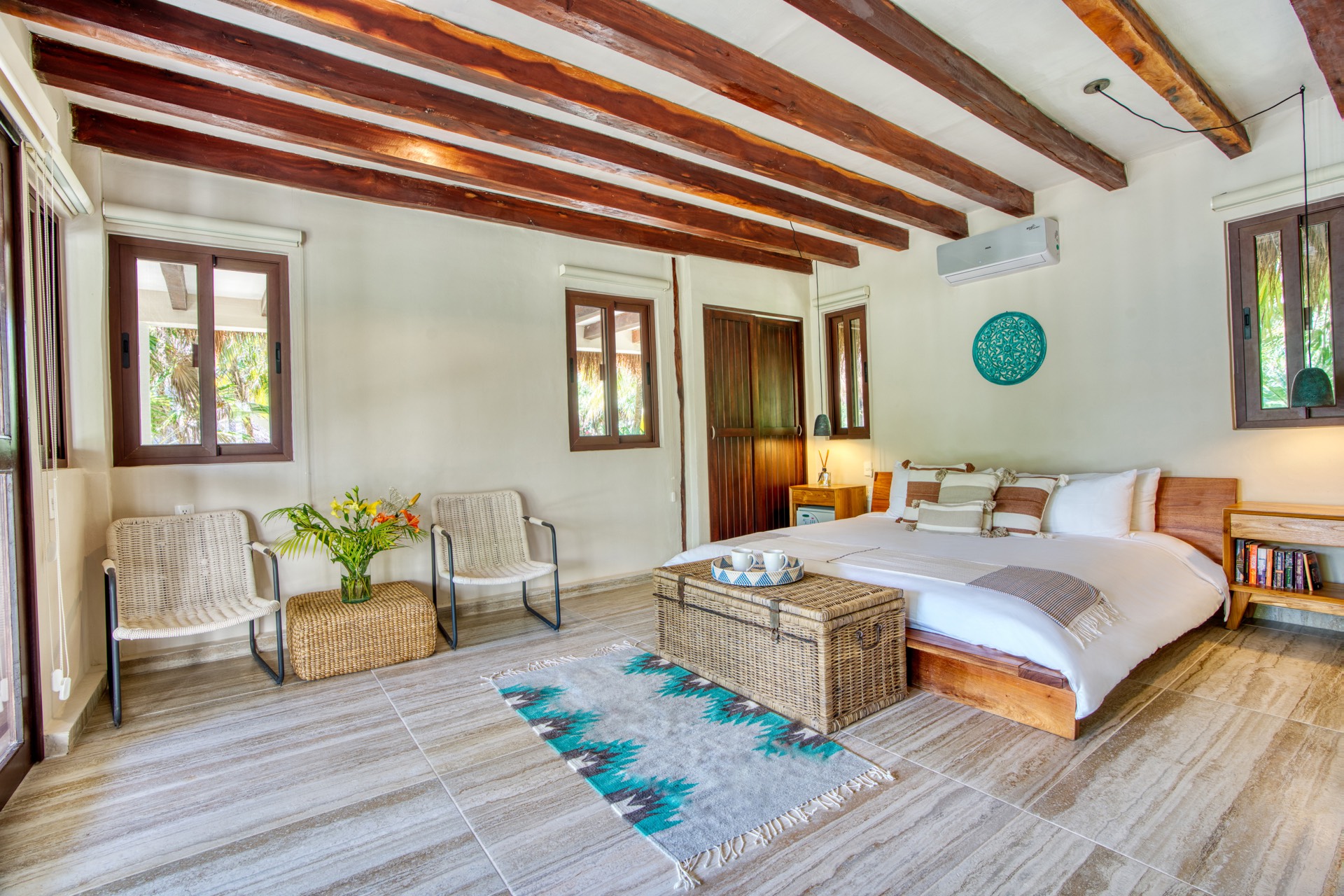 Casa Corazon Tres is part of a collection of three beachfront bungalows, yet it stands out with its seclusion and privacy. This villa balances luxury and nature with modern amenities and eco-friendly design, which is ideal for small groups or families. It is the perfect coastal paradise with two spacious bedrooms, a well-equipped kitchen, and an outdoor terrace.