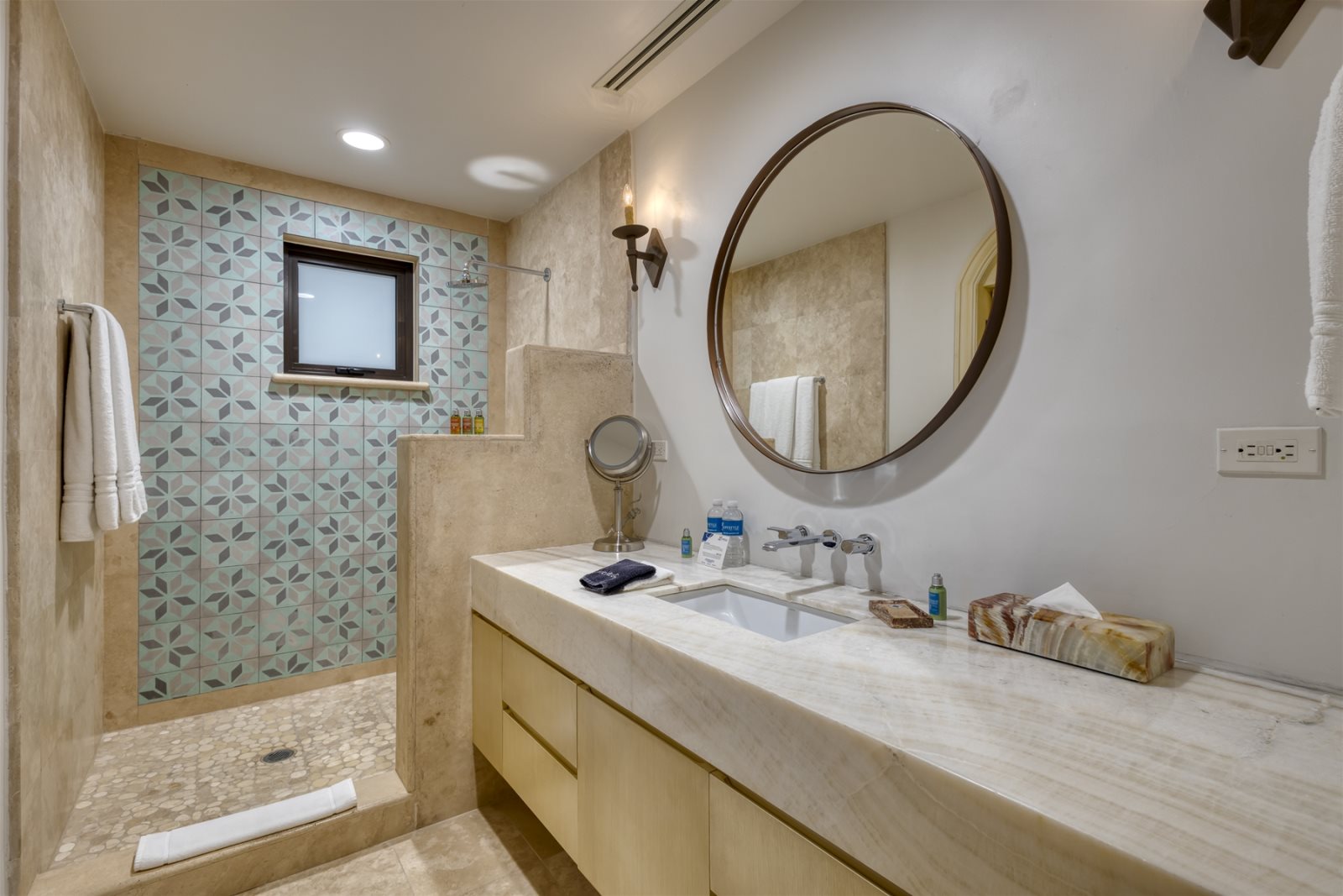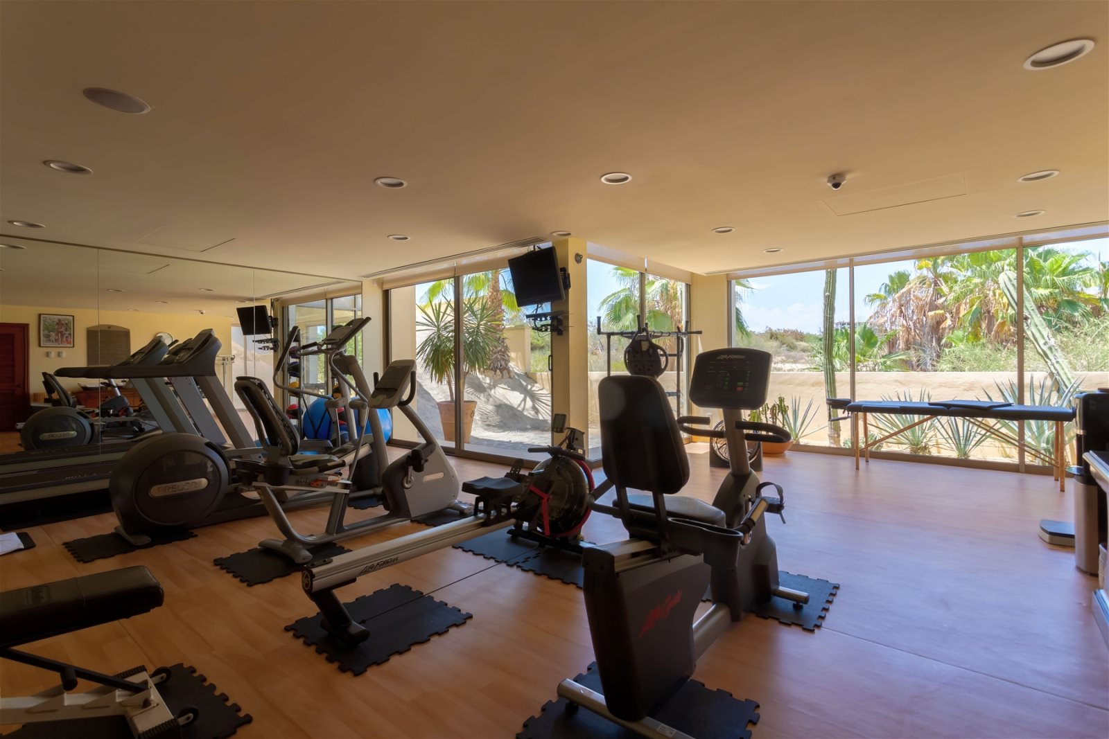 The villa is near the beach and golf courses, just a 10-minute drive to downtown Cabo. Guests have access to a clubhouse with a gym and steam room, which provides additional leisure and fitness options.