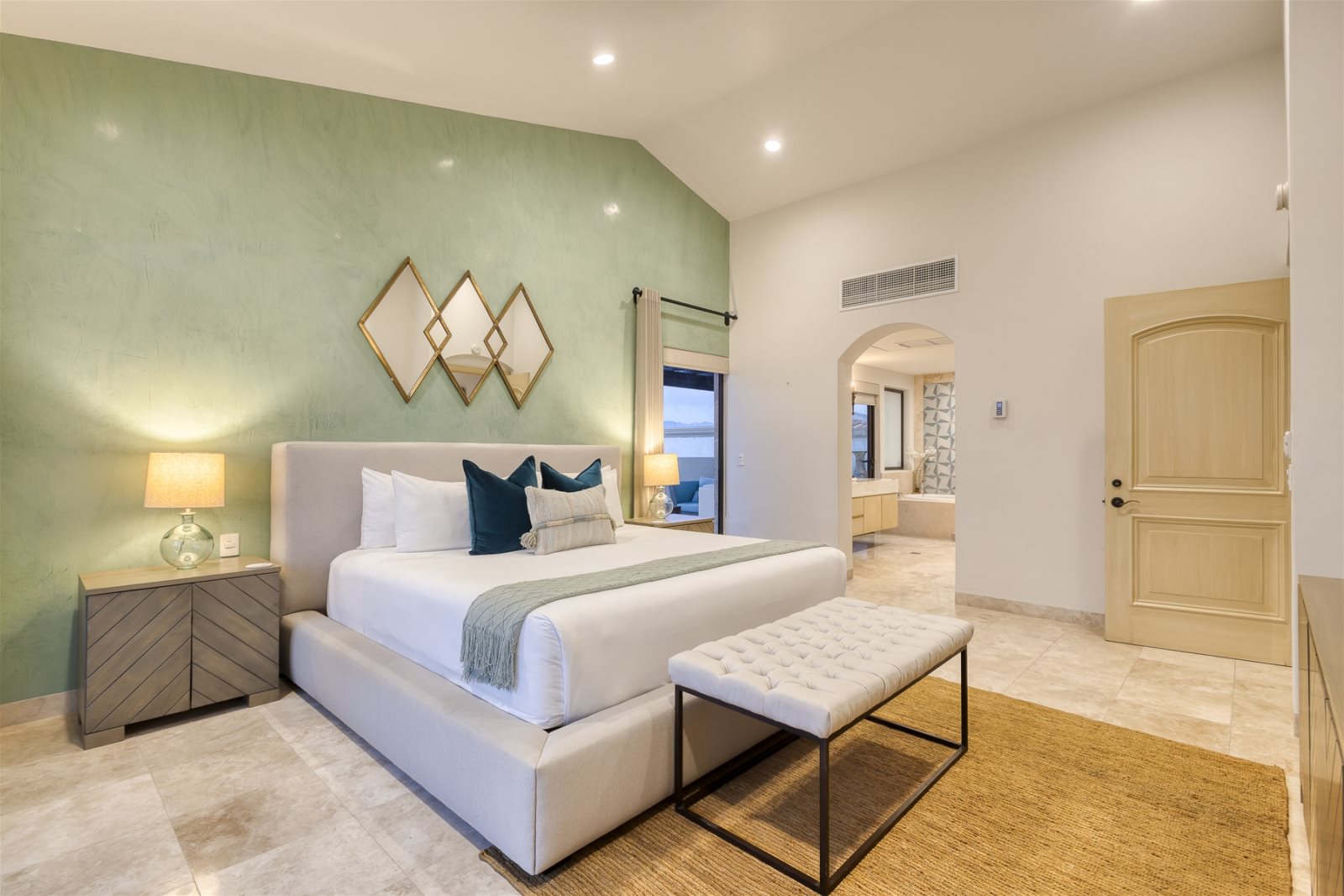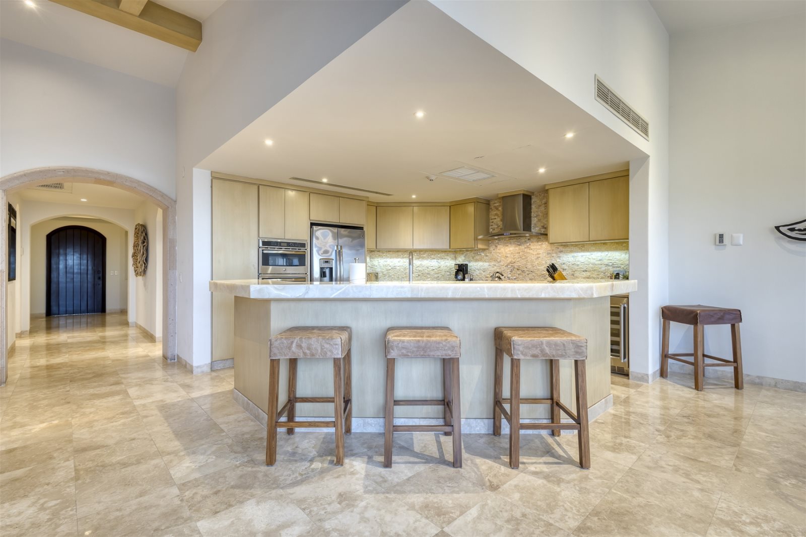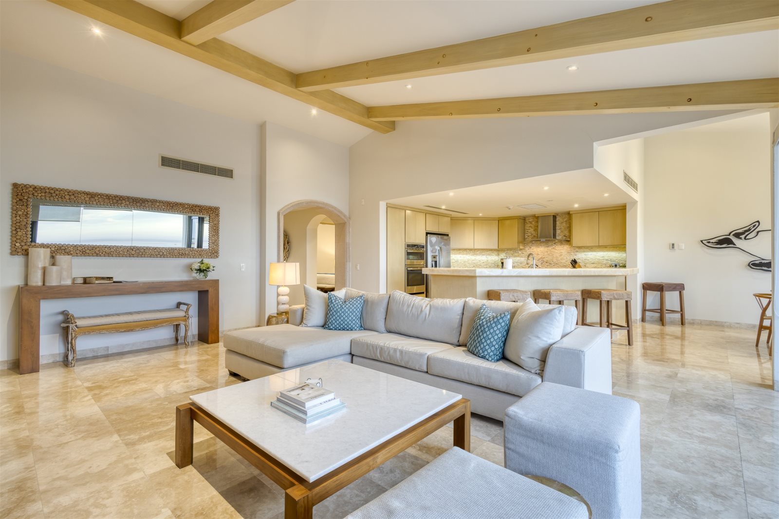 The large open design with high ceilings and wood rafters allows the Sea of Cortez breeze to flow freely throughout the home, providing peace and tranquility. Puerta del Sol is a double-gated community within the world-famous Cabo del Sol community. Each building has a private pool and underground parking, ensuring privacy and security. Enjoy around-the-clock security, onsite private beach access, and fitness center facilities.