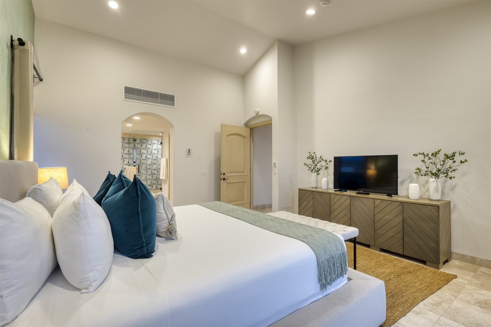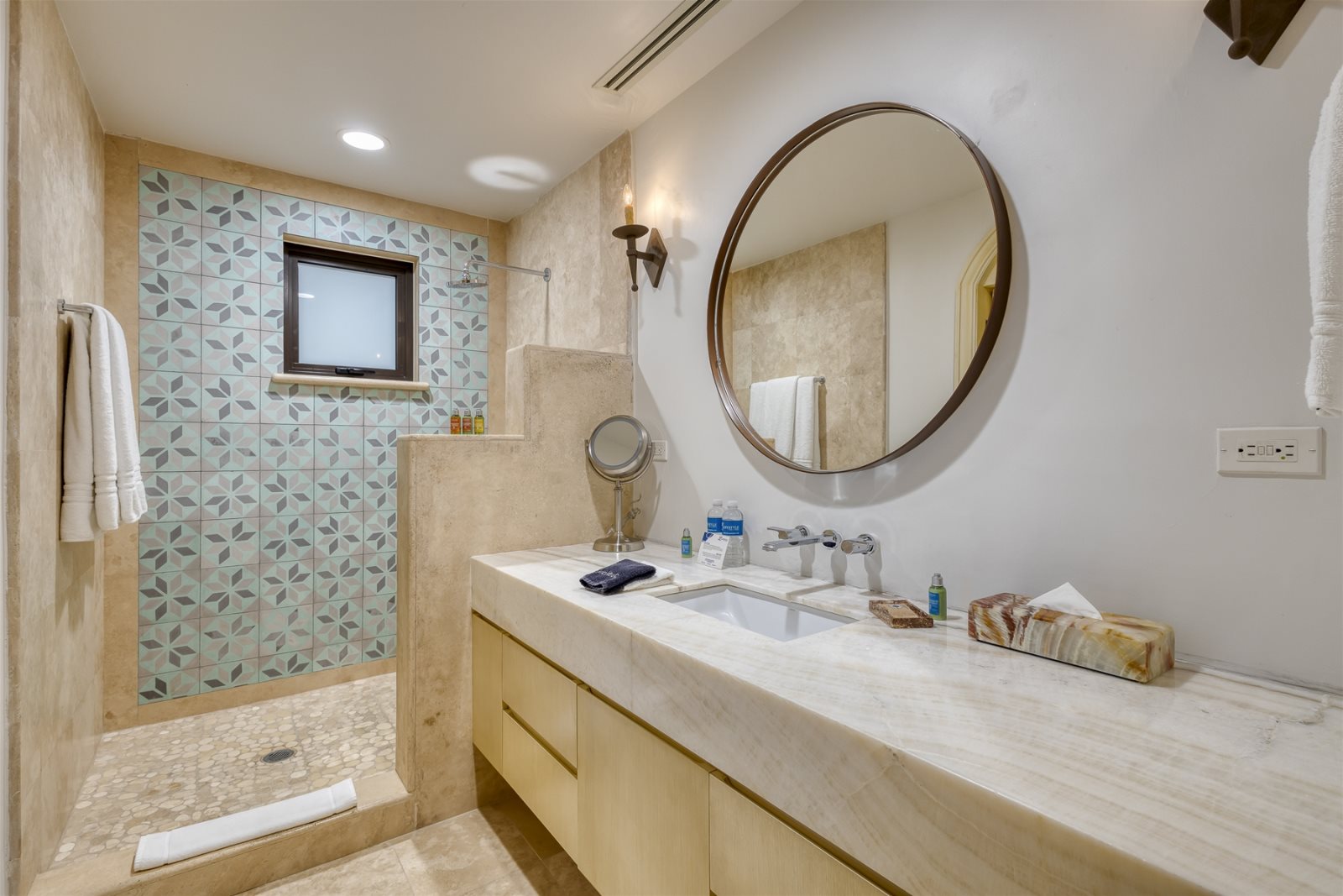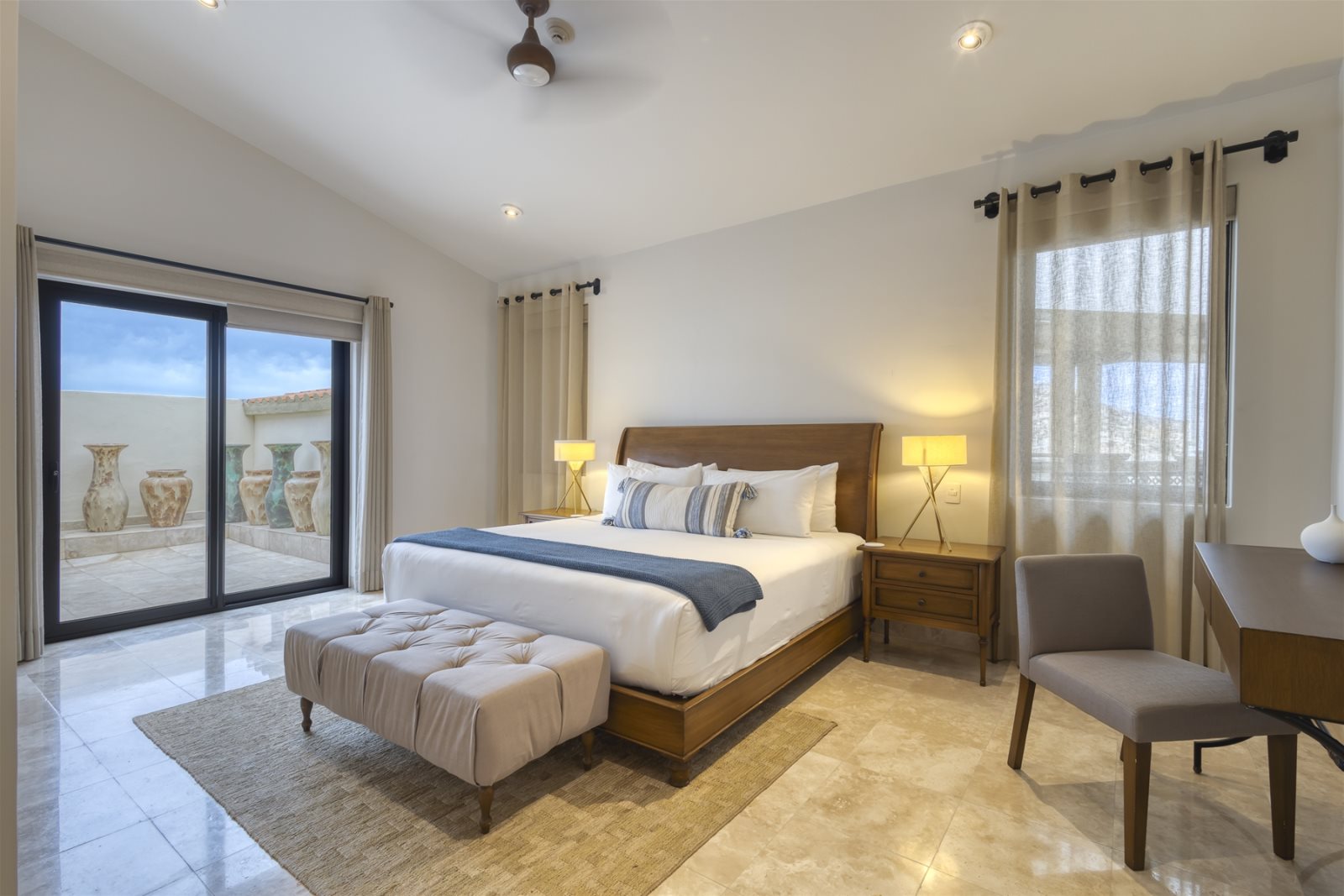 The large open design with high ceilings and wood rafters allows the Sea of Cortez breeze to flow freely throughout the home, providing peace and tranquility. Puerta del Sol is a double-gated community within the world-famous Cabo del Sol community. Each building has a private pool and underground parking, ensuring privacy and security. Enjoy around-the-clock security, onsite private beach access, and fitness center facilities.