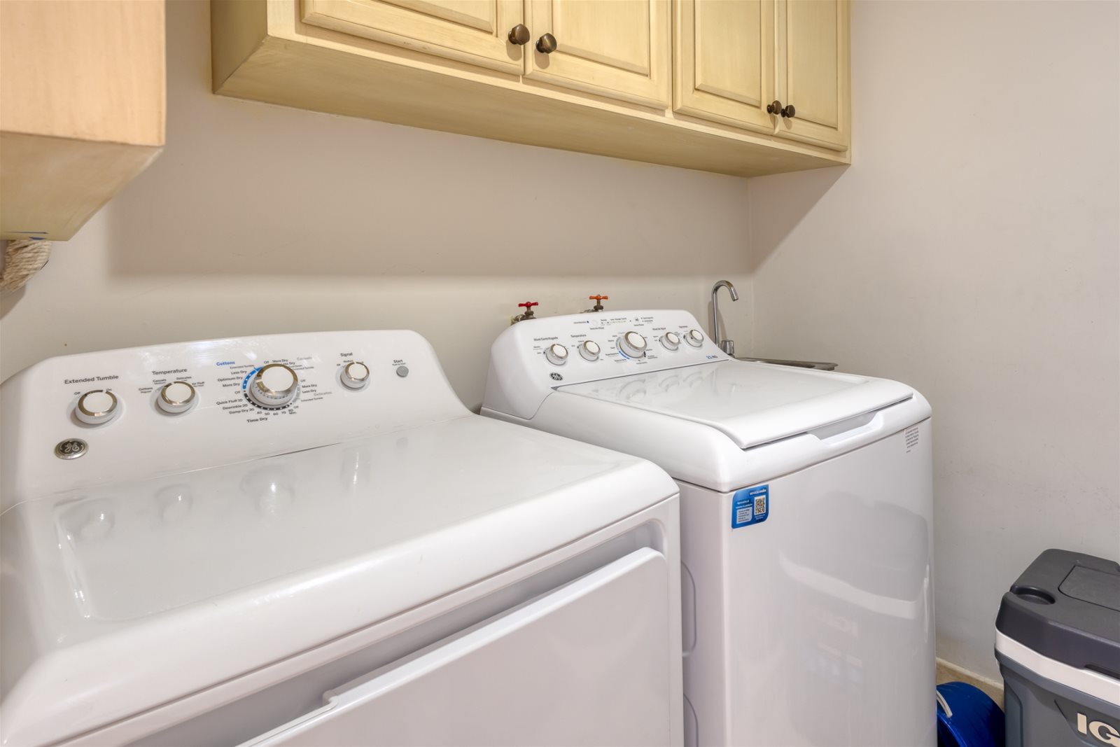 The villa includes air conditioning, ceiling fans, central air, high-speed internet (Wi-Fi), laundry products, a Jacuzzi tub, linens, robes, a washer and dryer, granite and marble countertops, and wooden hangers. These amenities ensure your comfort and convenience throughout your stay.