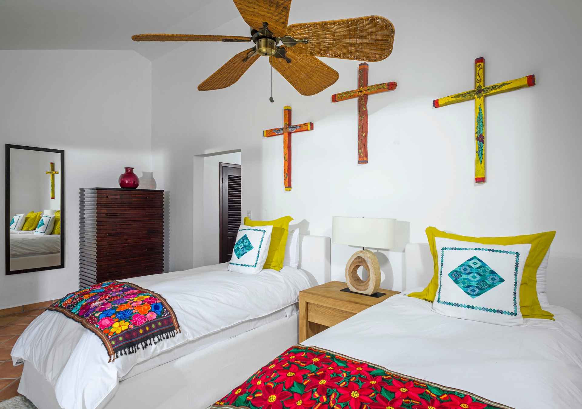 Bedroom 6 offers two twin single beds and an en-suite bathroom with a toilet and shower. This room provides a tranquil tropical view and is equipped with a safety box for the guests’ valuables.