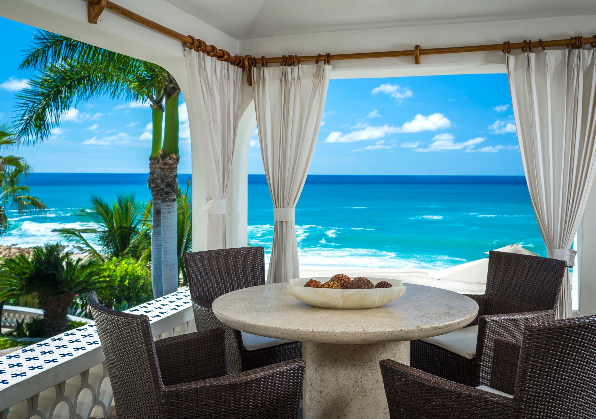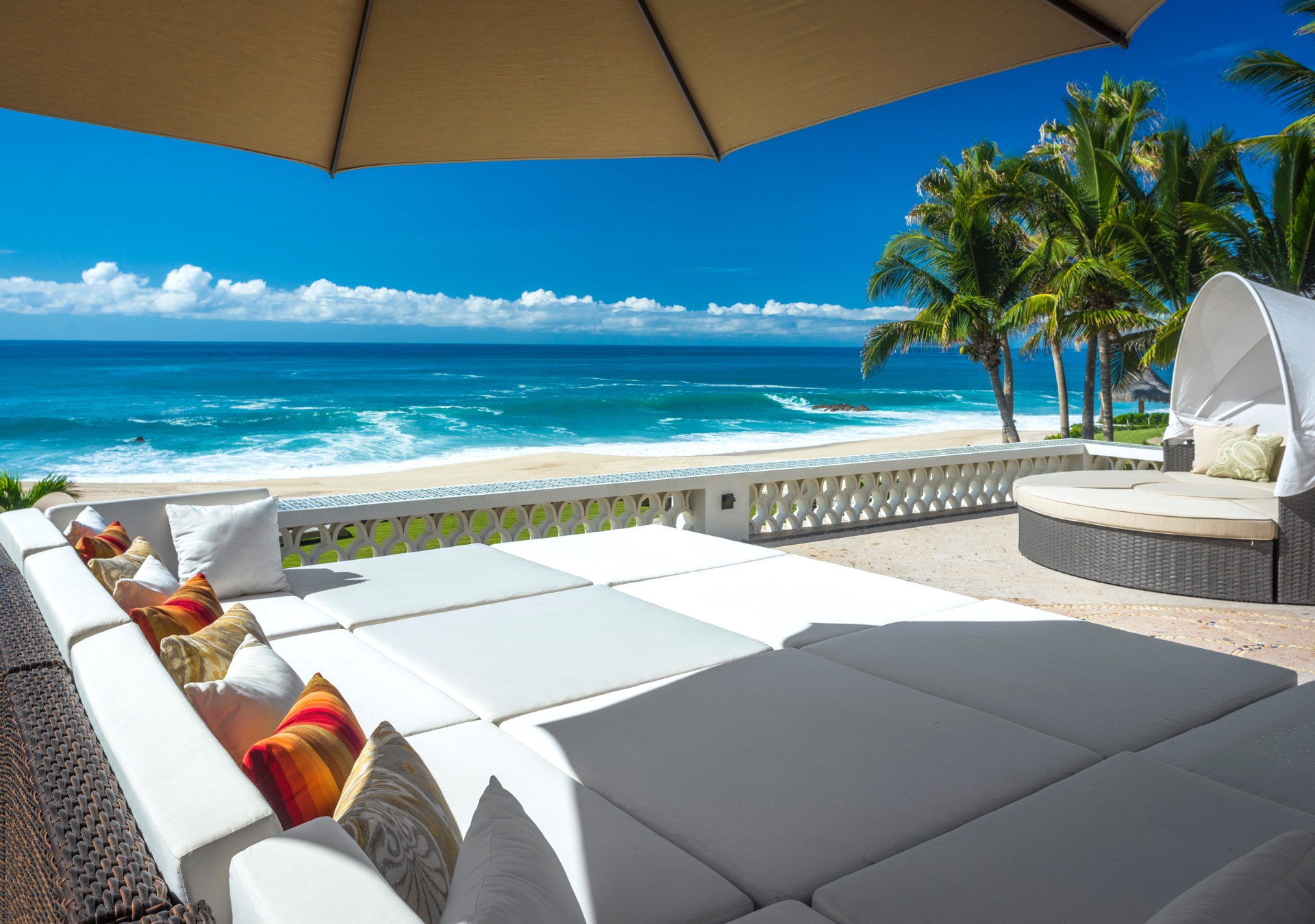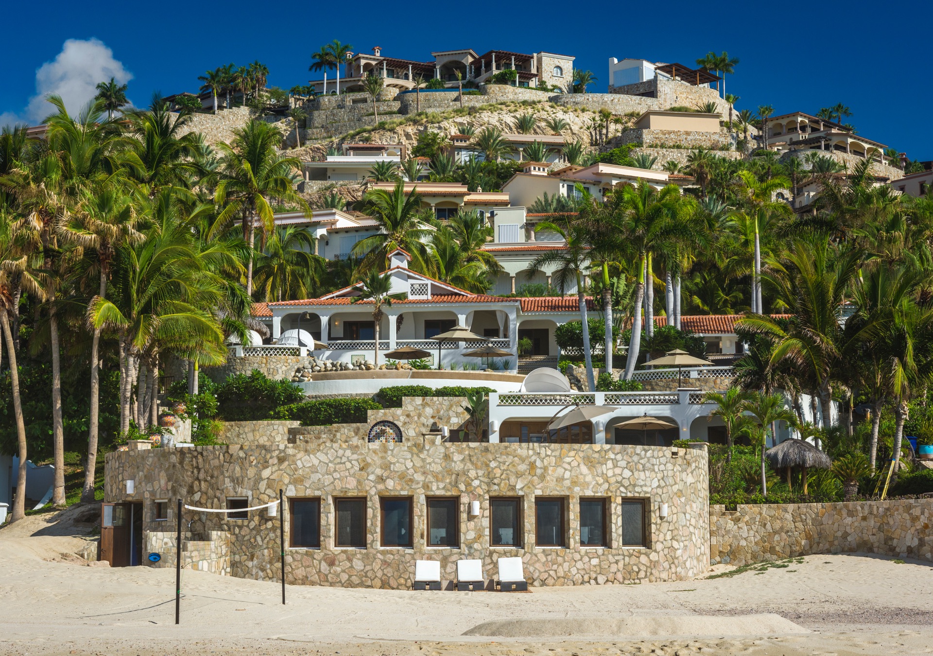 Historic Casa Edwards is one of the largest private estates in Los Cabos. It stands proudly within the ultra-exclusive gated community of Bahia Rocas, adjacent to Villas Del Mar at Palmilla. Positioned at the tip of the Baja Peninsula, this estate is just two homes away from the renowned One & Only Palmilla Hotel and a four-minute drive from the signature Jack Nicklaus Golf Course. The villa offers luxurious accommodations for up to 16 guests within its expansive 10,400 square feet of living space.