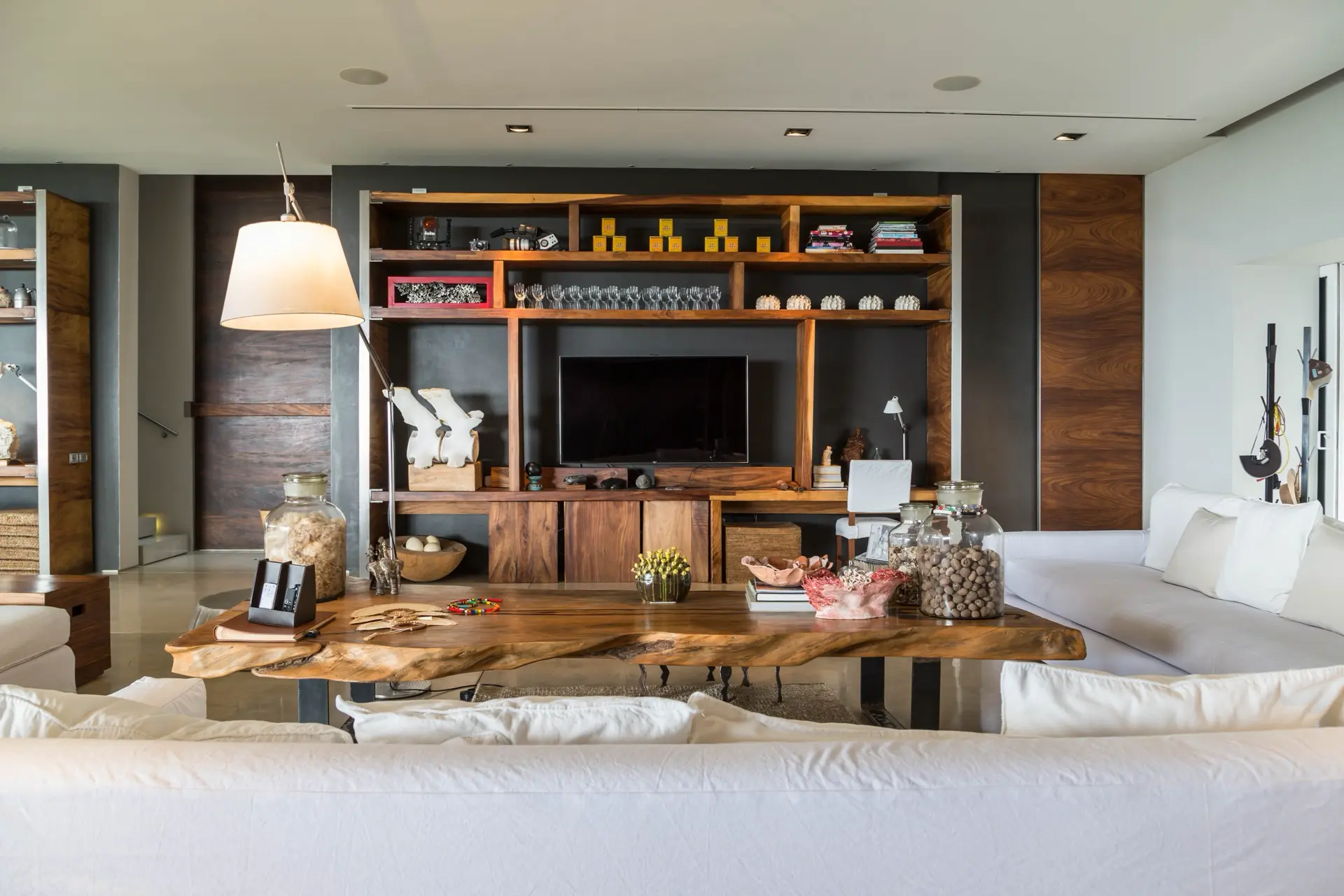 The Media Room can be converted into a sleeping area. It has state-of-the-art entertainment systems and comfortable seating, making it a versatile space for relaxation or additional guests.