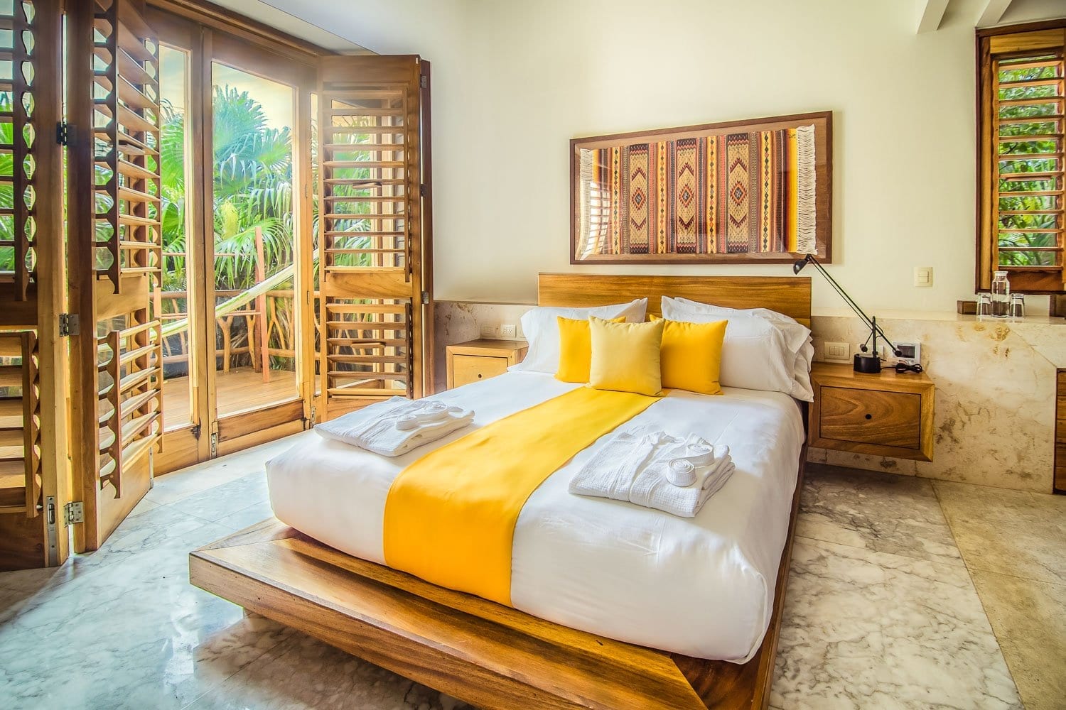 Queen size bed, Air conditioning, Ceiling fan, Ensuite bathroom with shower, Flat screen TV, Hairdryer, Ocean view, Private terrace with Hammock facing the beach, Safety box, Toiletries, Window screen