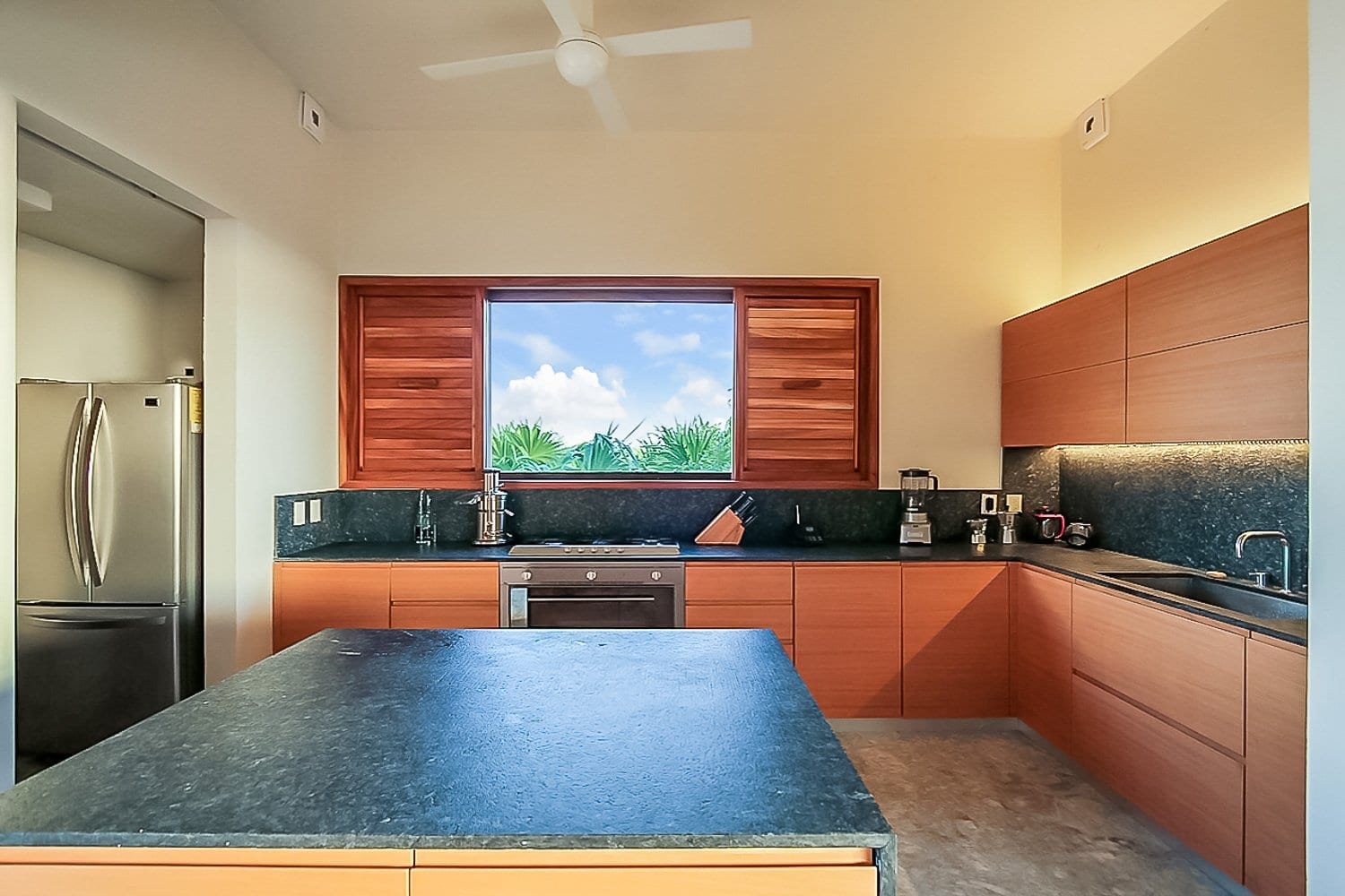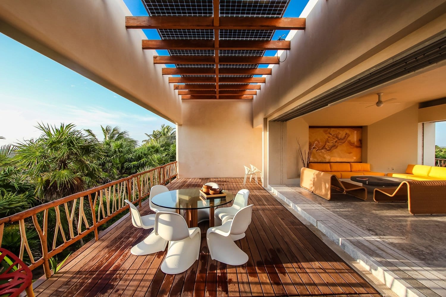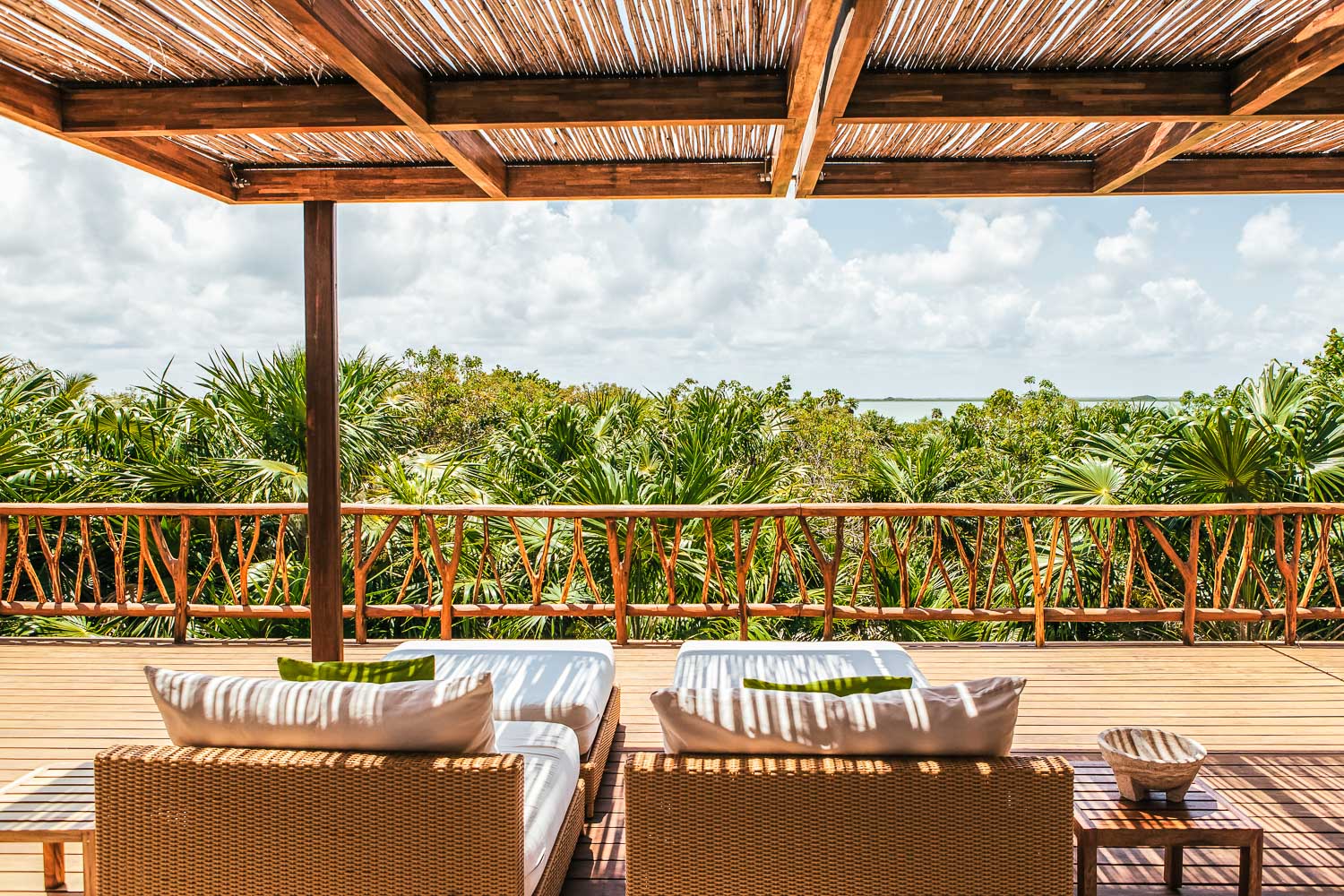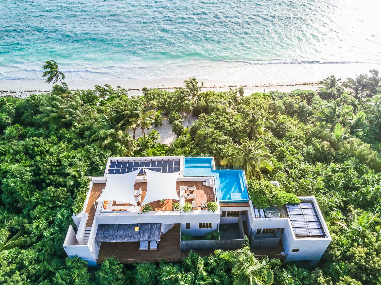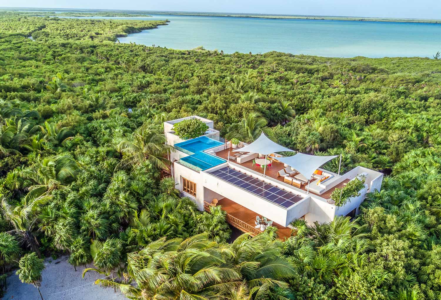 Within the Villa Experience portfolio, this luxury villa in Sian Ka’an reflects a considered balance of design, sustainability, and service. The house is completely auto-sufficient, powered by sun and wind with a very silent backup generator, achieving a zero-carbon profile while maintaining modern comforts such as air conditioning in all bedrooms. It is the kind of residence we select for travelers who value architecture, privacy, and a seamless, well-orchestrated stay in one of Mexico’s most singular coastal environments.