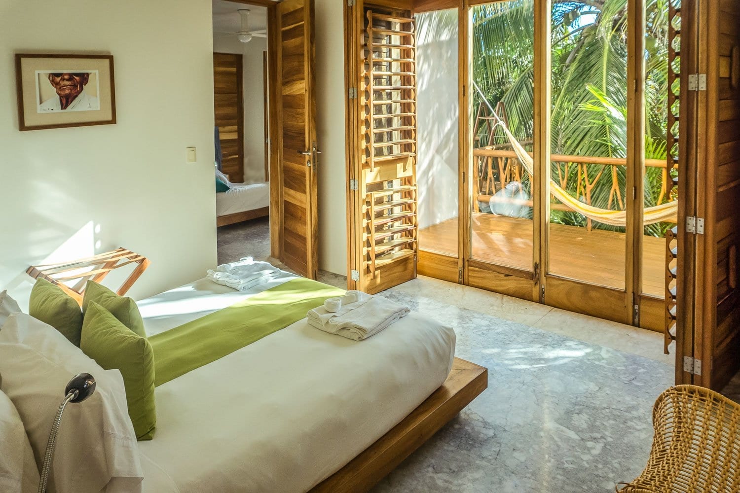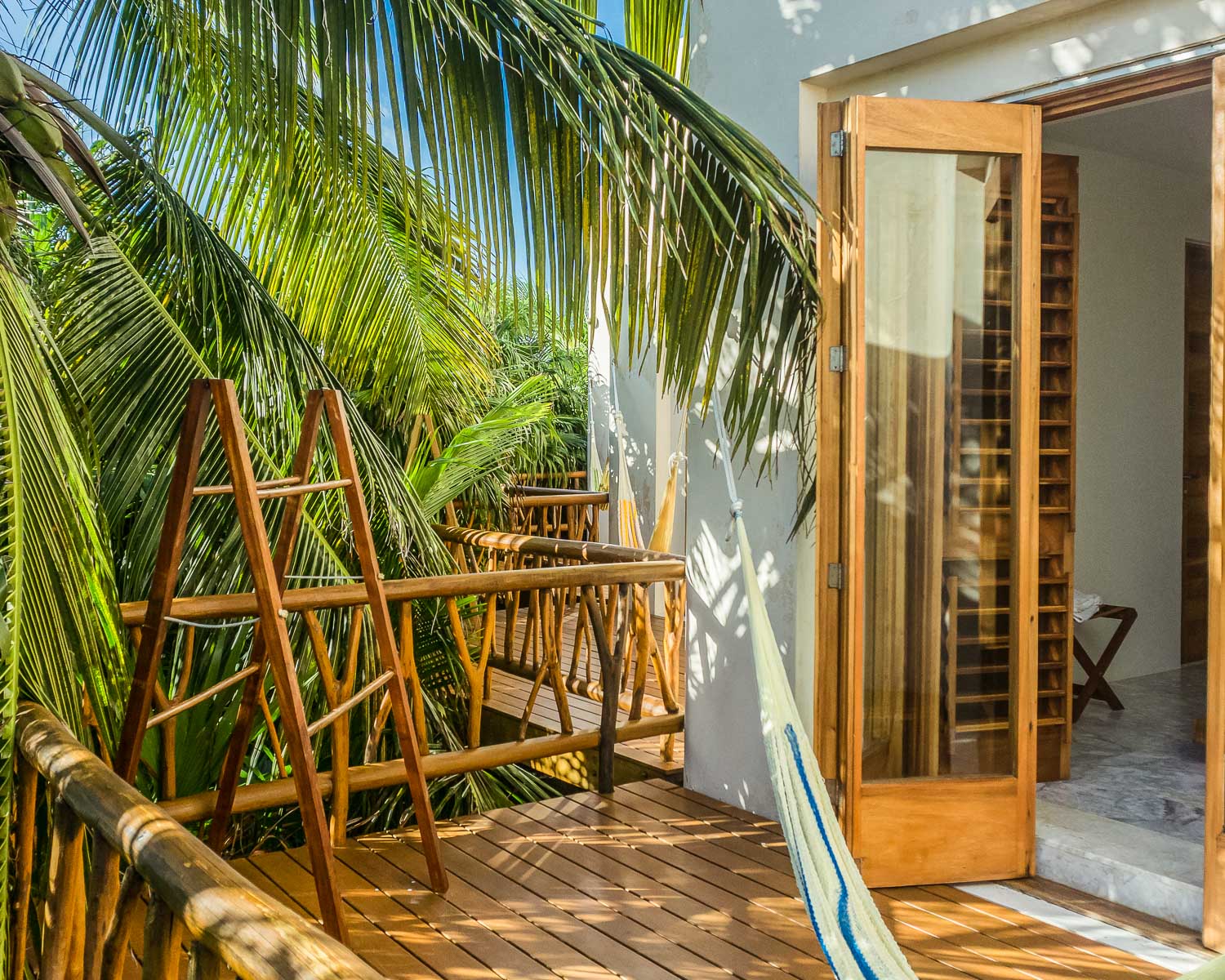 2 Single beds, Air conditioning, Ceiling fan, Ensuite bathroom with shower, Hairdryer, Ocean view, Private terrace with Hammock facing the beach, Safety box, Toiletries, TV, Window screen