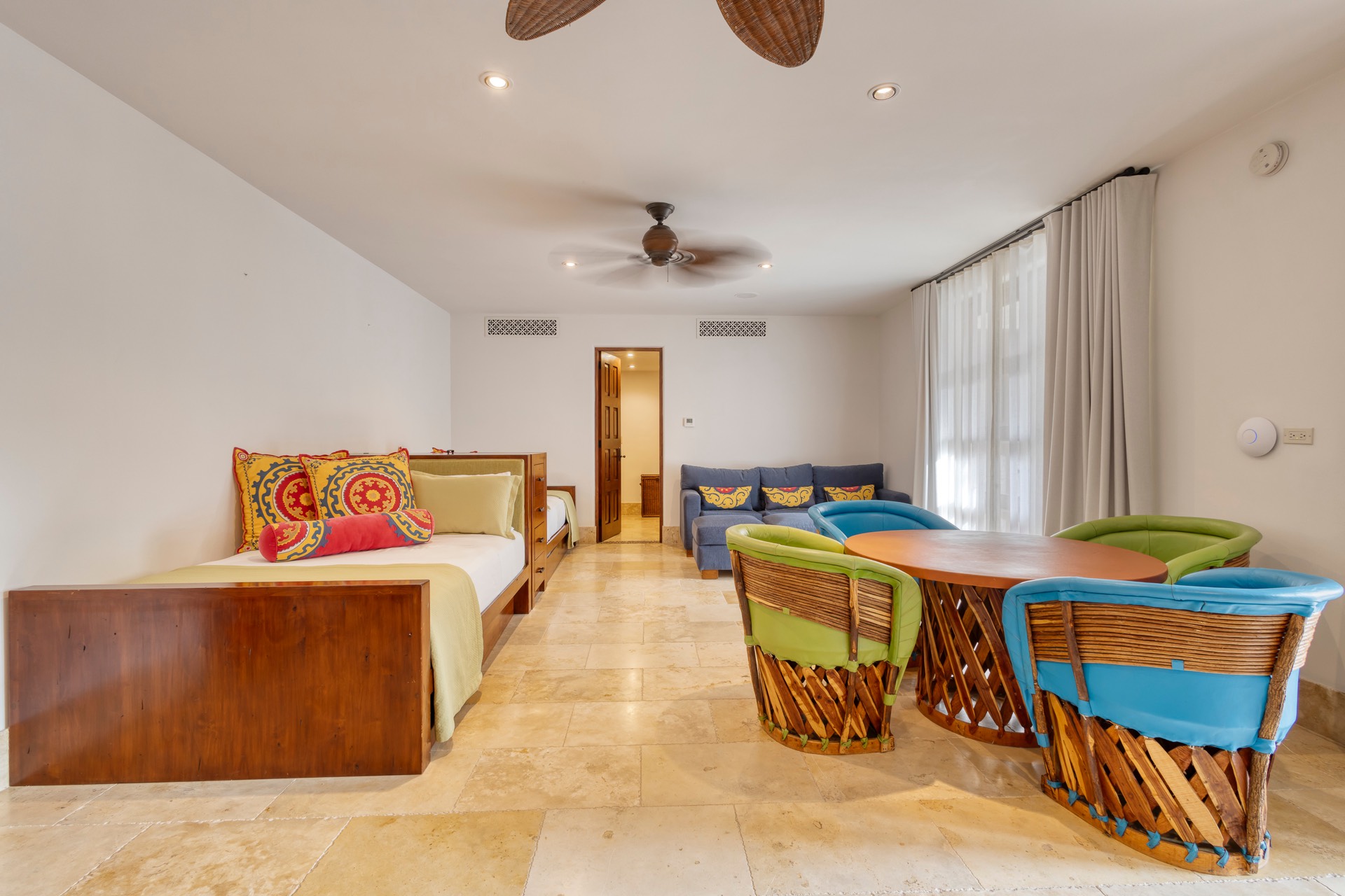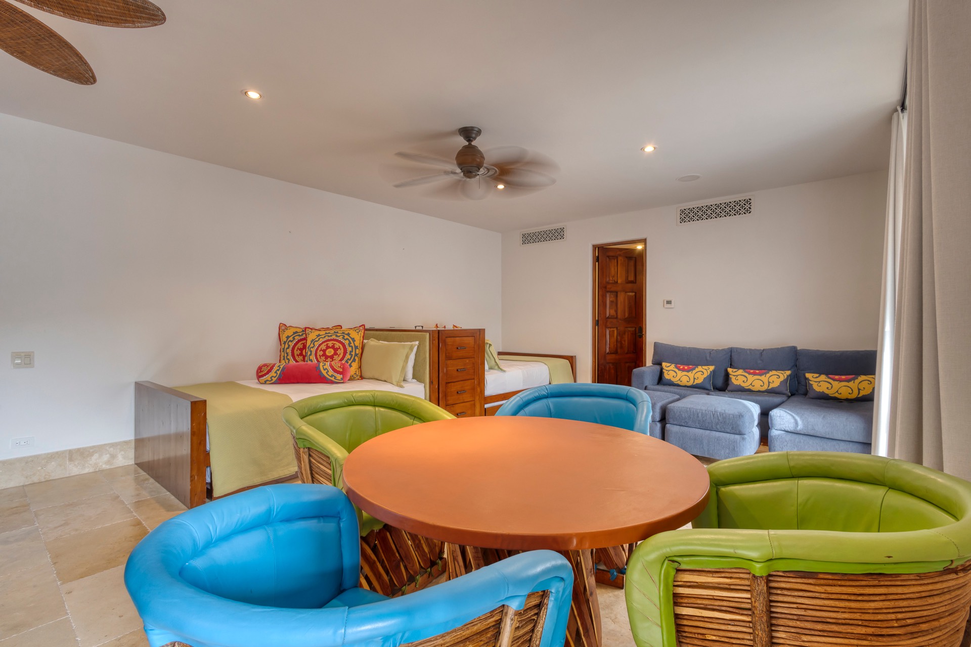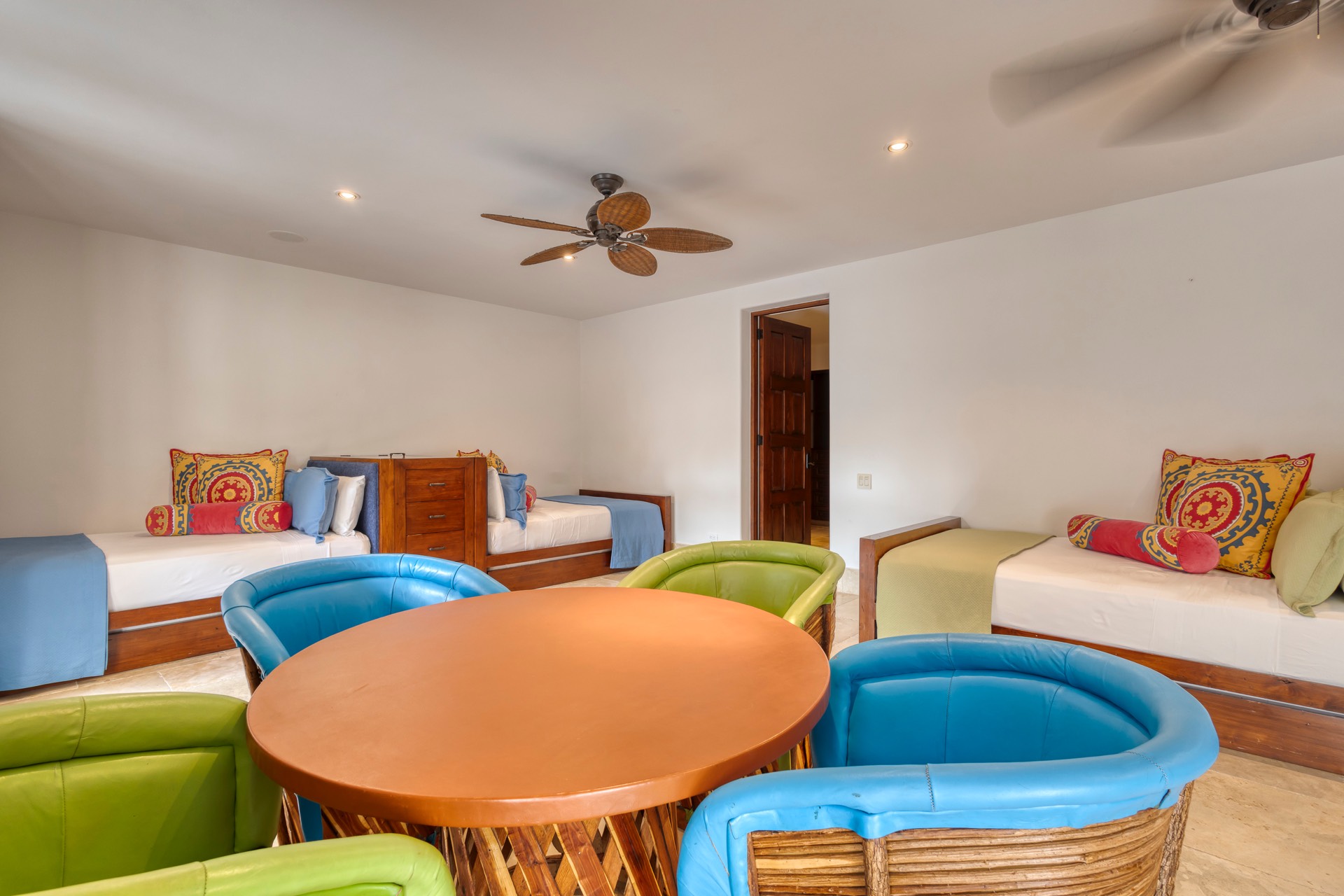 Designed with fun and functionality, the kids’ bedroom includes four double/full beds and four trundle beds, perfect for a larger group of children.