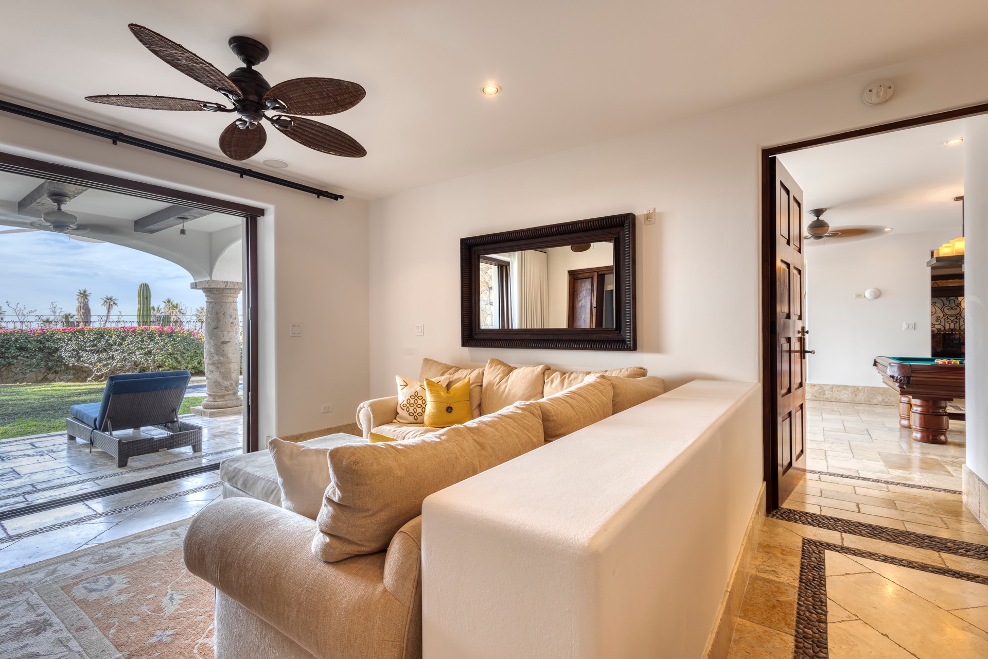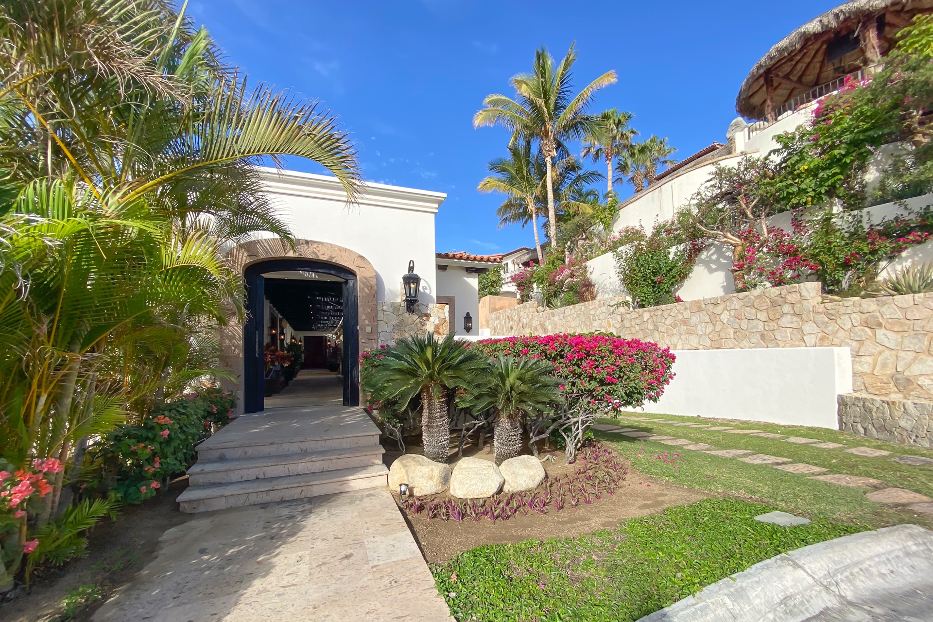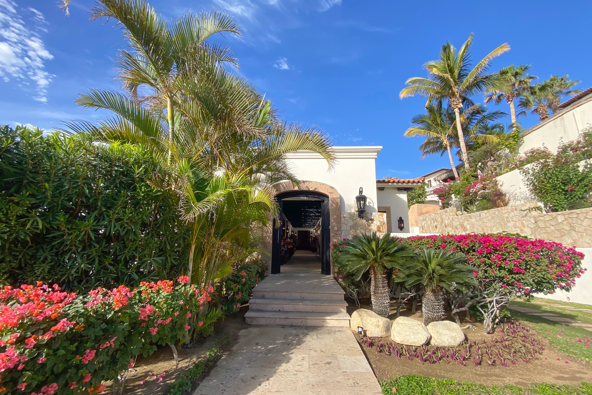 Villa Experience proudly presents Casa JoJo, a stunning contemporary hacienda-style villa boasting 8,330 square feet of interior living space. This magnificent villa includes seven bedrooms, seven full bathrooms, and two half bathrooms. Perched on two lots overlooking the 12th hole of The Cove Golf Course, Casa JoJo offers breathtaking views of the azure waters of the Sea of Cortez.