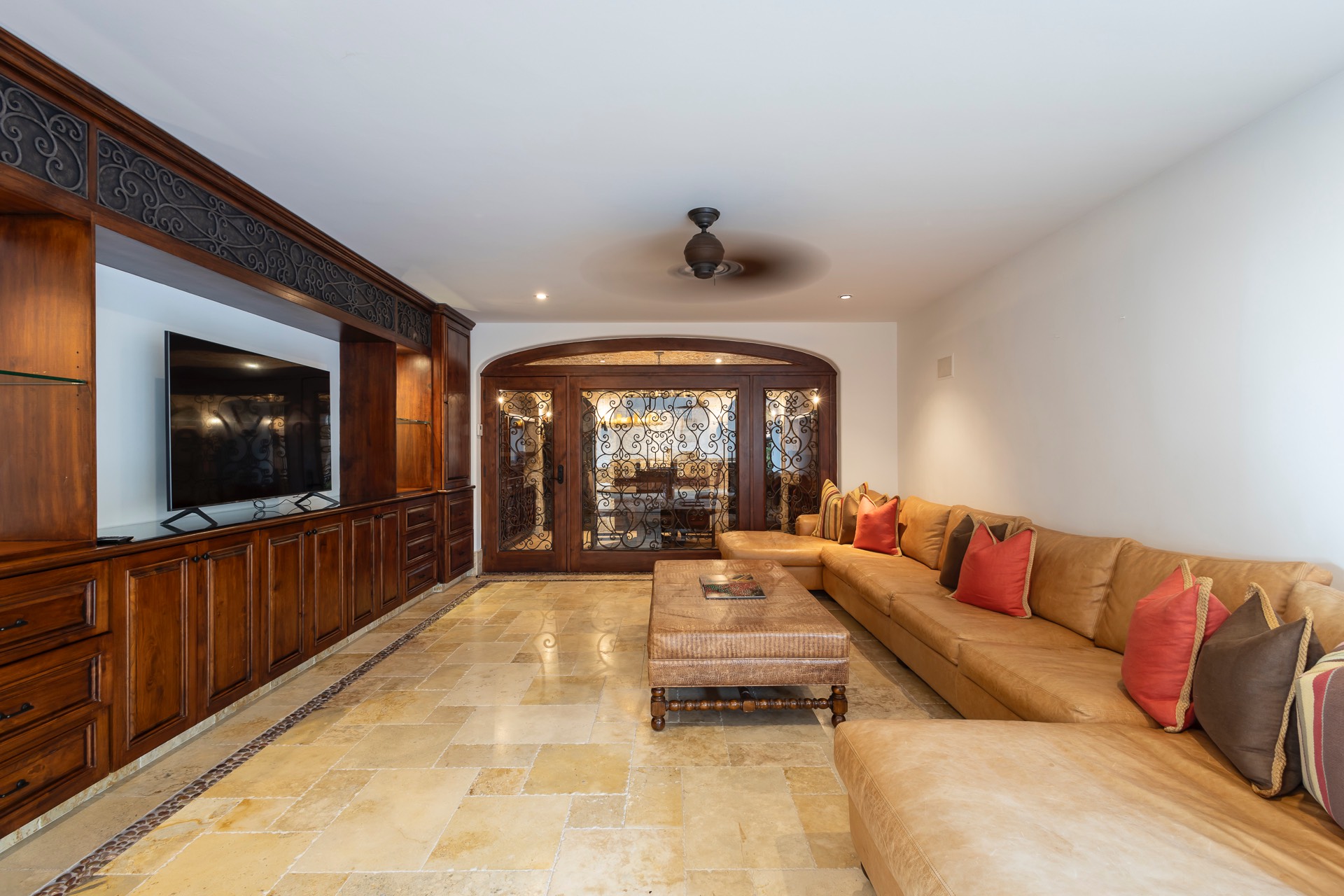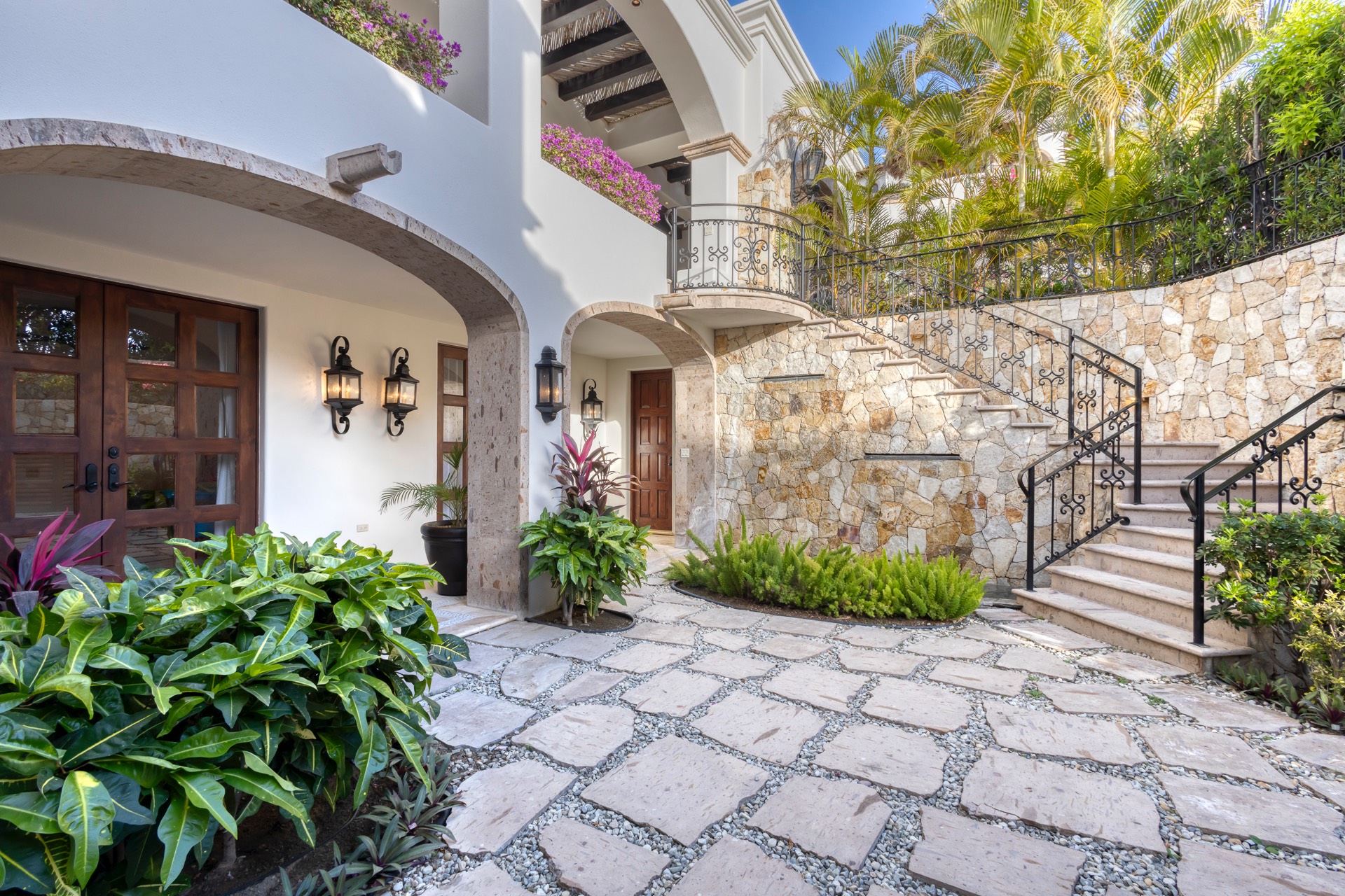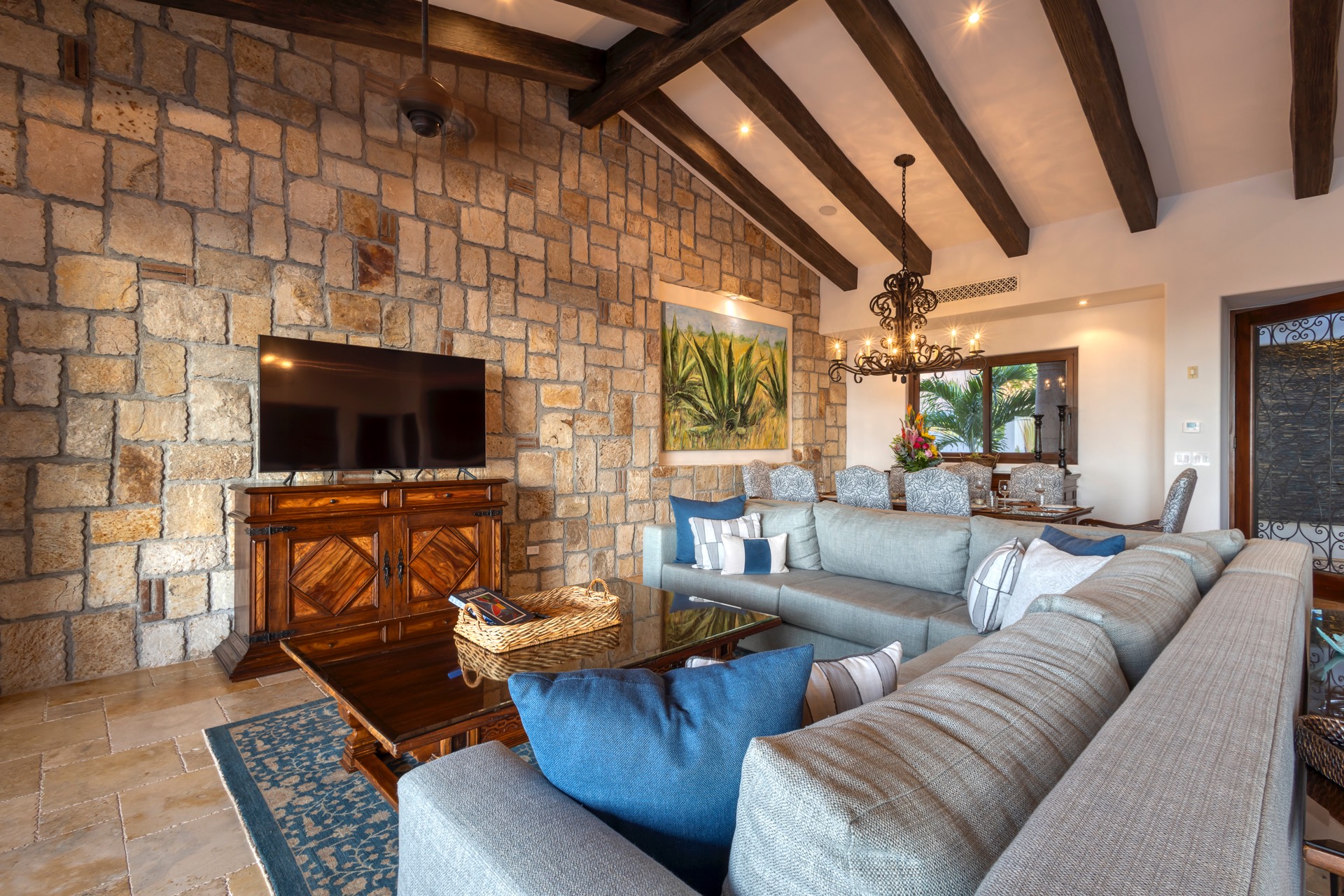 Villa Experience proudly presents Casa JoJo, a stunning contemporary hacienda-style villa boasting 8,330 square feet of interior living space. This magnificent villa includes seven bedrooms, seven full bathrooms, and two half bathrooms. Perched on two lots overlooking the 12th hole of The Cove Golf Course, Casa JoJo offers breathtaking views of the azure waters of the Sea of Cortez.