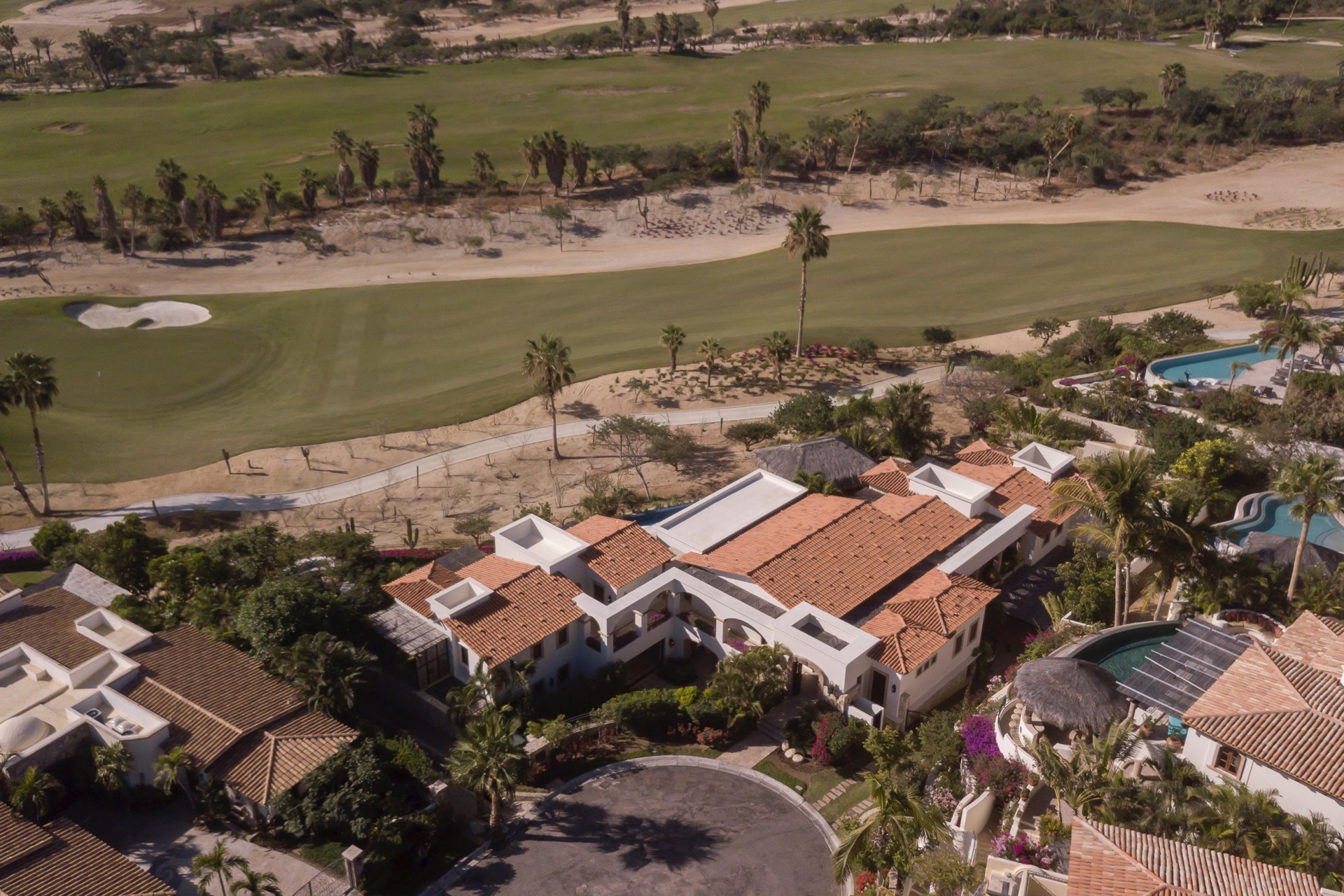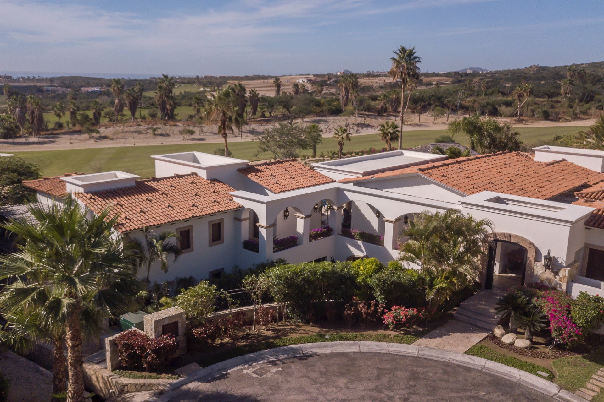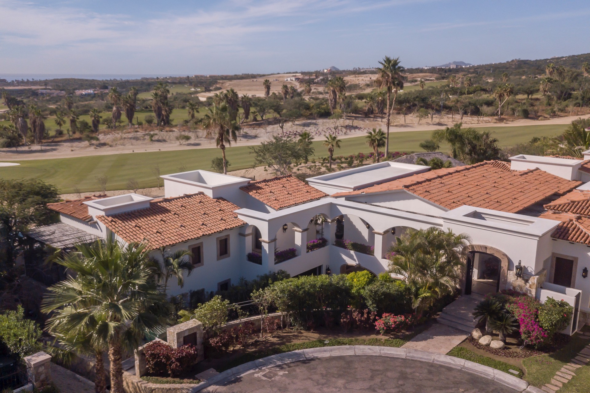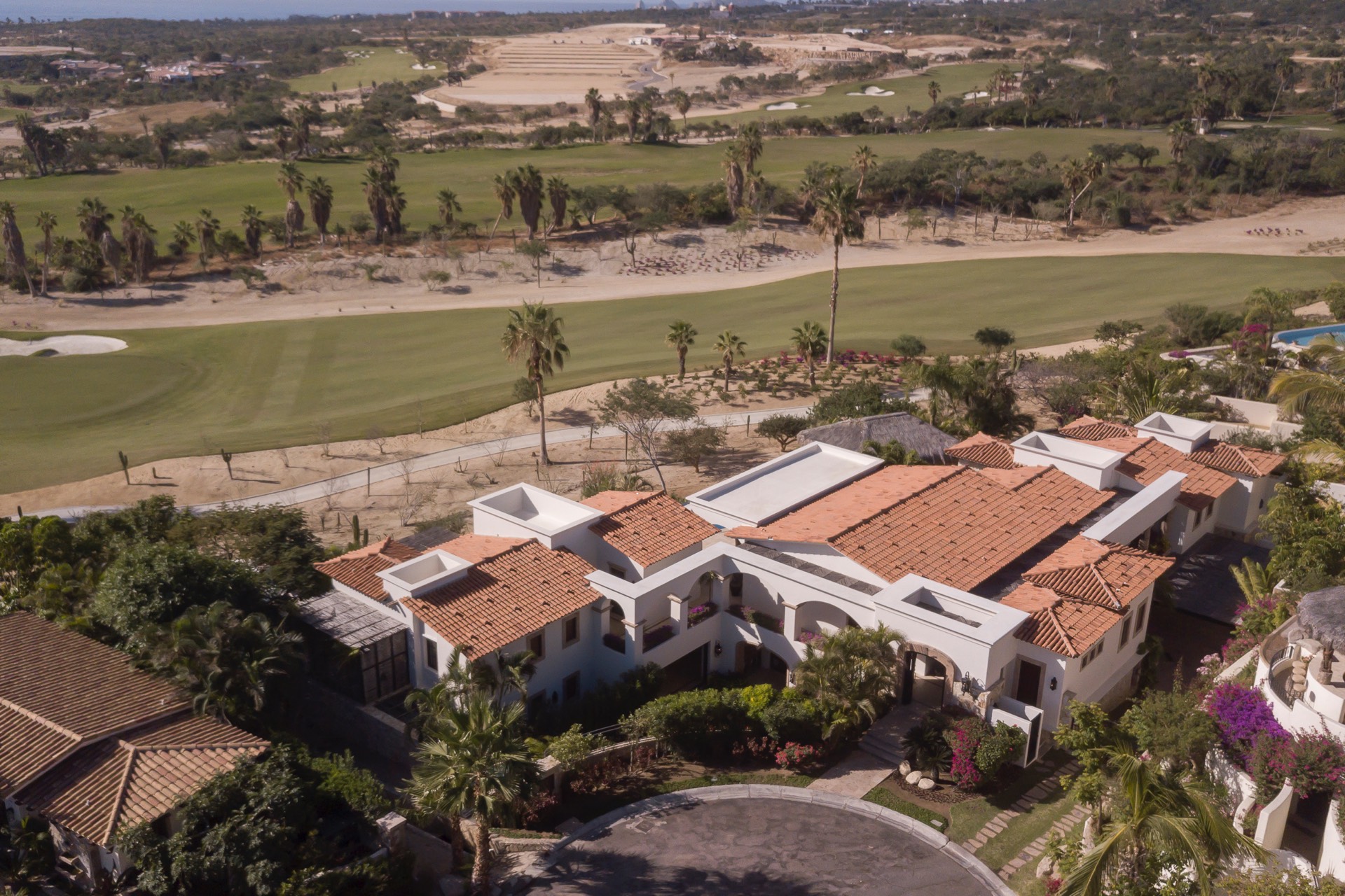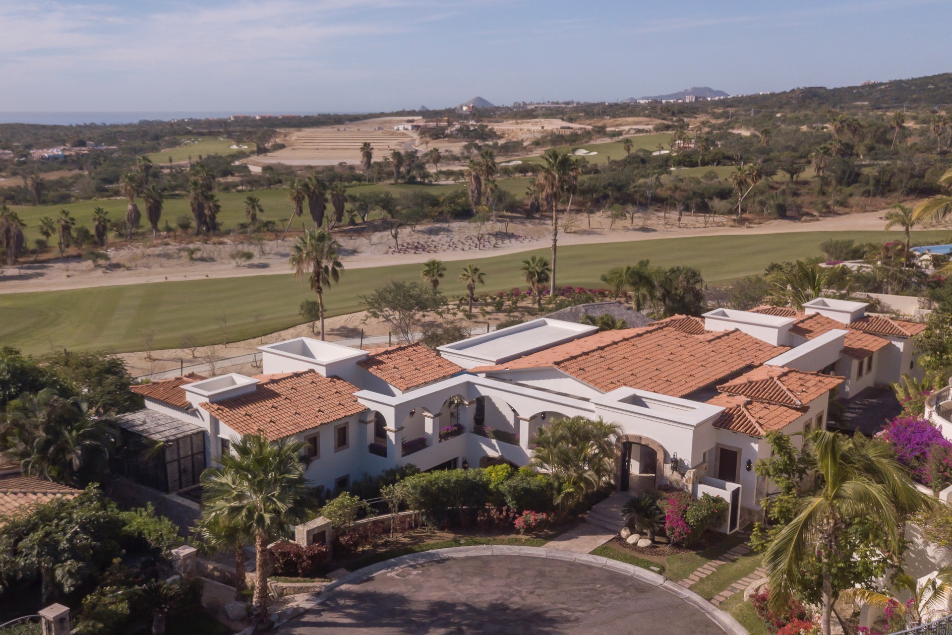 The villa is near the beach and golf courses, just a 10-minute drive to downtown Cabo. It offers on-golf course views with ocean vistas, and there are a variety of local attractions to explore during your stay.