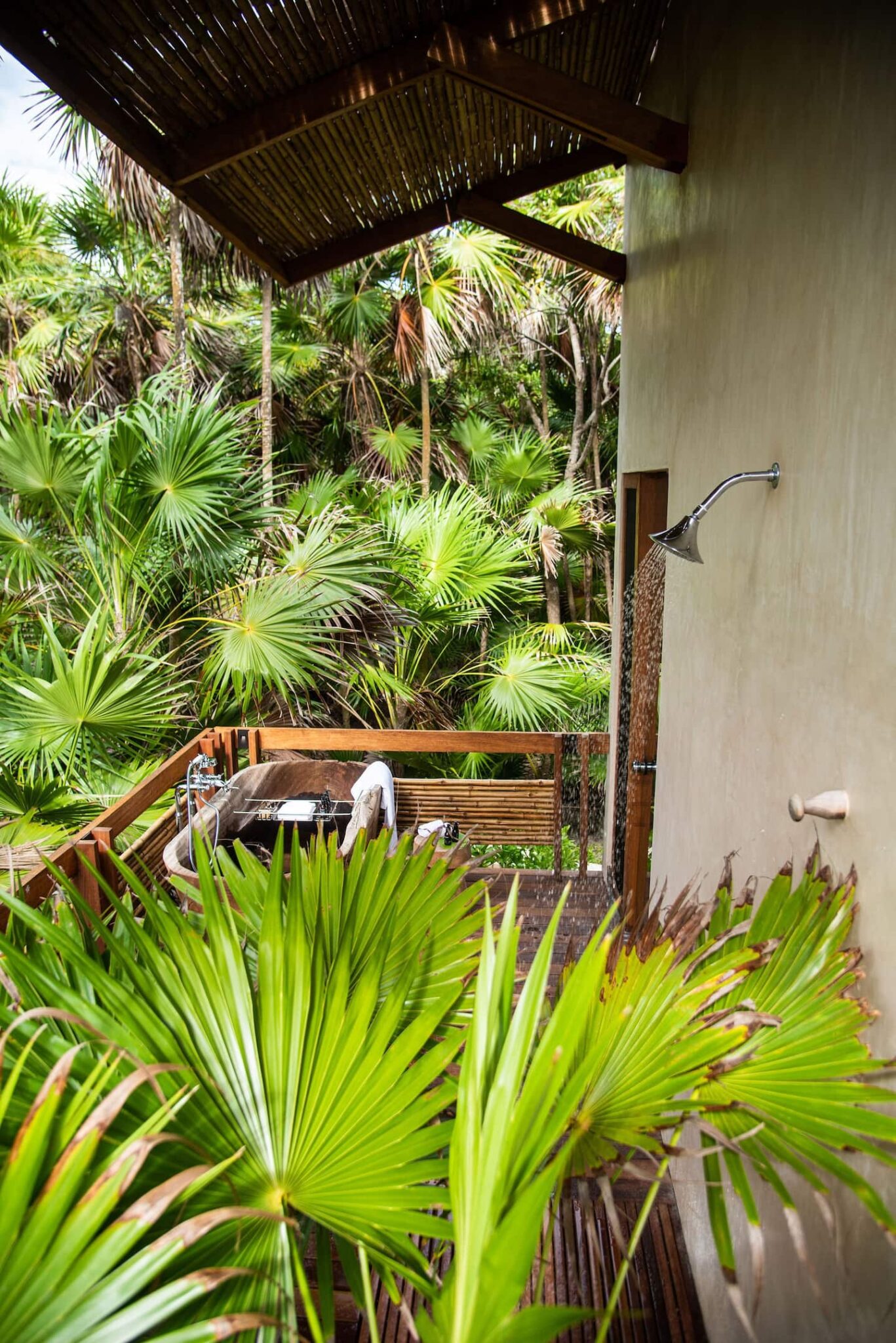 King size bed, Air conditioning, Bathtub, Ceiling fan, Dual vanity, Ensuite bathroom with indoor & outdoor shower, Outdoor bathtub, Private balcony with ocean and Jungle views, Safety box, Sleep Eight Matresses with Frette bedding, Sonos central sound system, TV, Wifi access, Window screen, Yucatan Senses organic toiletries