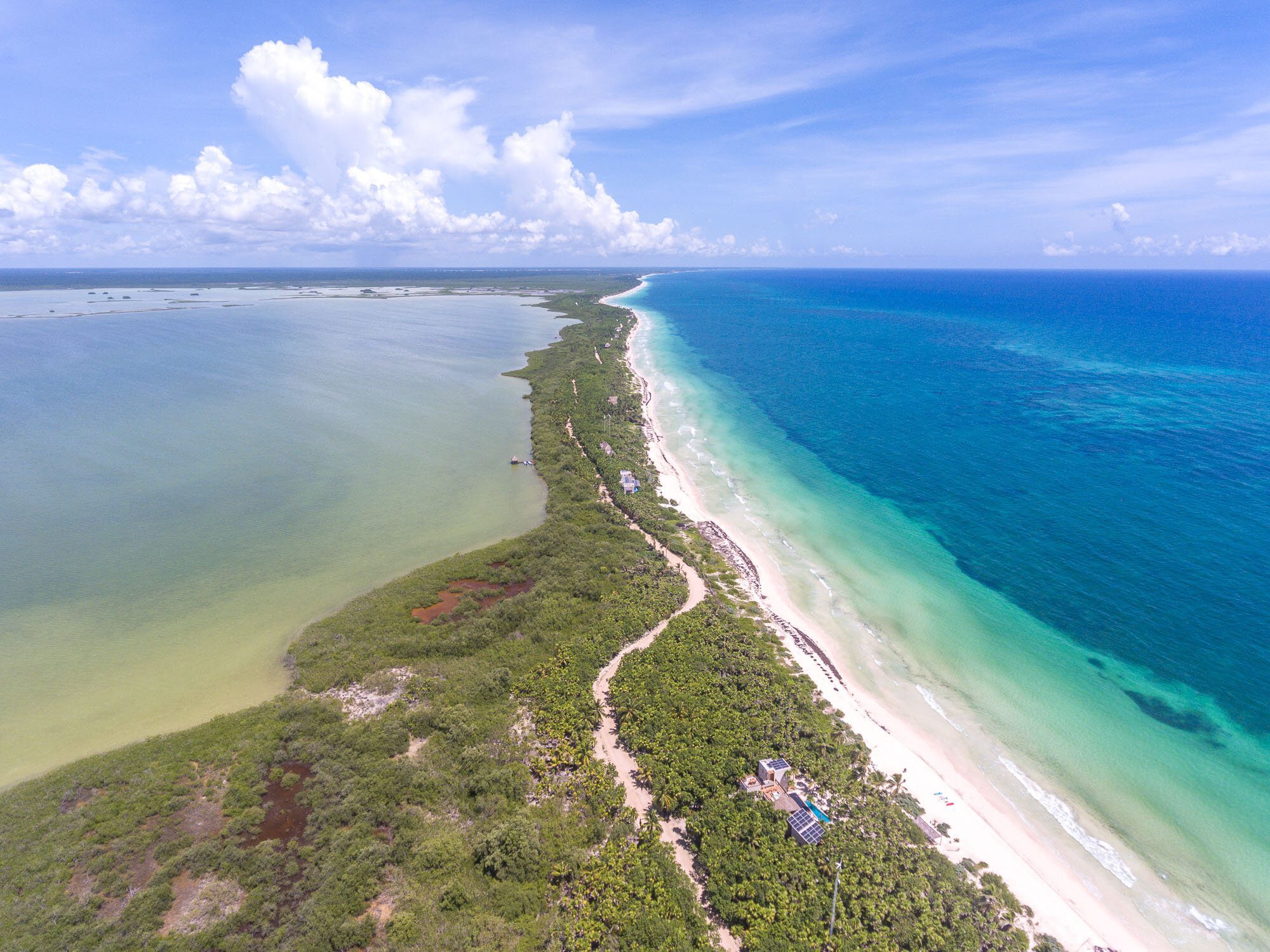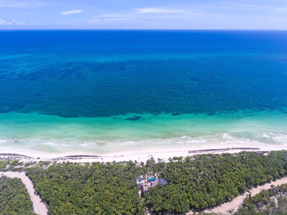 Set 3.5 miles inside the Sian Ka’an Biosphere Reserve, the villa sits within a vibrant protected landscape, surrounded by native vegetation and wildlife. A 2.5-acre estate frames the house between the Caribbean Sea on one side and the Campechén Lagoon on the other, giving the property a strong sense of place. Here, the architecture is conceived to blend into its environment, allowing the reserve’s tropical character to remain the true focal point.