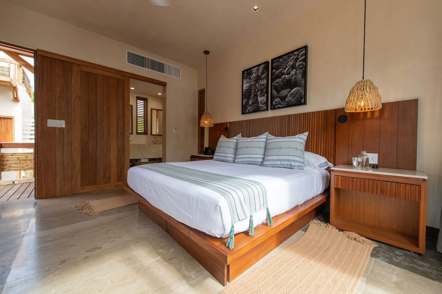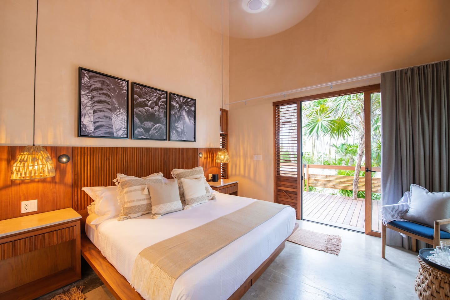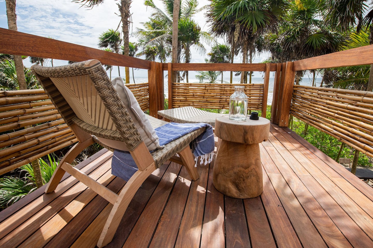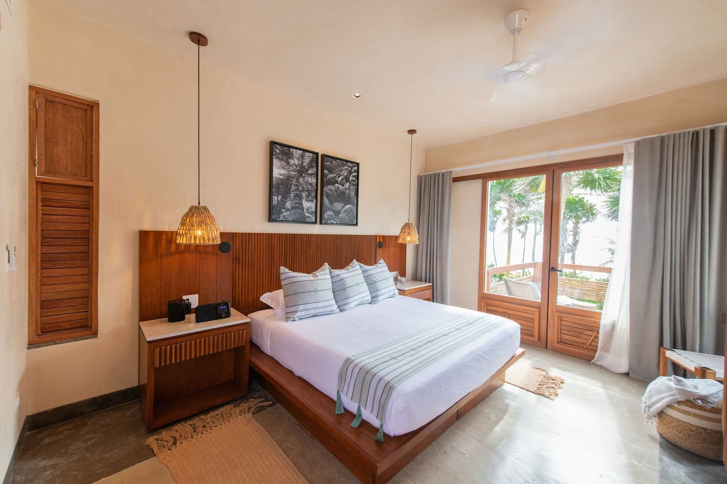 King/Twin bed(s), Air conditioning, Ceiling fan, Dual vanity, Ensuite bathroom with indoor & outdoor shower, Ocean view, Private terrace, Safety box, Sleep Eight Matresses with Frette bedding, Sonos central sound system, TV, Wifi access, Window screen, Yucatan Senses organic toiletries