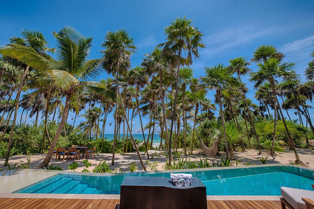 Part of the Villa Experience collection of private homes, Casa Kati Kaan offers an intimate, eco-conscious retreat in the Sian Ka’an Biosphere Reserve near Tulum. This is a place where contemporary comfort is thoughtfully woven into a pristine natural setting, creating a stay that feels both refined and quietly elemental. With its artful pool, rooftop plunge tub, and relaxed indoor-outdoor flow, the villa is designed for guests who value immersion in nature without sacrificing ease.