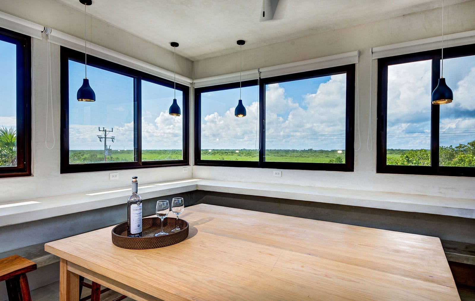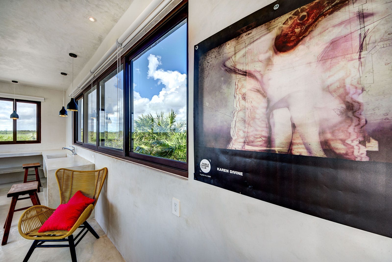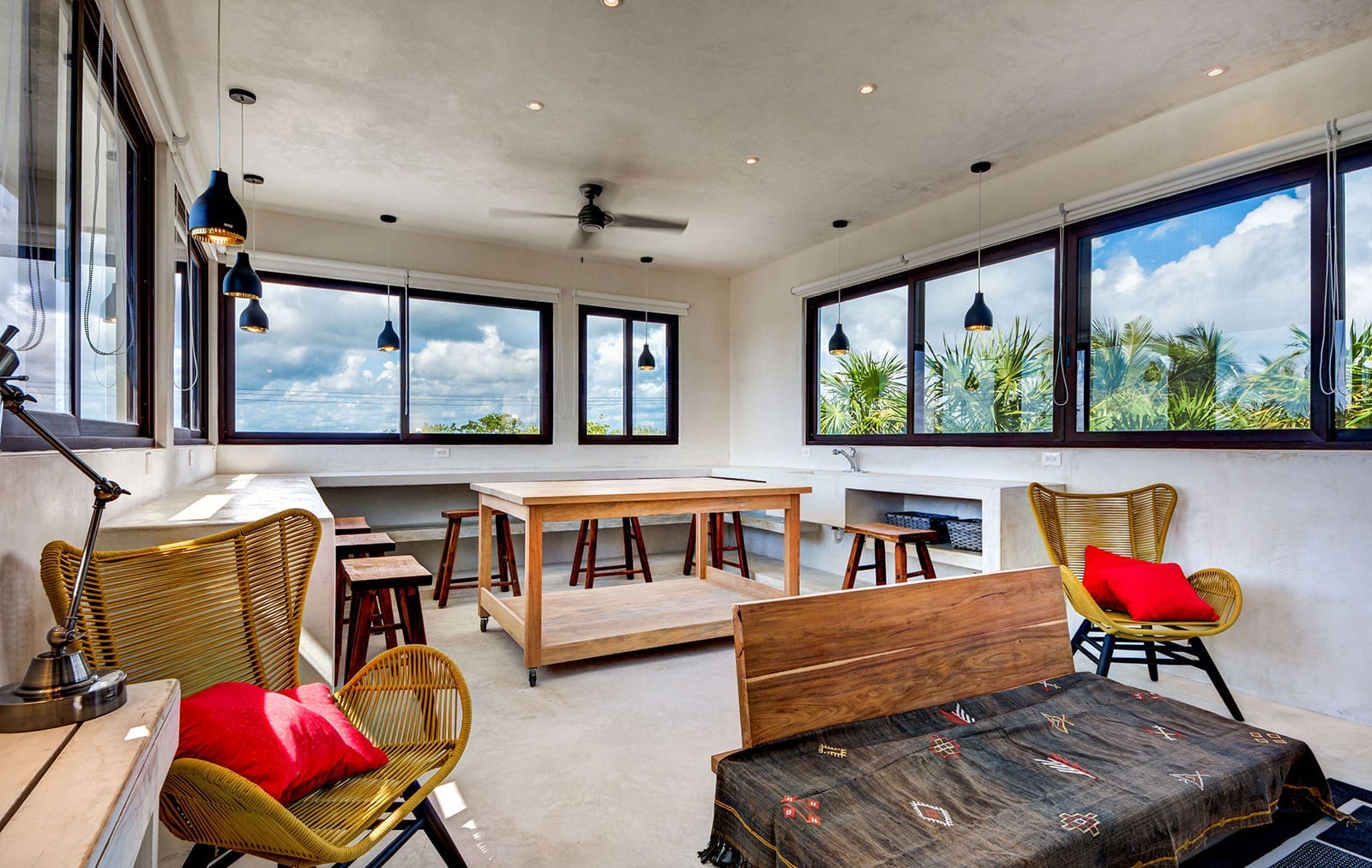 Casa Kevali offers luxurious indoor amenities designed to meet the highest standards of comfort. The gourmet kitchen has top-tier appliances, perfect for culinary enthusiasts or private chef-prepared meals. Relax in the open-plan living and dining areas with expansive sliding doors that create a seamless flow between indoor and outdoor spaces. Additional features include a private media room, air conditioning throughout, Wi-Fi access, and hand-crafted décor featuring the owner’s artwork.