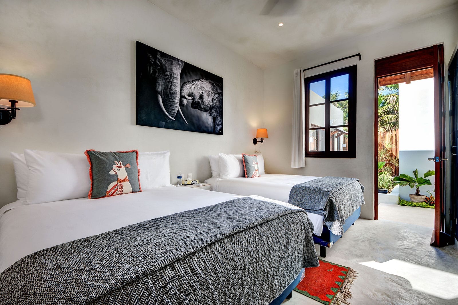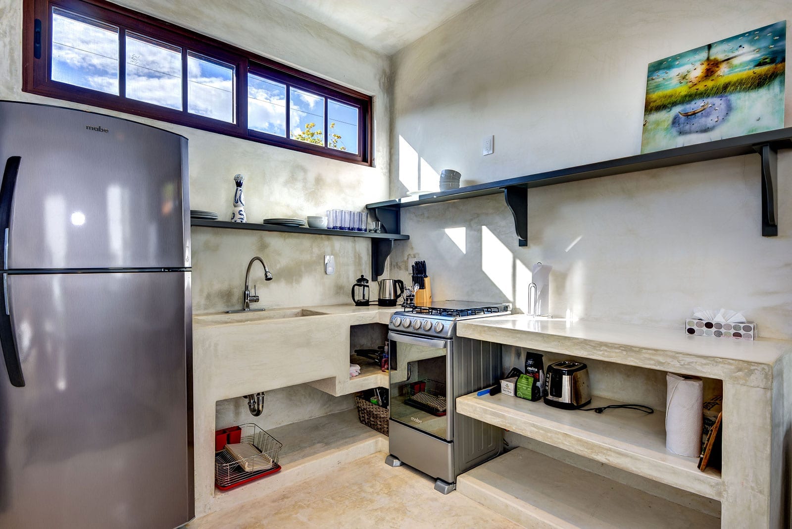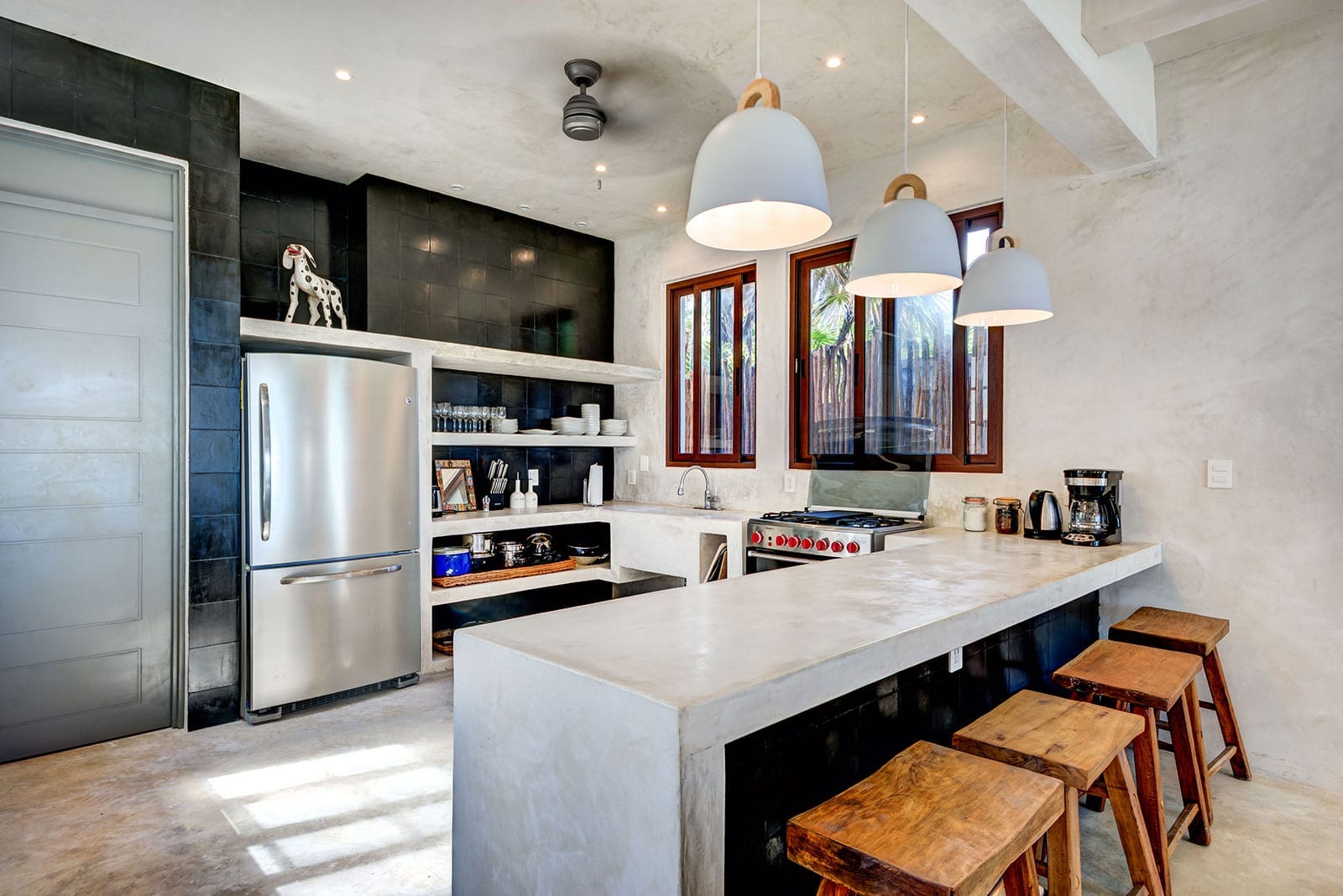 Casa Kevali offers luxurious indoor amenities designed to meet the highest standards of comfort. The gourmet kitchen has top-tier appliances, perfect for culinary enthusiasts or private chef-prepared meals. Relax in the open-plan living and dining areas with expansive sliding doors that create a seamless flow between indoor and outdoor spaces. Additional features include a private media room, air conditioning throughout, Wi-Fi access, and hand-crafted décor featuring the owner’s artwork.