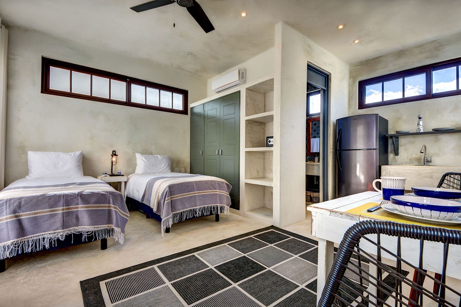 Located in a separate private casita, this room features King or Twin beds, air conditioning, a ceiling fan, an ensuite bathroom with shower, a kitchenette, a private entrance, TV, and Wi-Fi access. It is ideal for those desiring extra privacy.