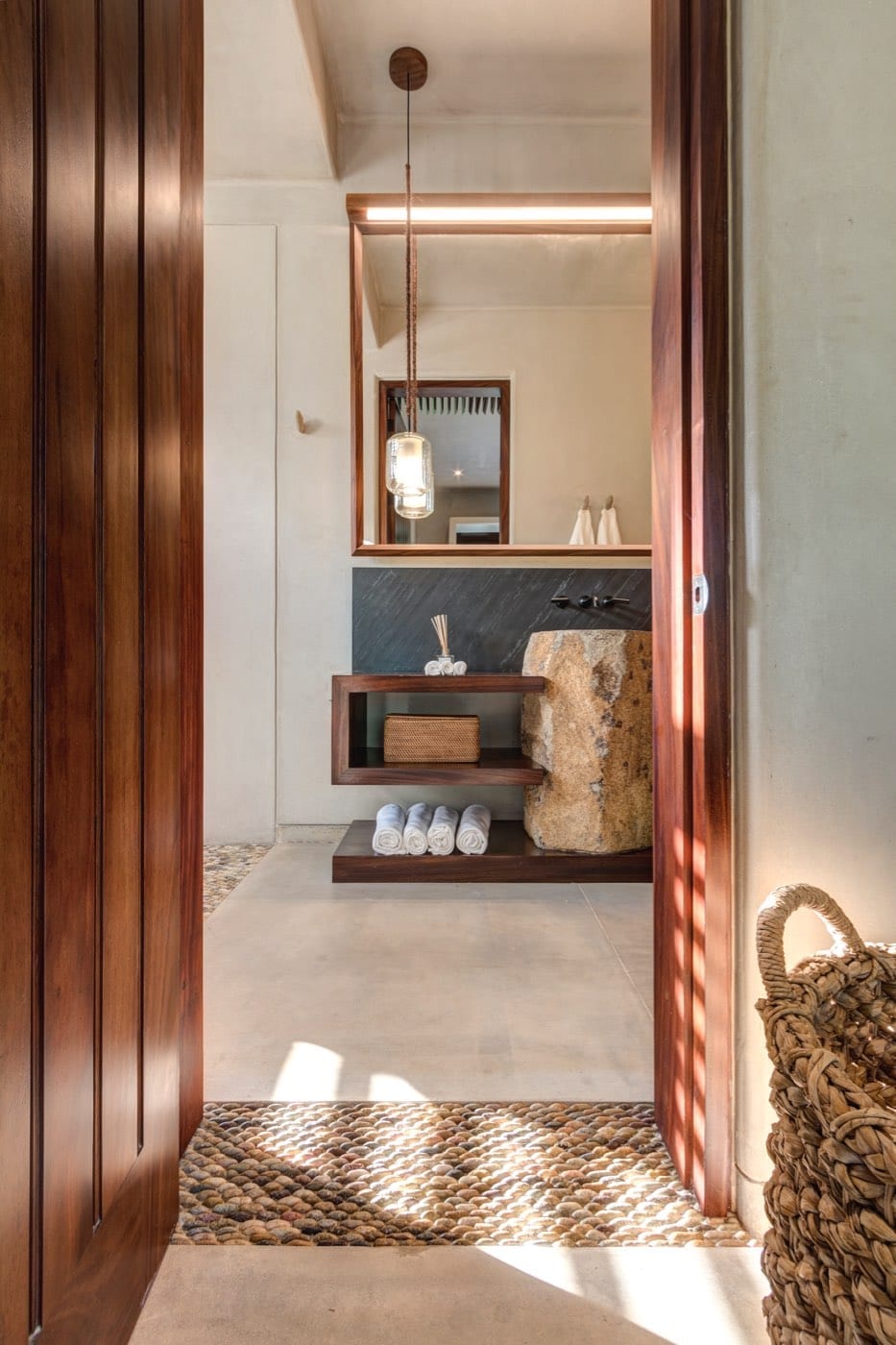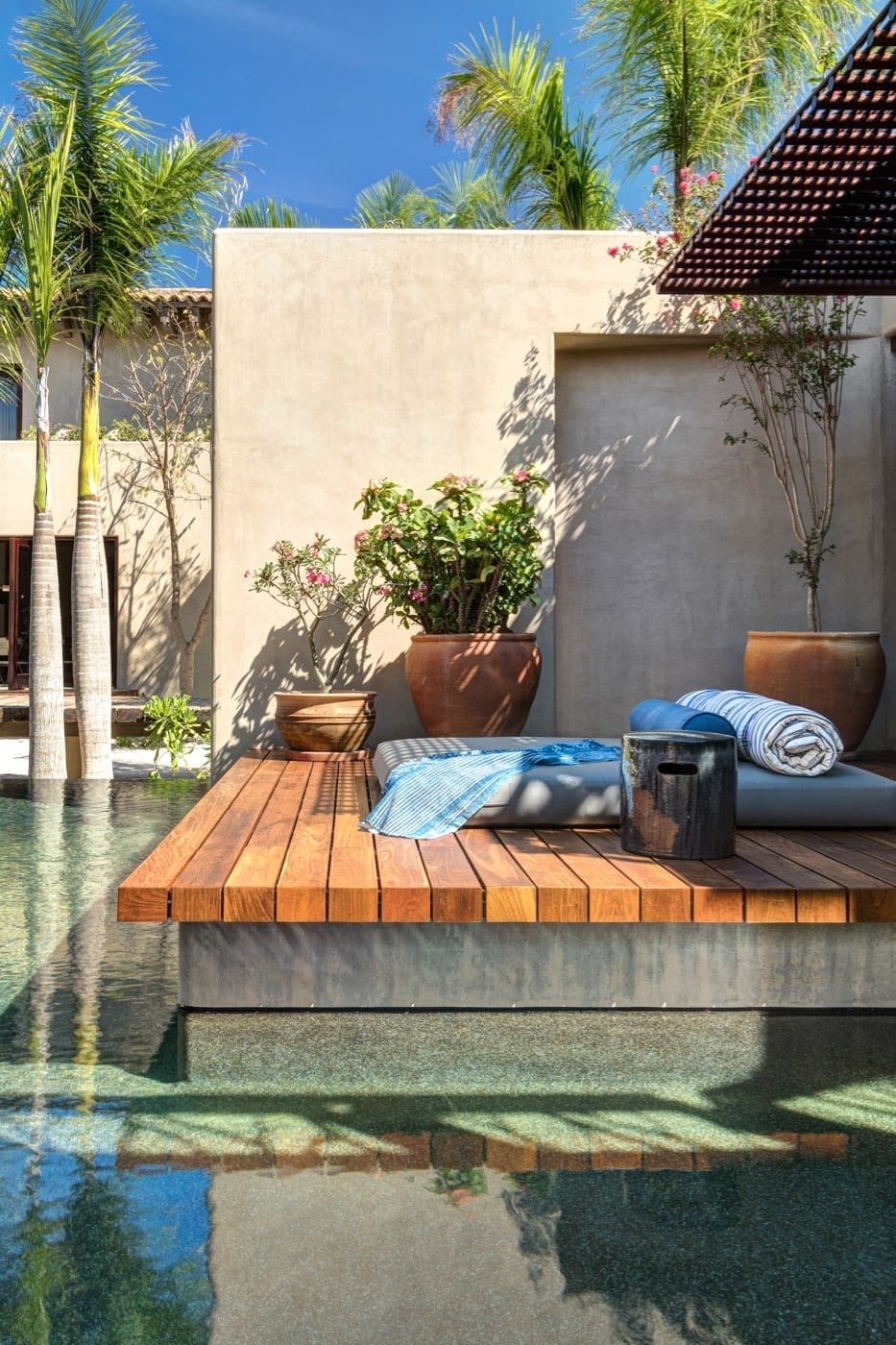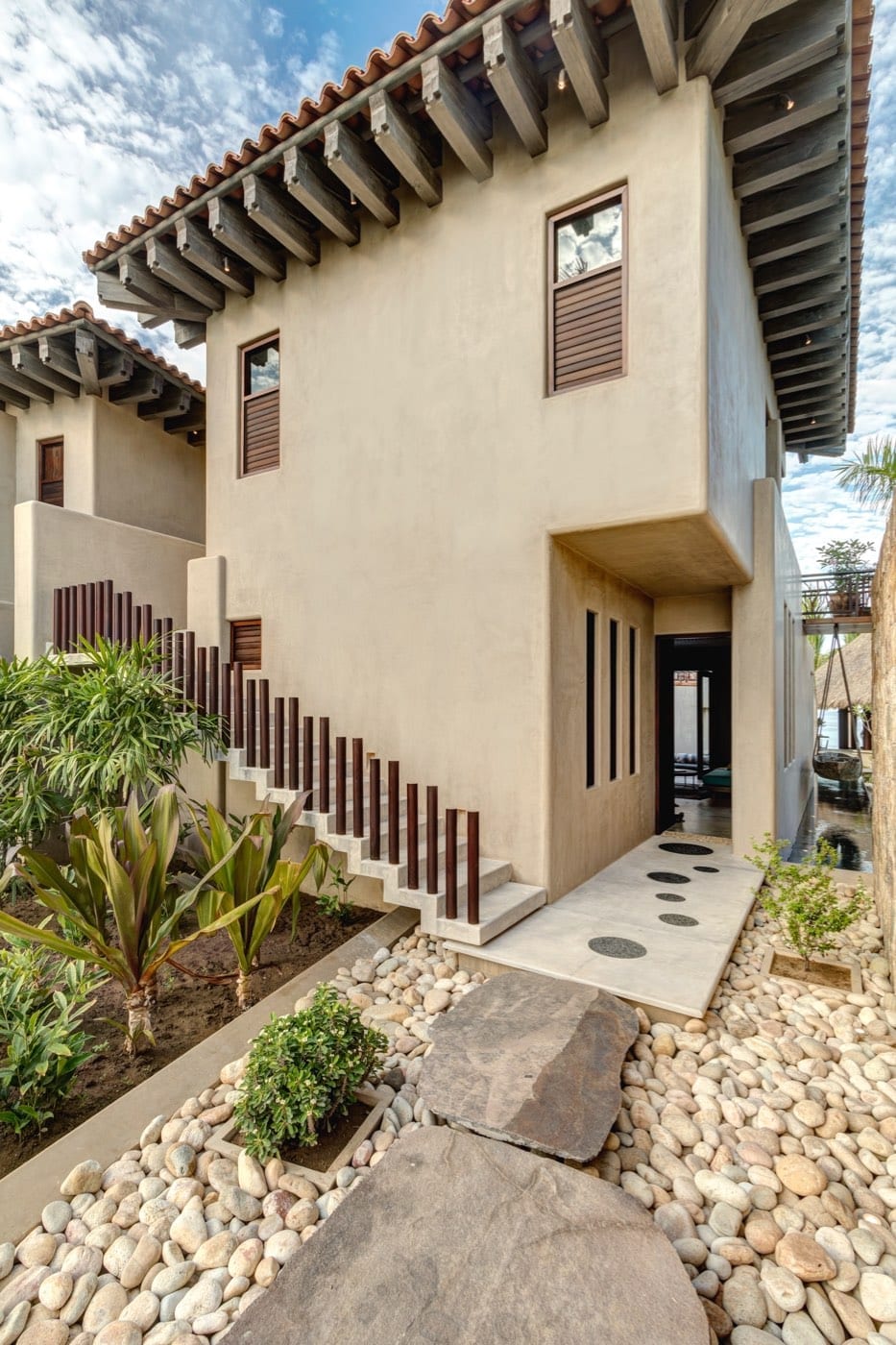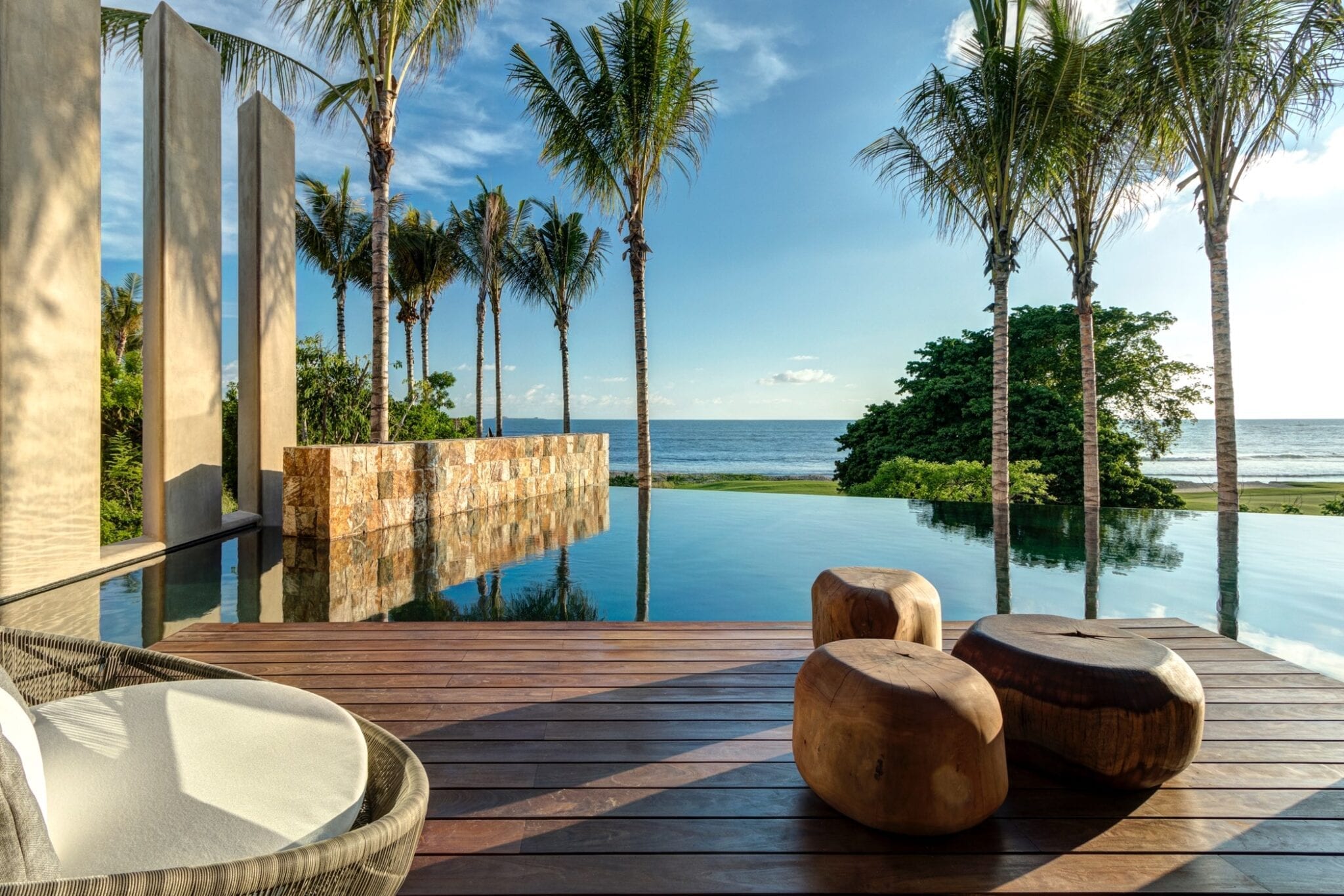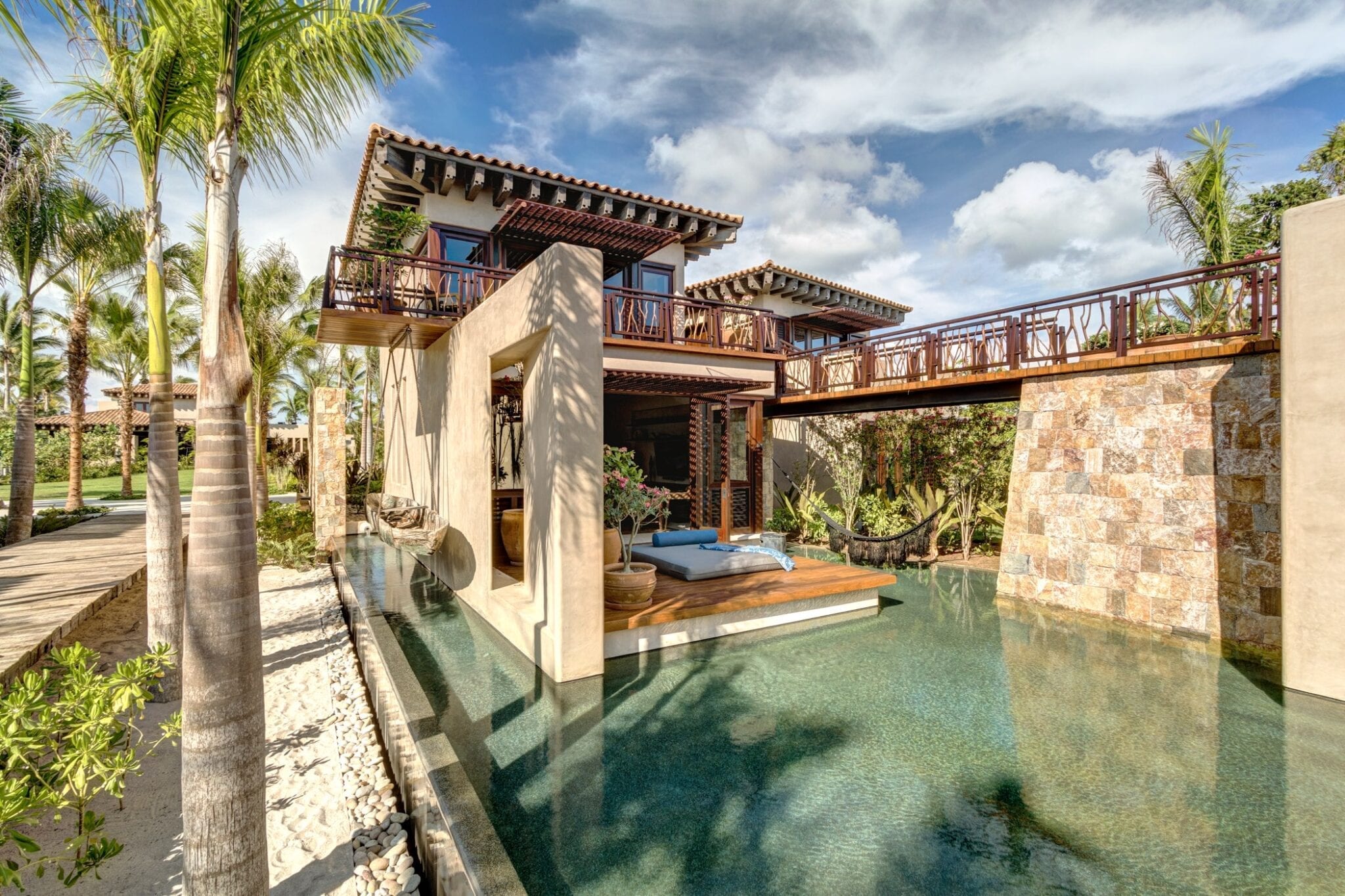 The atmosphere at Casa Koko is that of a stately outpost in an exotic corner of the world. Wooden beams and bed canopies, palm‑thatched dining spaces, and carefully curated decor create interiors that feel both warm and sophisticated. Every space is composed with impeccable taste, balancing natural textures and open-air living with a polished, high-end aesthetic.