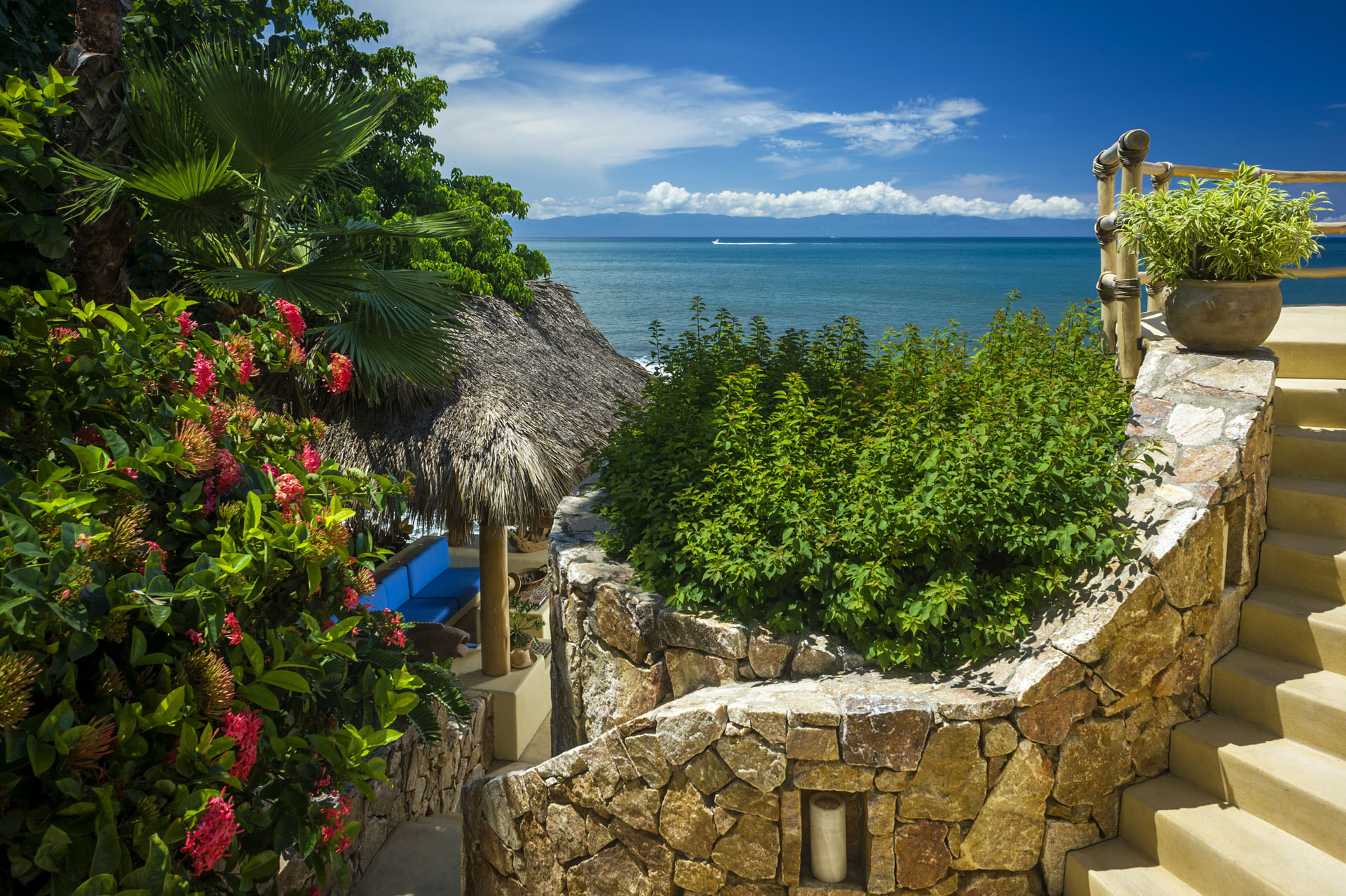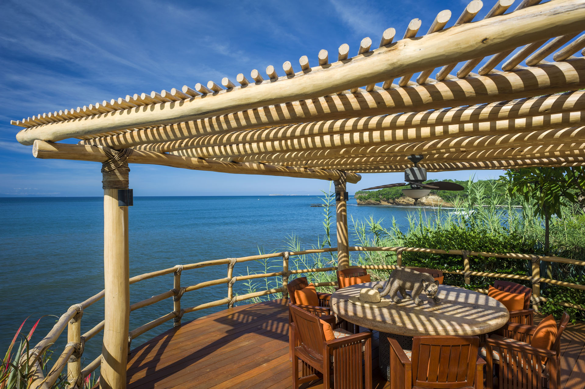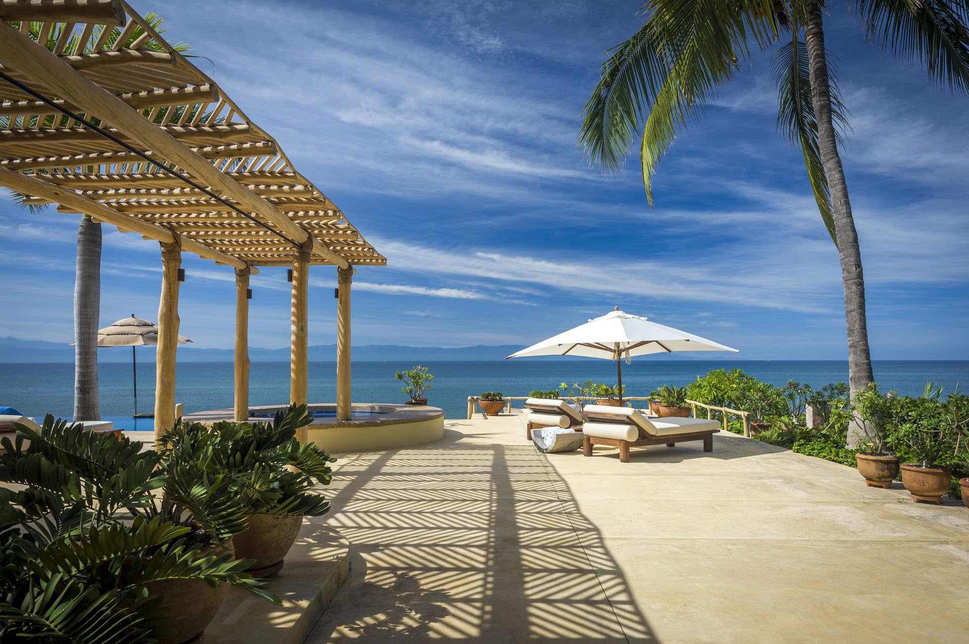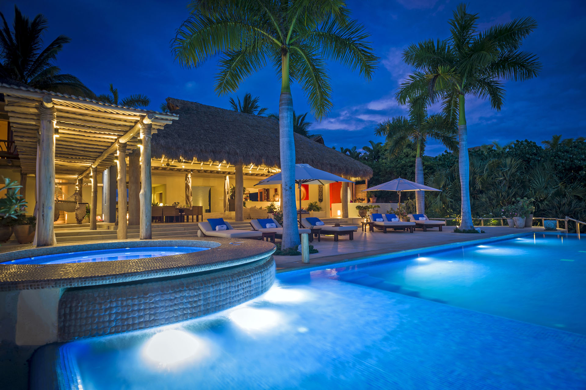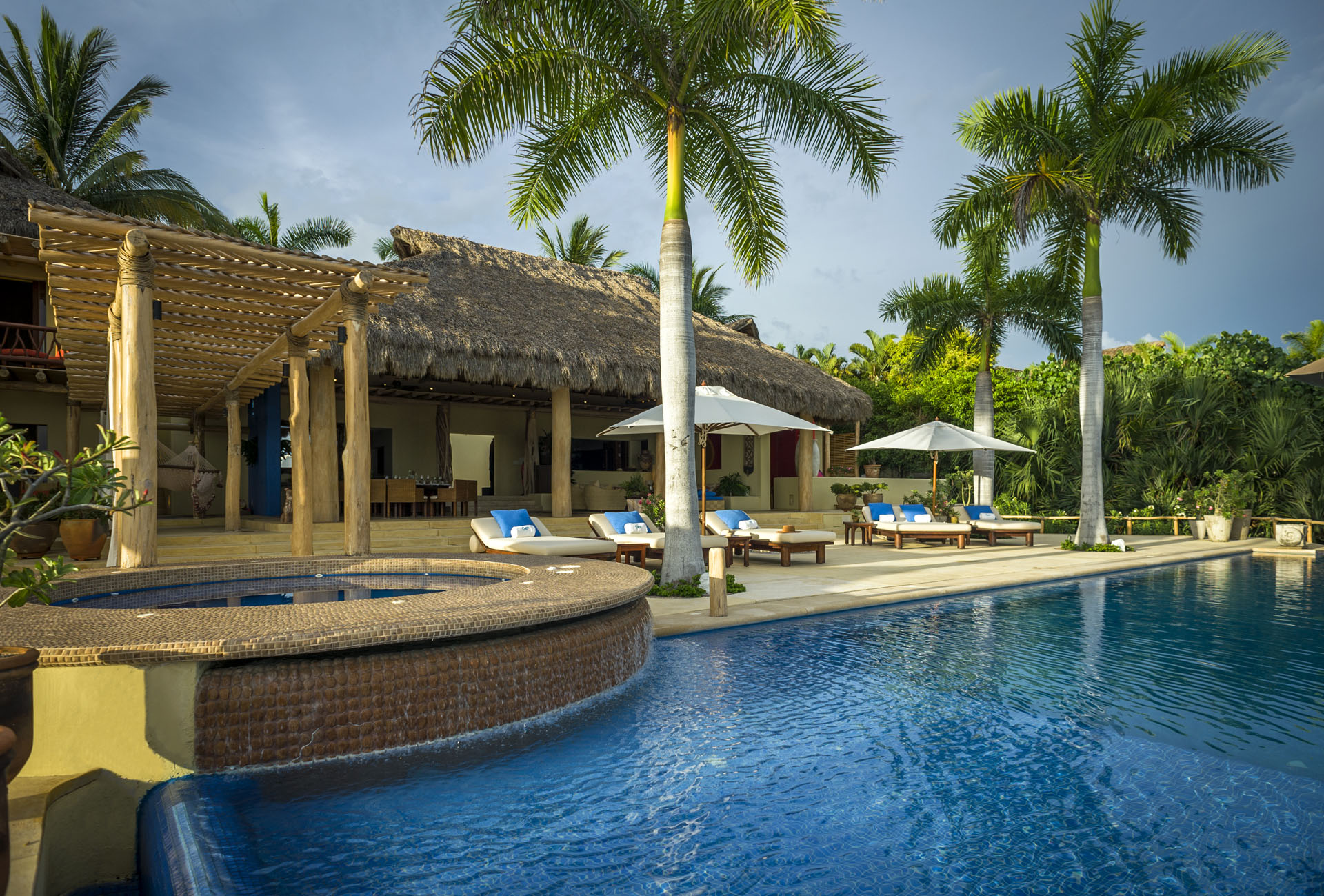 Expert artisans and architects masterfully crafted La Caleta. Together, they harmoniously blended 12,400 square feet of indoor and outdoor spaces. Above all, its distinctive palapa-style thatched roof makes it a true standout. Furthermore, the kitchen, a chef’s dream, boasts state-of-the-art appliances. And for those al fresco meal desires? A well-positioned outdoor pizza oven and grill await.