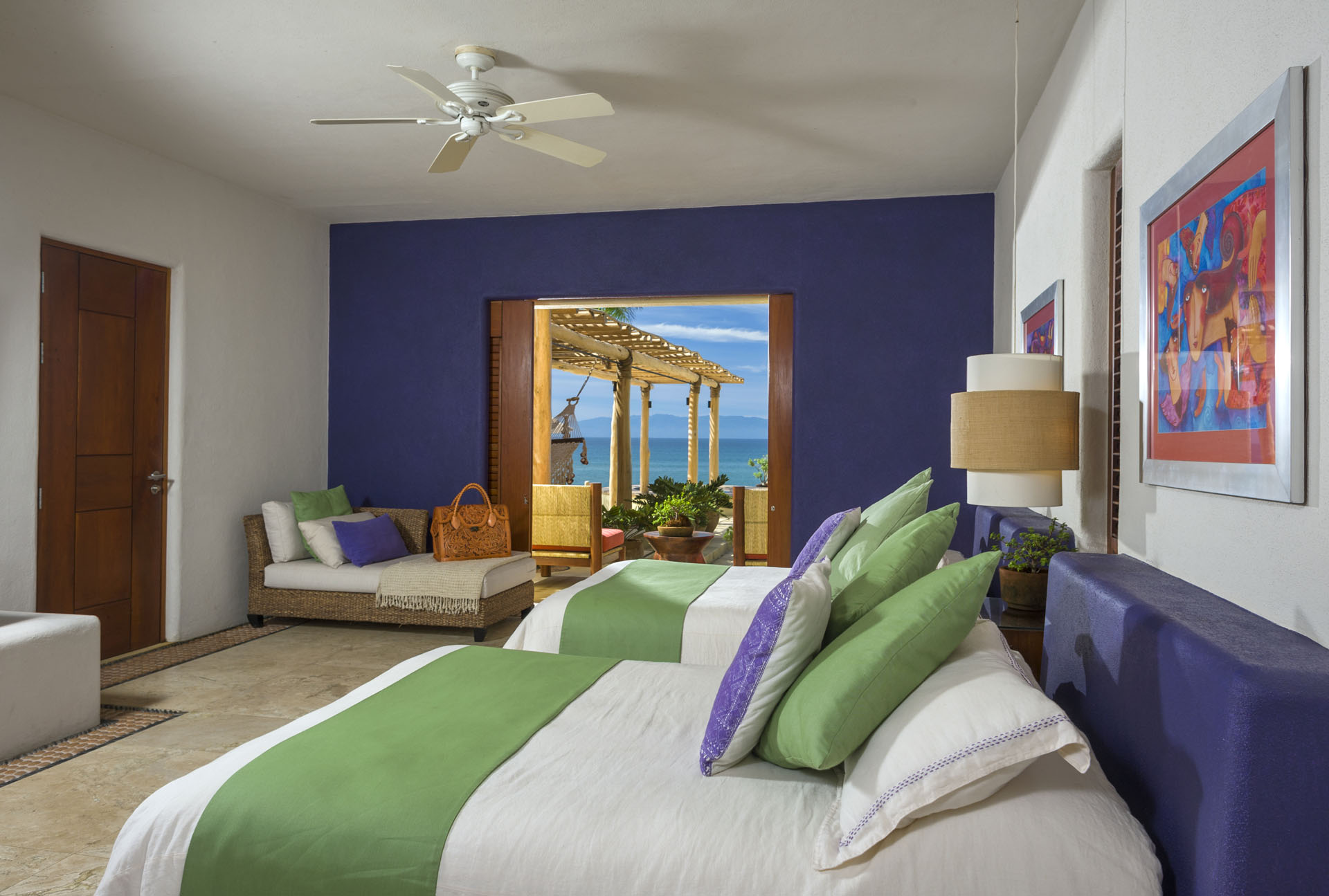 Each bedroom in Casa La Caleta ensures a restful stay. Not only are they climate-controlled, but they’re also adorned with top-tier furnishings and linens. Ensuite bathrooms, standalone showers, and private balconies enhance the experience, offering views of the garden or ocean.