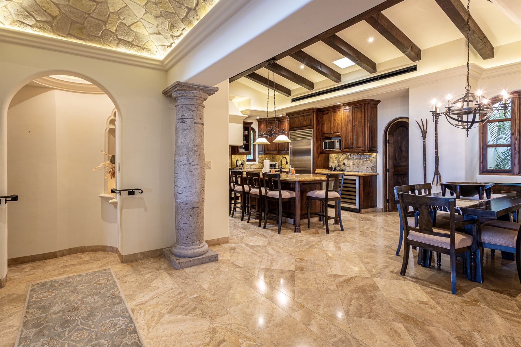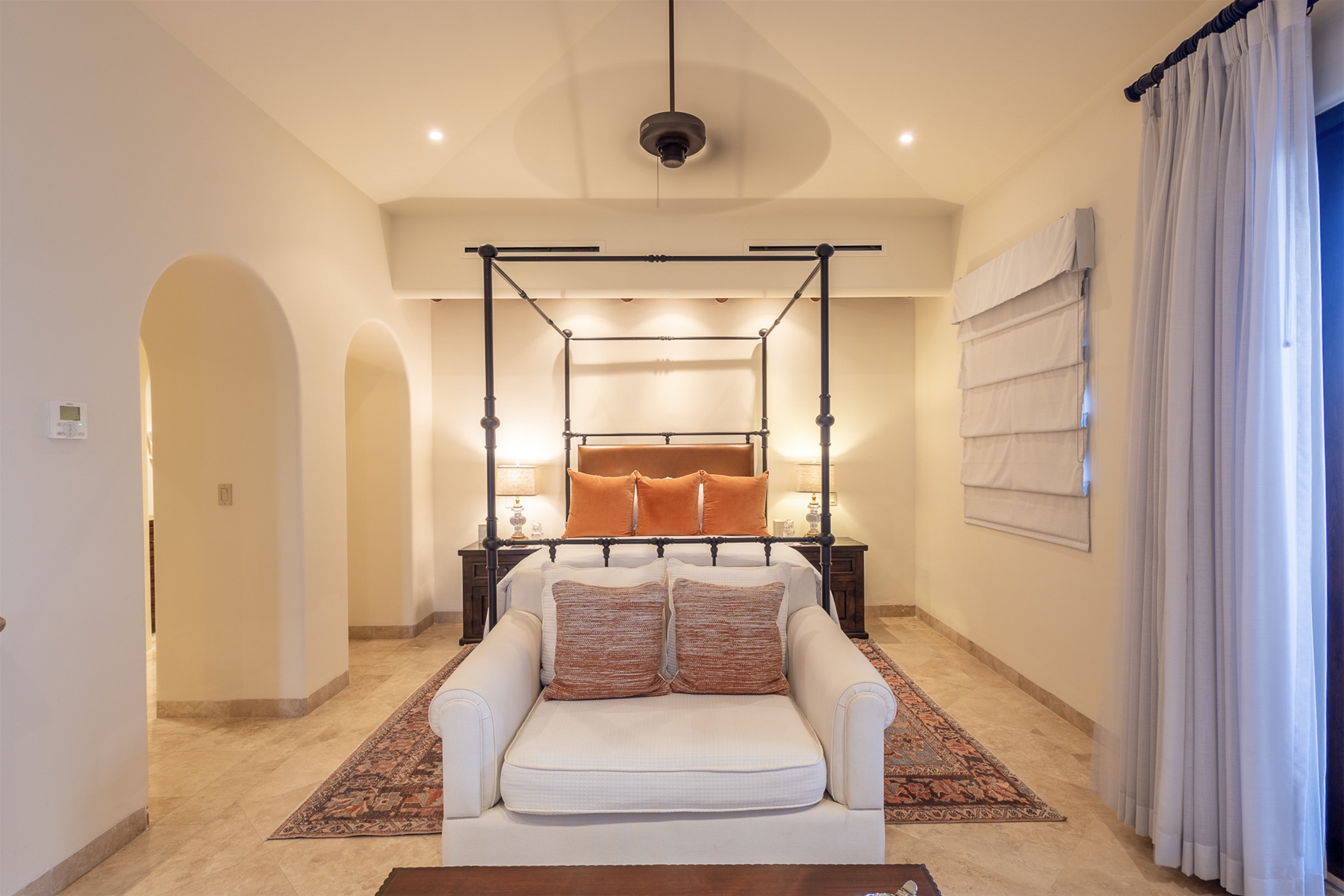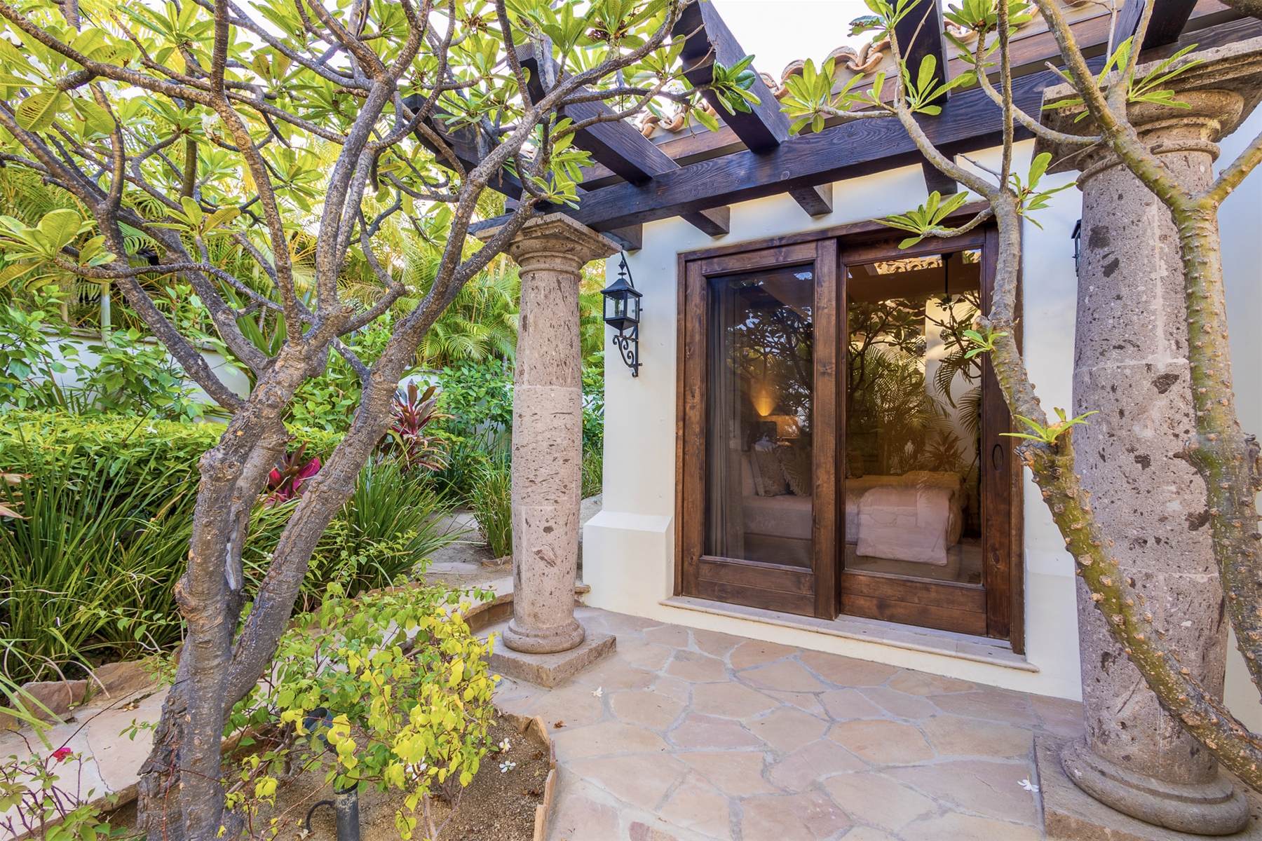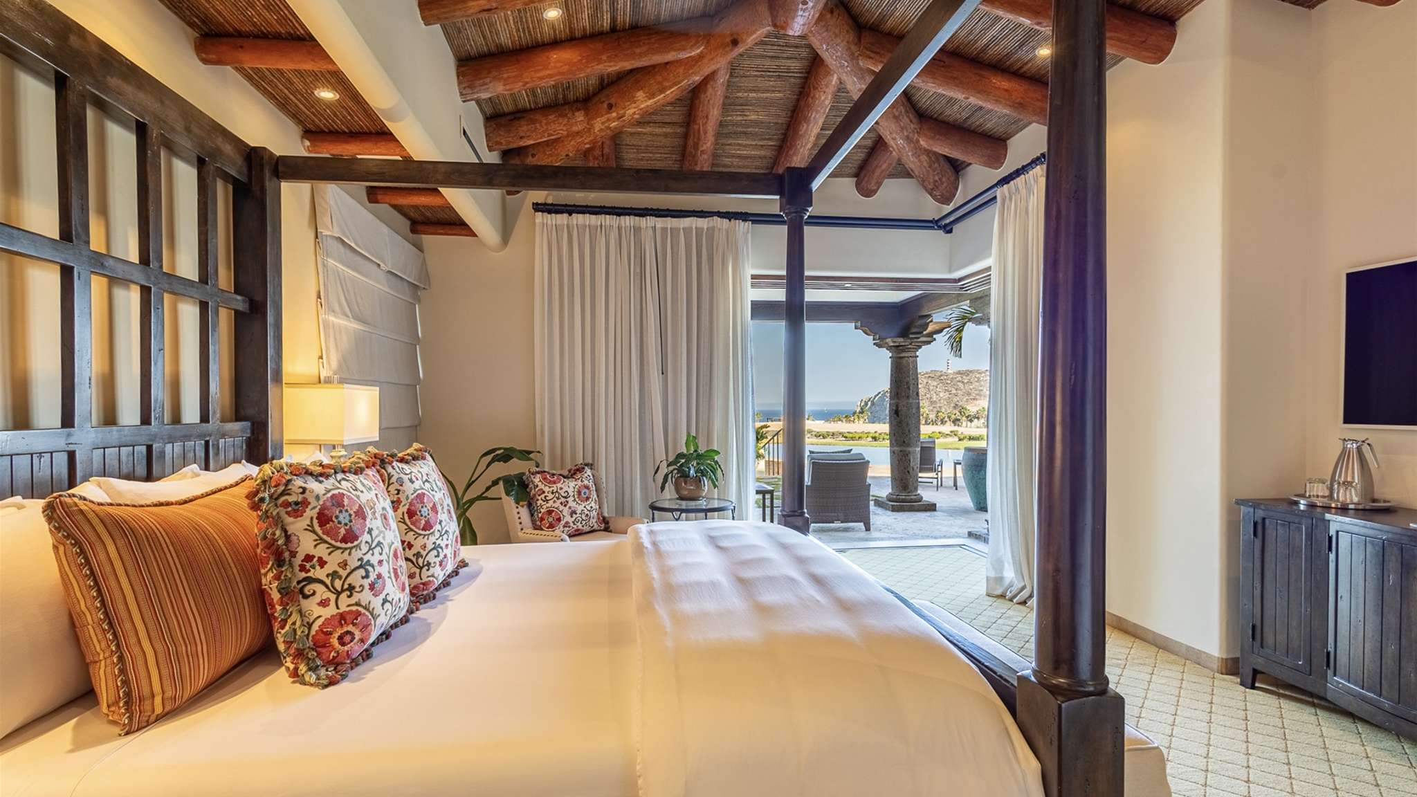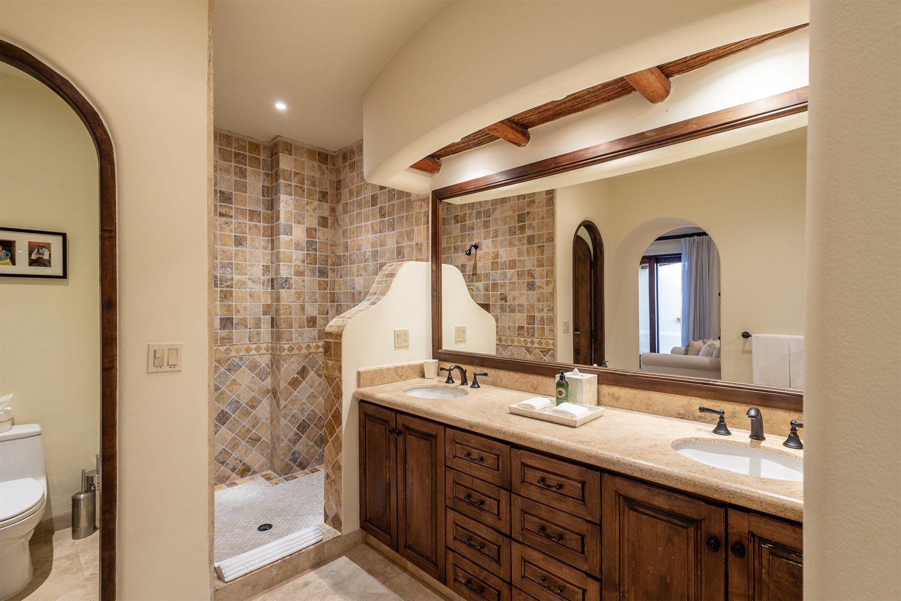Located in the double-gated community of Cabo del Sol, Casa Lomboy is as close to the beach as you can get, just a 2-minute walk away. The tasteful decorations throughout the villa enhance its charm, and each bedroom has a private pergola, perfect for reading and taking siestas. All bedrooms have en-suite bathrooms with travertine and modern fixtures.