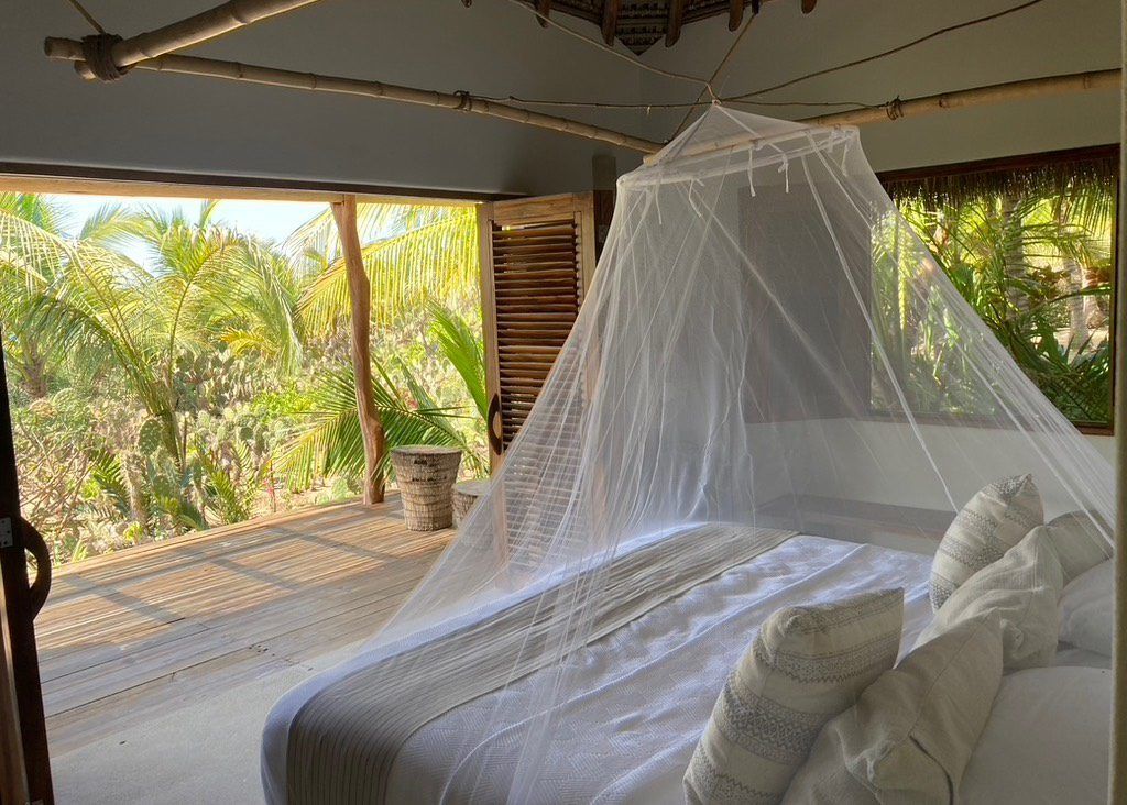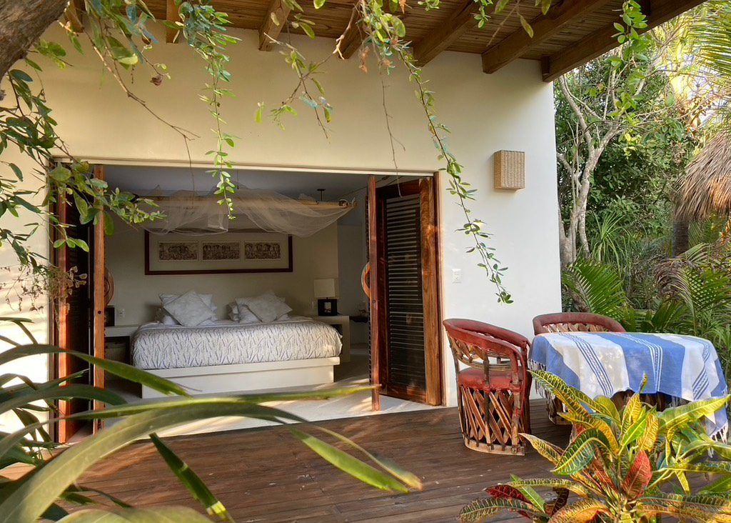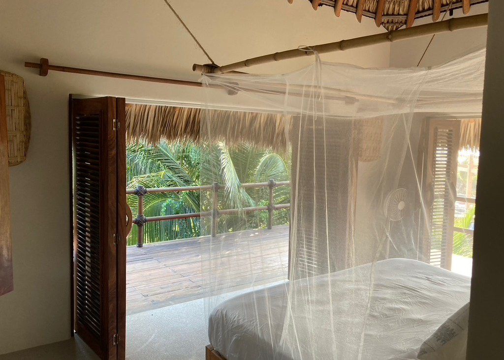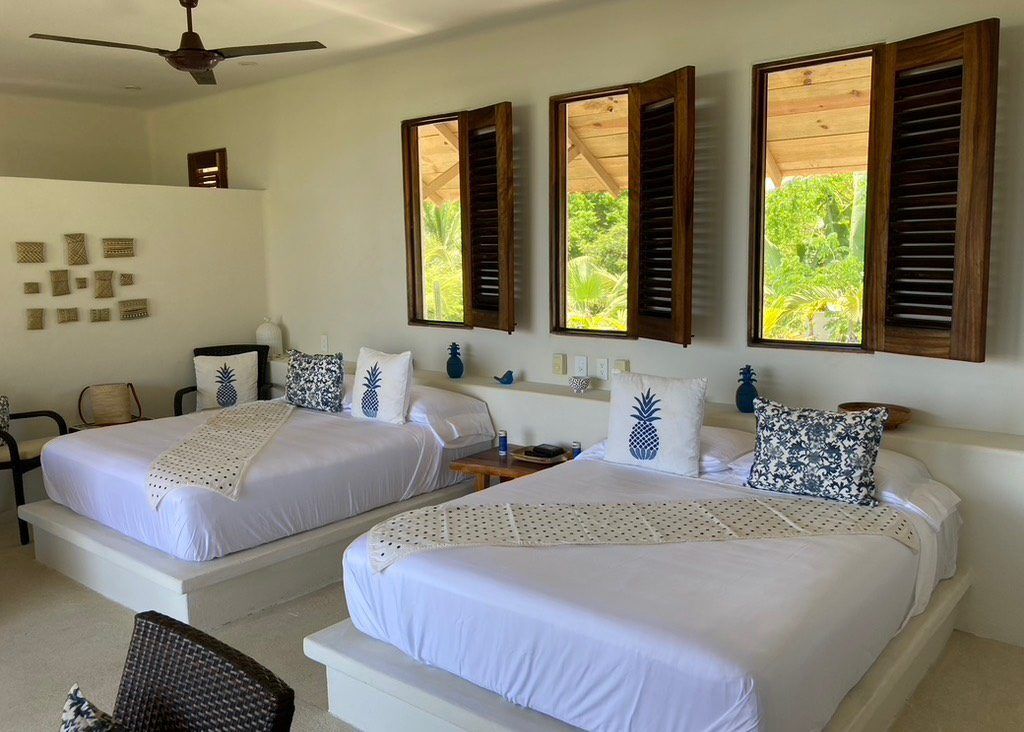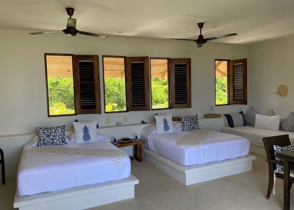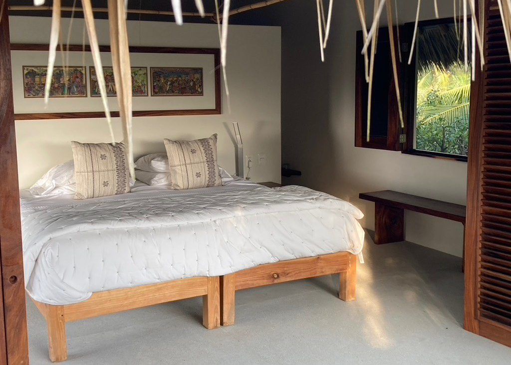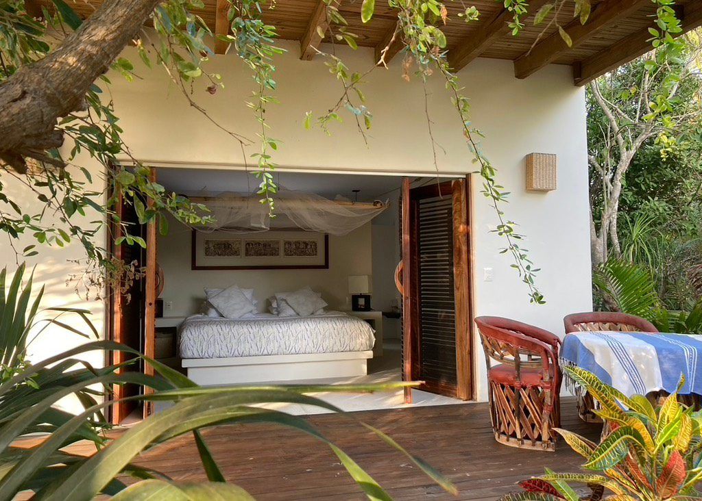 Casa Los Guajes offers five distinct bungalow suites. Each brims with luxury amenities typical of an upscale beach house. Whether renting a bungalow or the entire property, guests are treated to lavish beds, premium linens, and terraces showcasing breathtaking jungle and sea views.