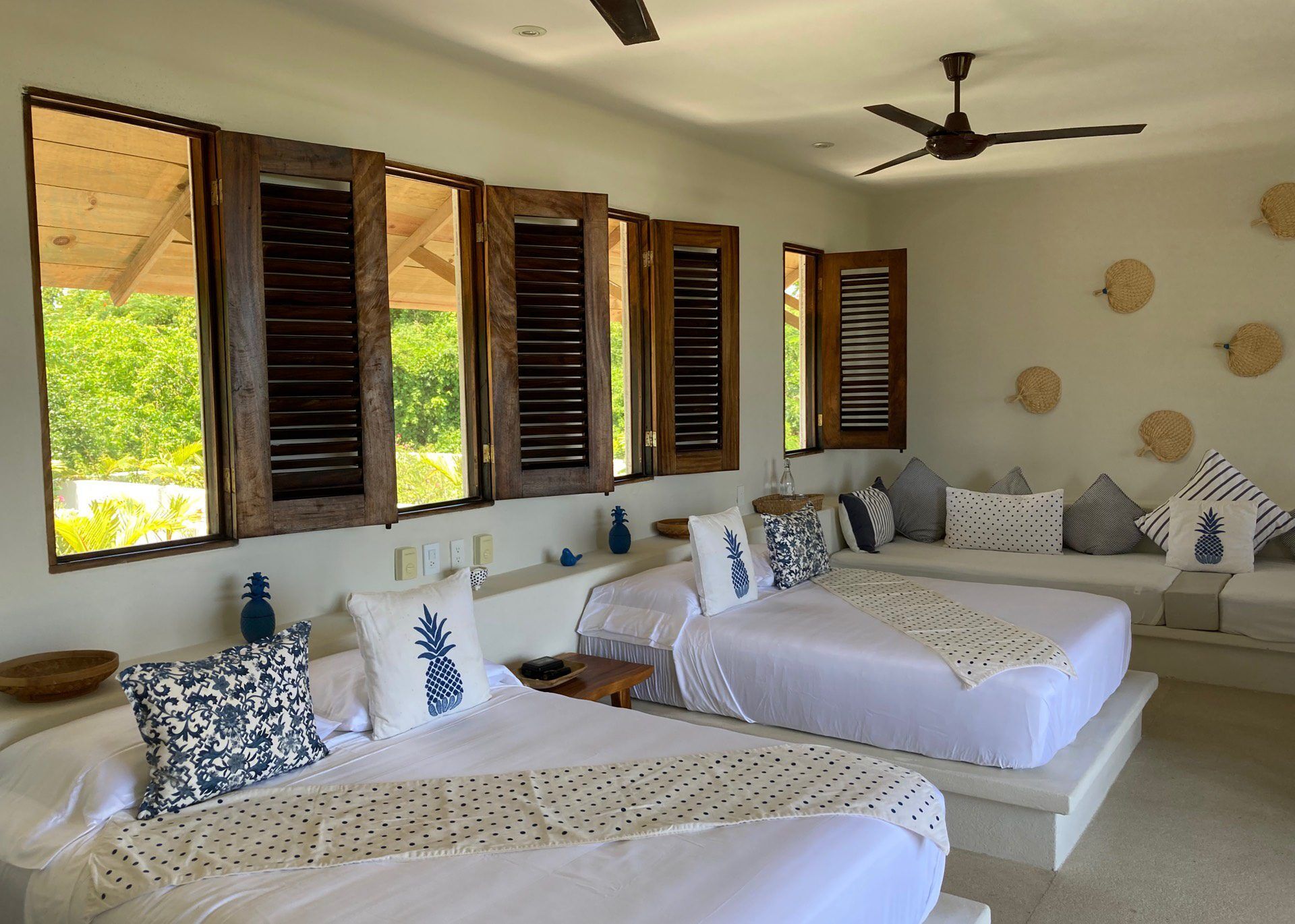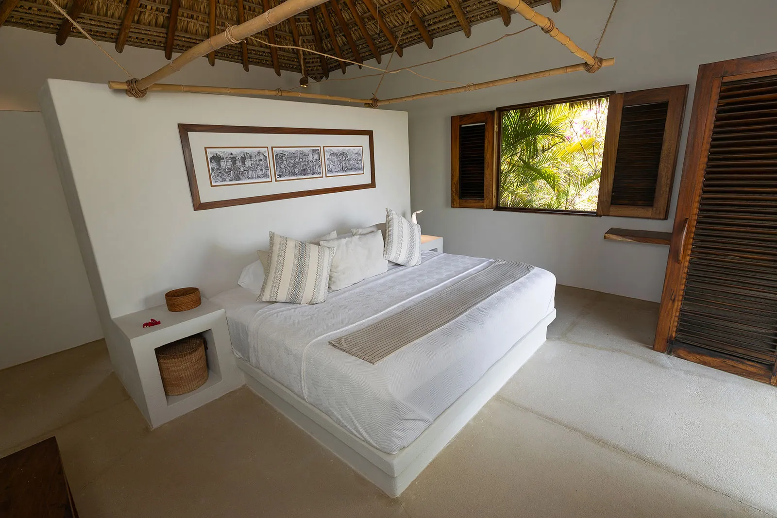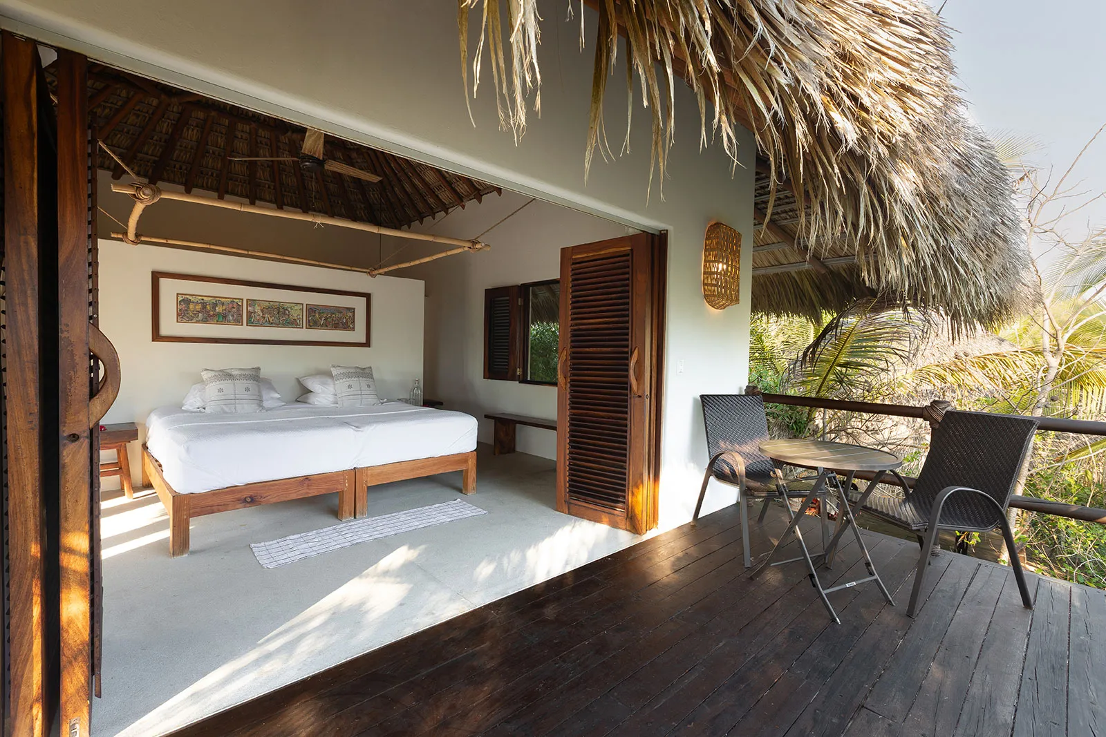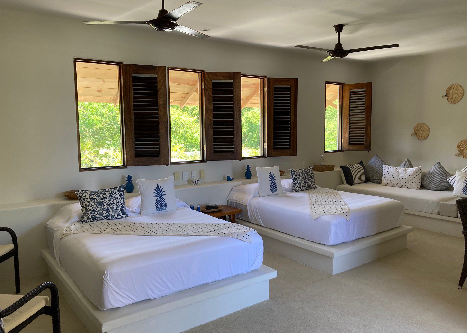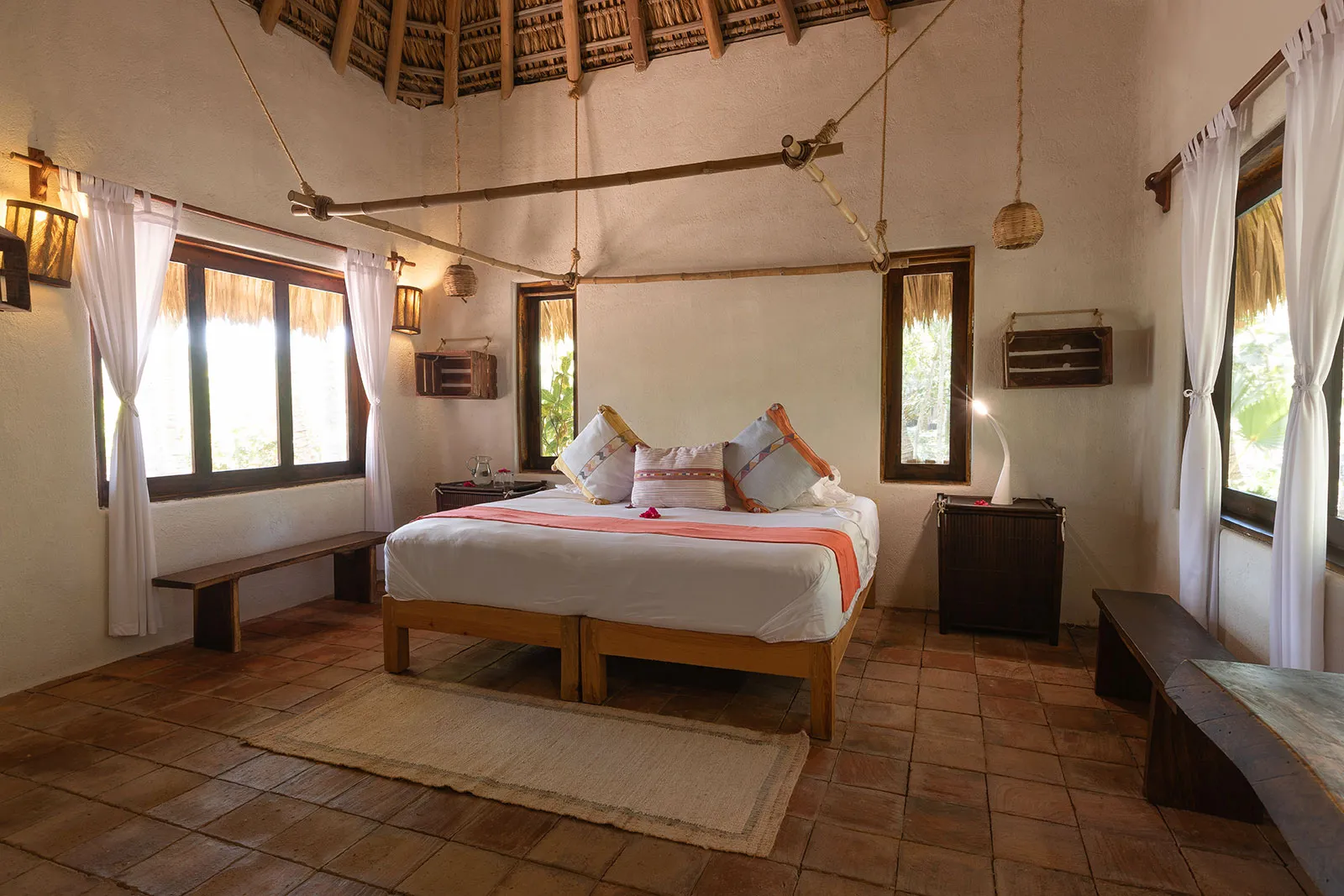 Casa Los Guajes offers five distinct bungalow suites. Each brims with luxury amenities typical of an upscale beach house. Whether renting a bungalow or the entire property, guests are treated to lavish beds, premium linens, and terraces showcasing breathtaking jungle and sea views.