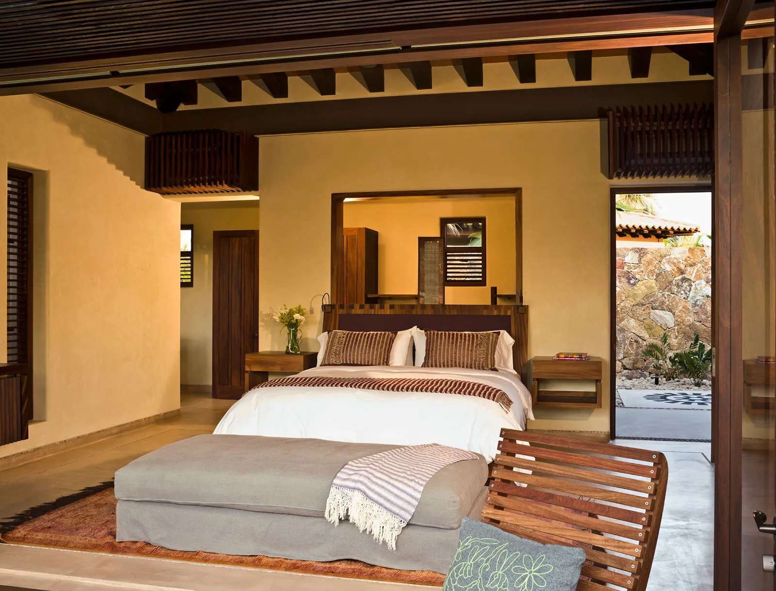 Designed in natural hues and textures, Casa Majani minimizes the boundaries between indoors and out. Organic materials and soft, earthy tones echo the surrounding environment, while subtle Asian influences blend with colorful local identity to create a refined yet soulful aesthetic. The result is a villa that feels both artfully curated and deeply connected to its setting.