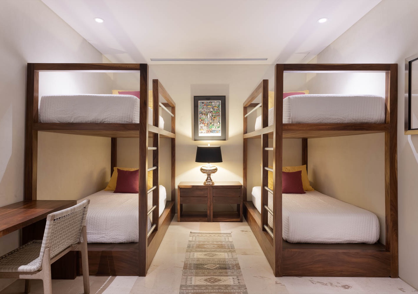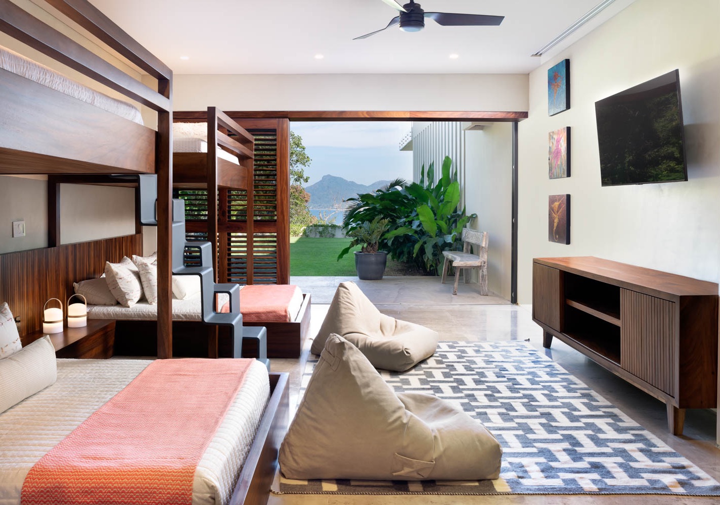 Designed for coziness, this room comes with a double bunk bed with individual sleeping spaces. A bathroom with a separate shower ensures comfort, and guests can enjoy entertainment via a television, with air conditioning and a ceiling fan for added relaxation.
