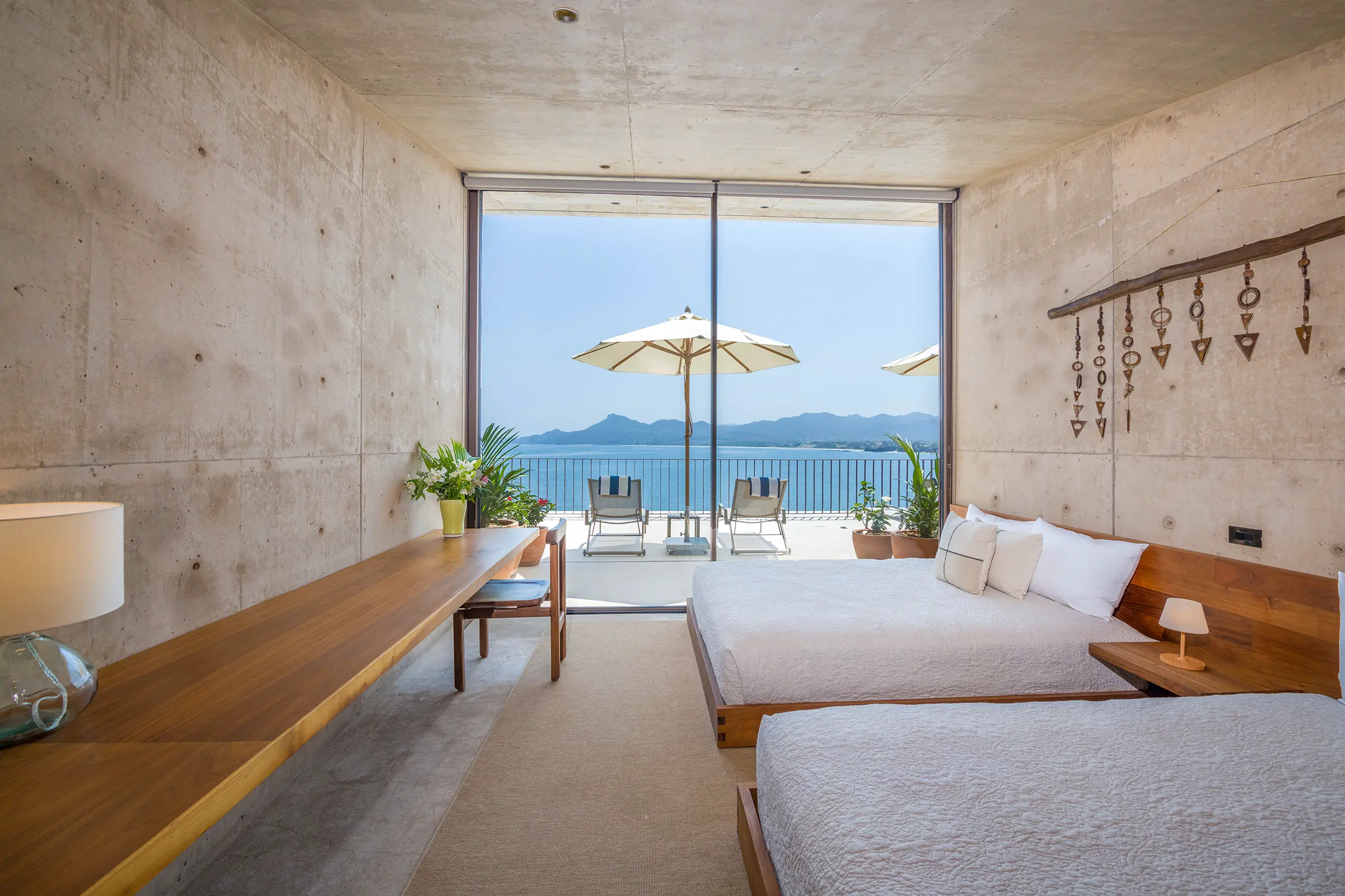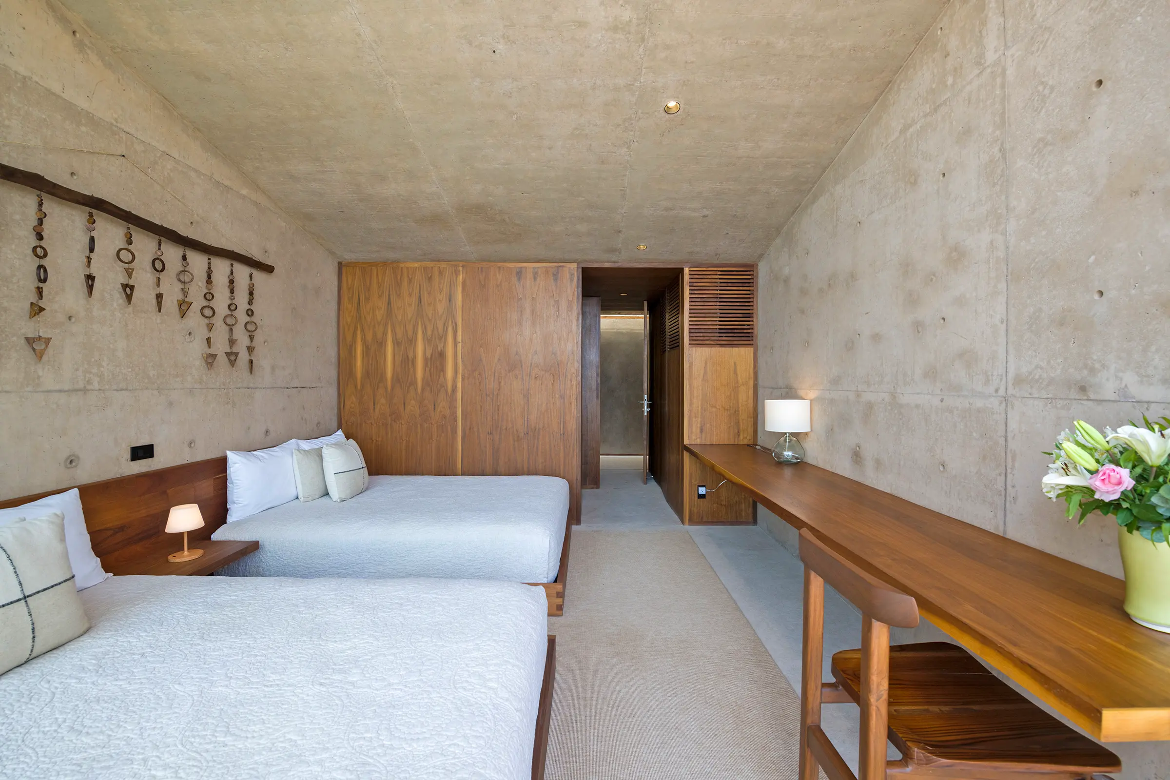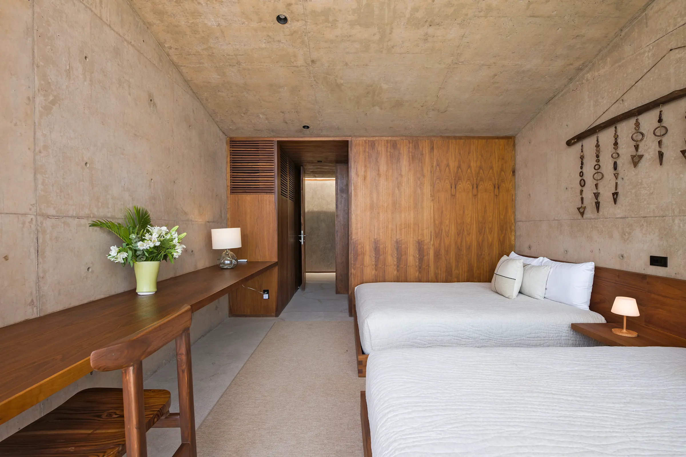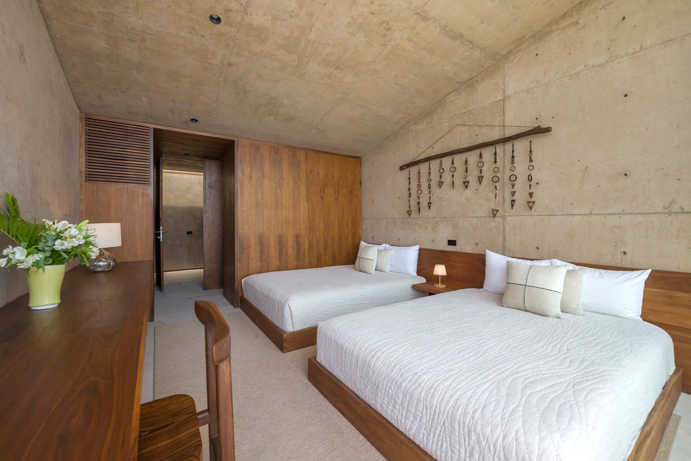 This room is perfect for guests. It has two queen-size beds and an en-suite bathroom. The soothing ocean views create a calm and restful space.