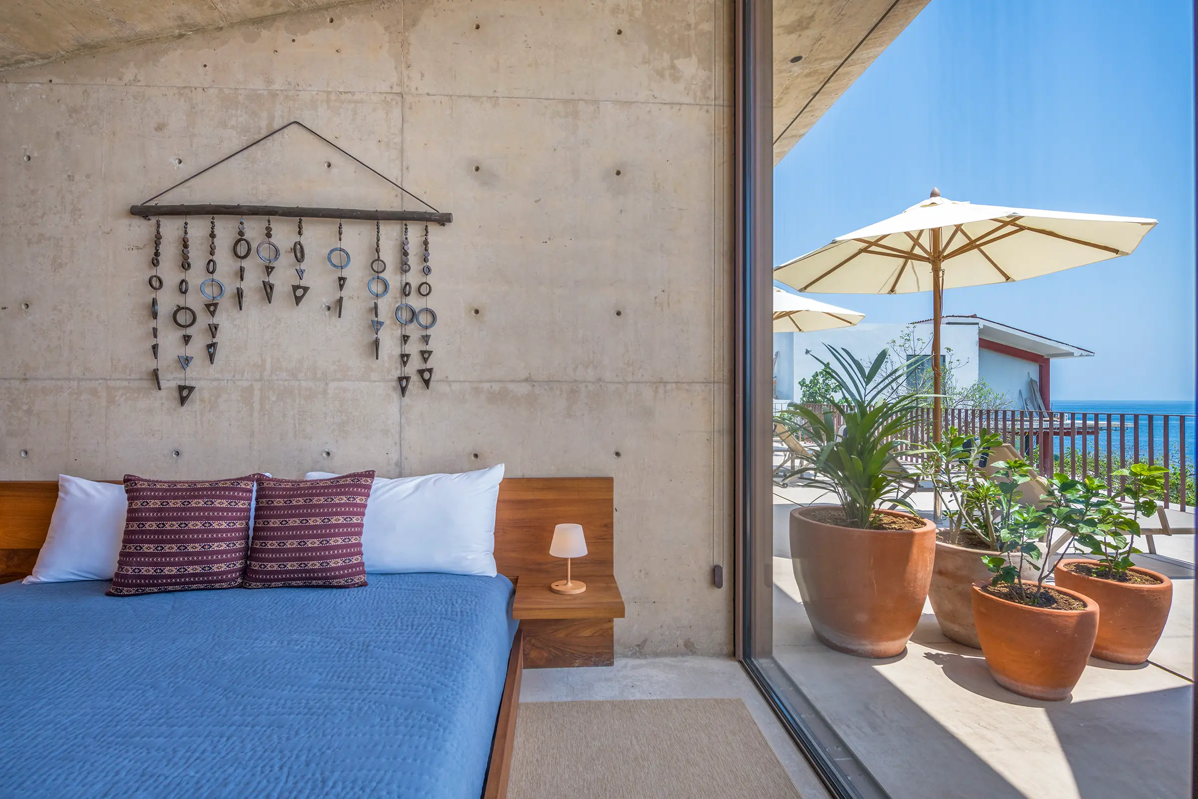 This room offers a king-size bed with an en-suite bathroom. Enjoy peaceful moments with stunning ocean views, providing the perfect setting for relaxation.