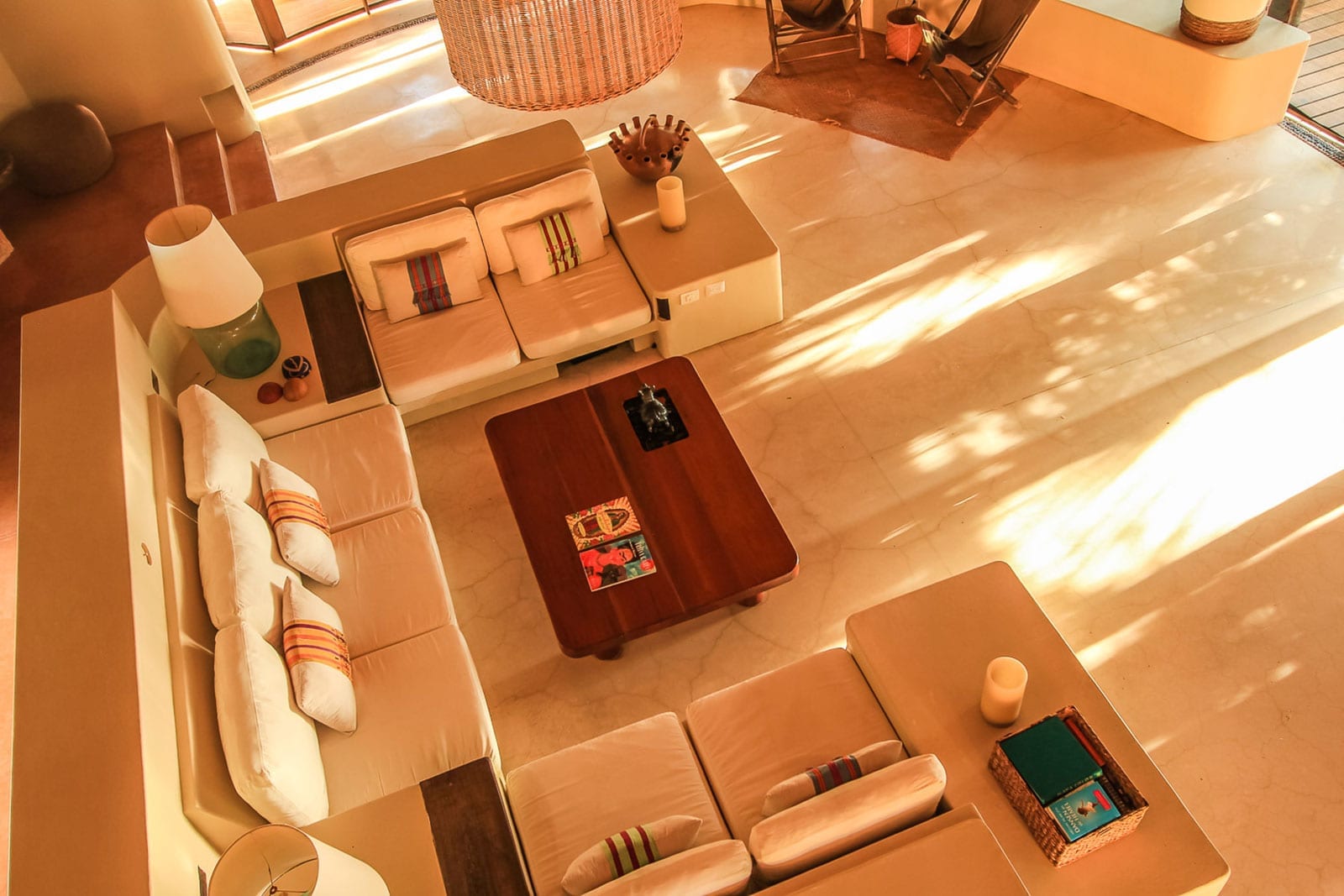 Daily life here naturally orbits around the central living area, where a large sofa invites long conversations, table games, or film nights on a 120″ cinema screen, accompanied by music or the sound of the sea. Dining is a focal point of the experience, with a full-board service that emphasizes fresh ingredients and a Mexican-European culinary mix, served wherever the mood takes you—whether in the formal dining room, on the rooftop, on the terraces and decking, or directly on the beach. Excursions, massage, sailing, snorkeling, and a cocktail bar are part of the rhythm of a stay, supported by staff attentive to personal preferences.