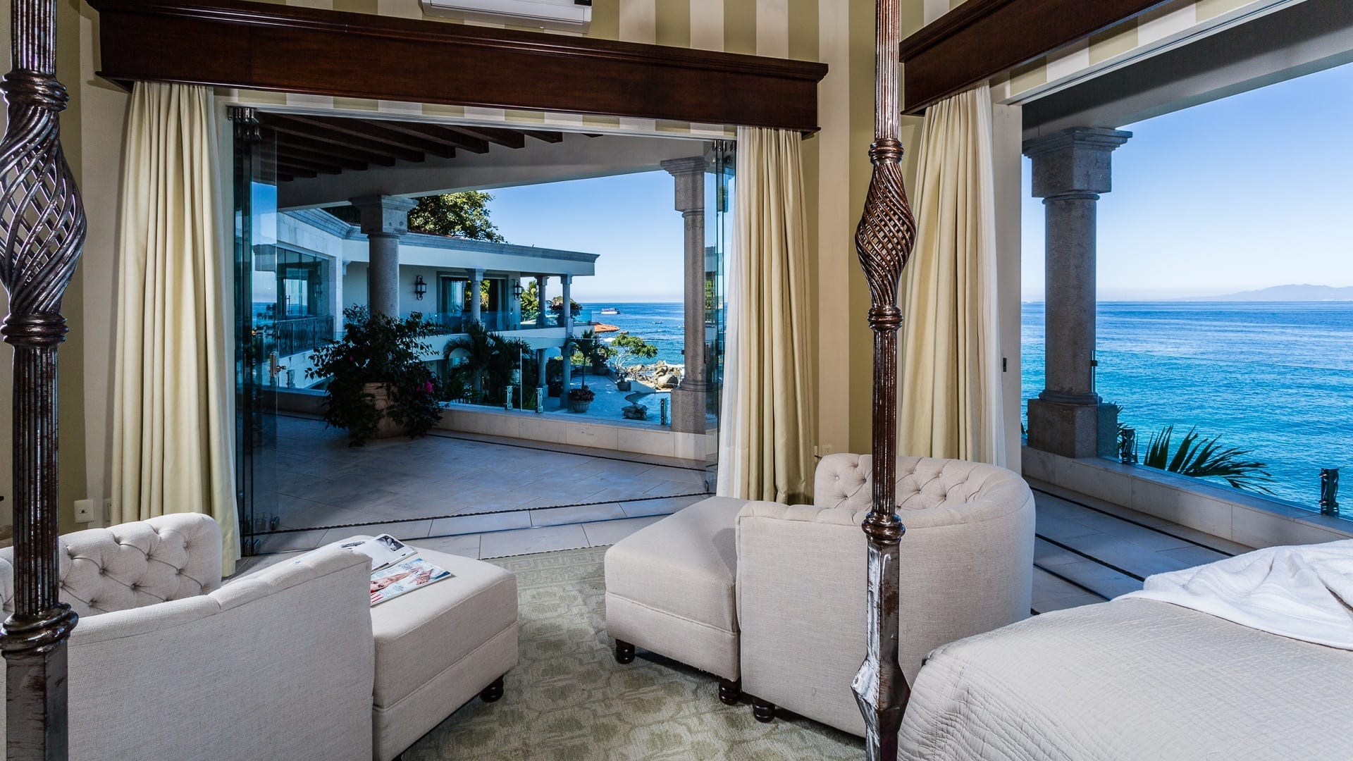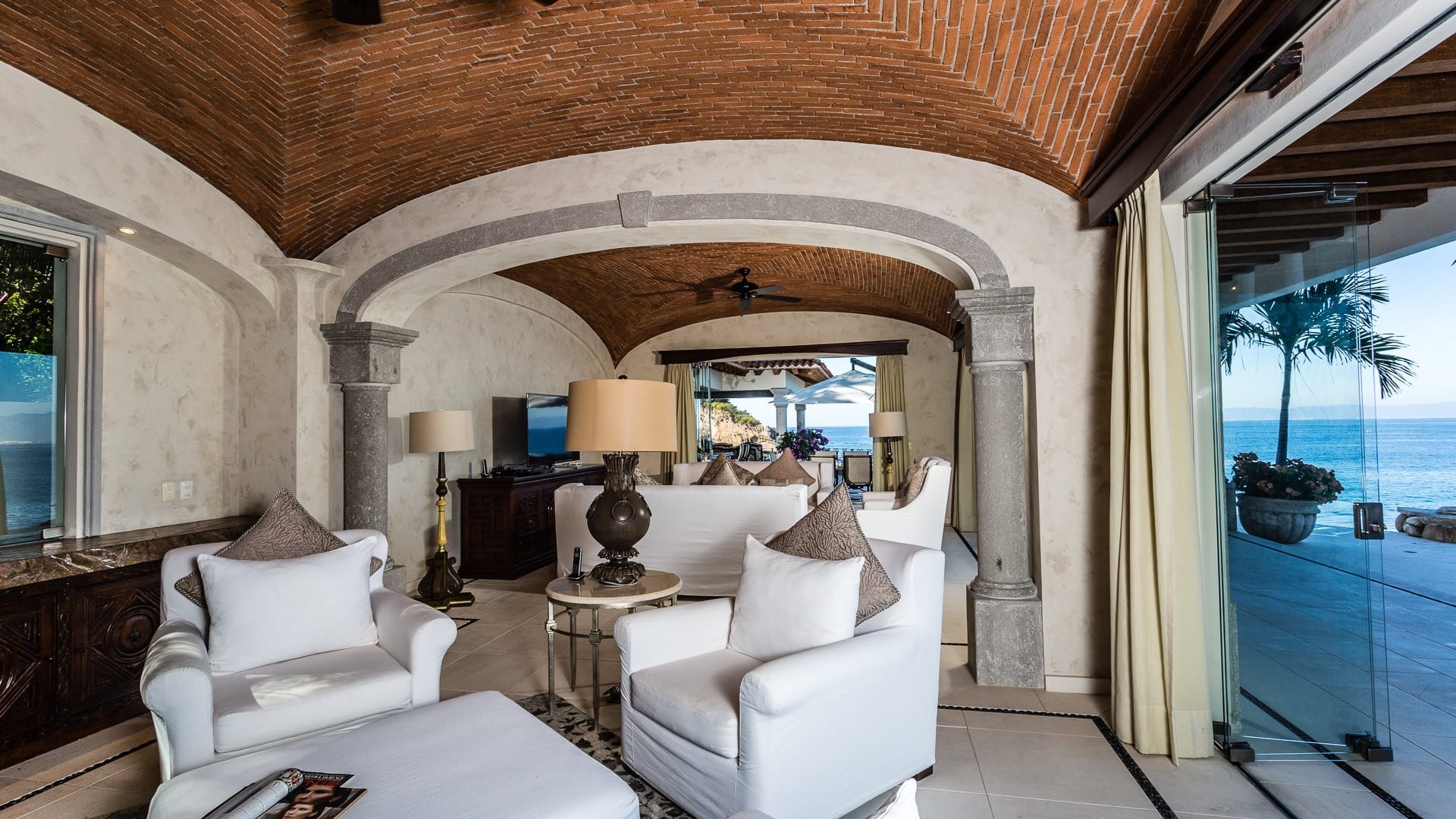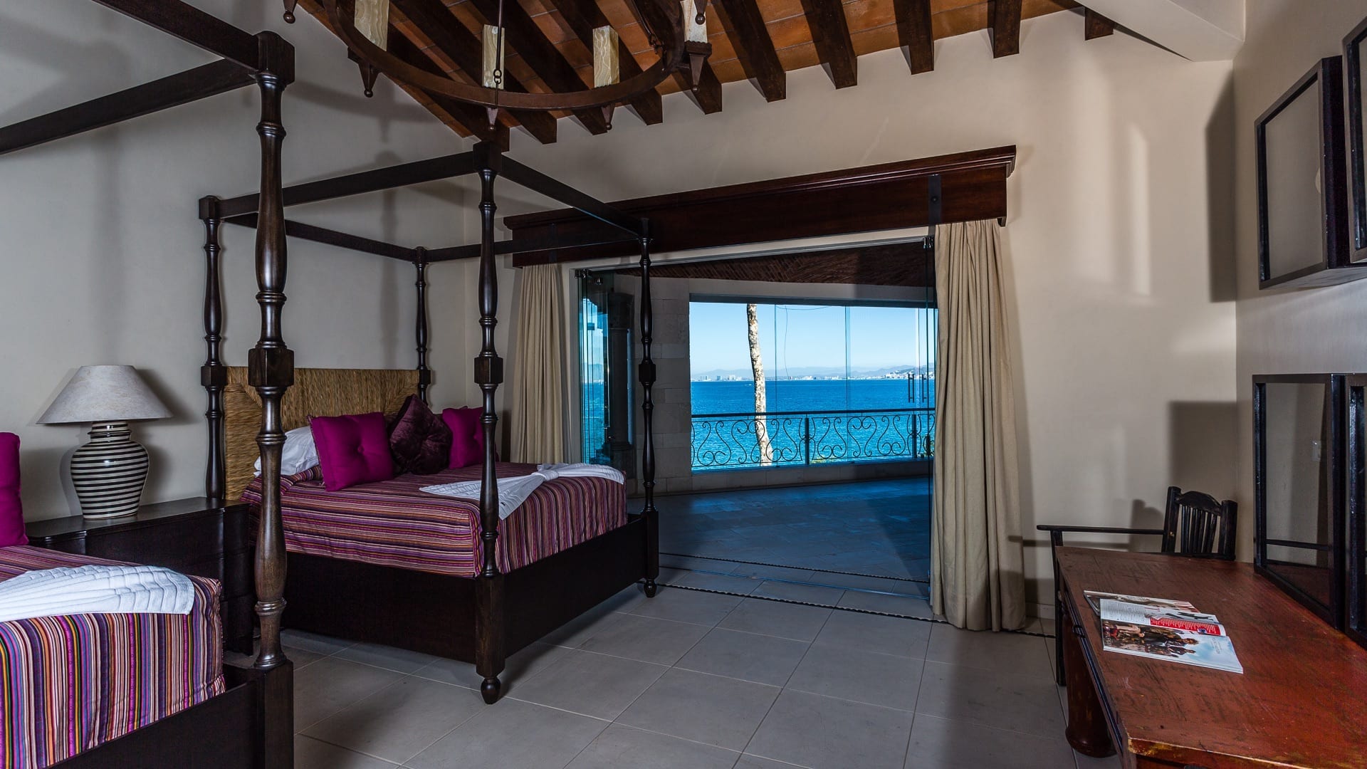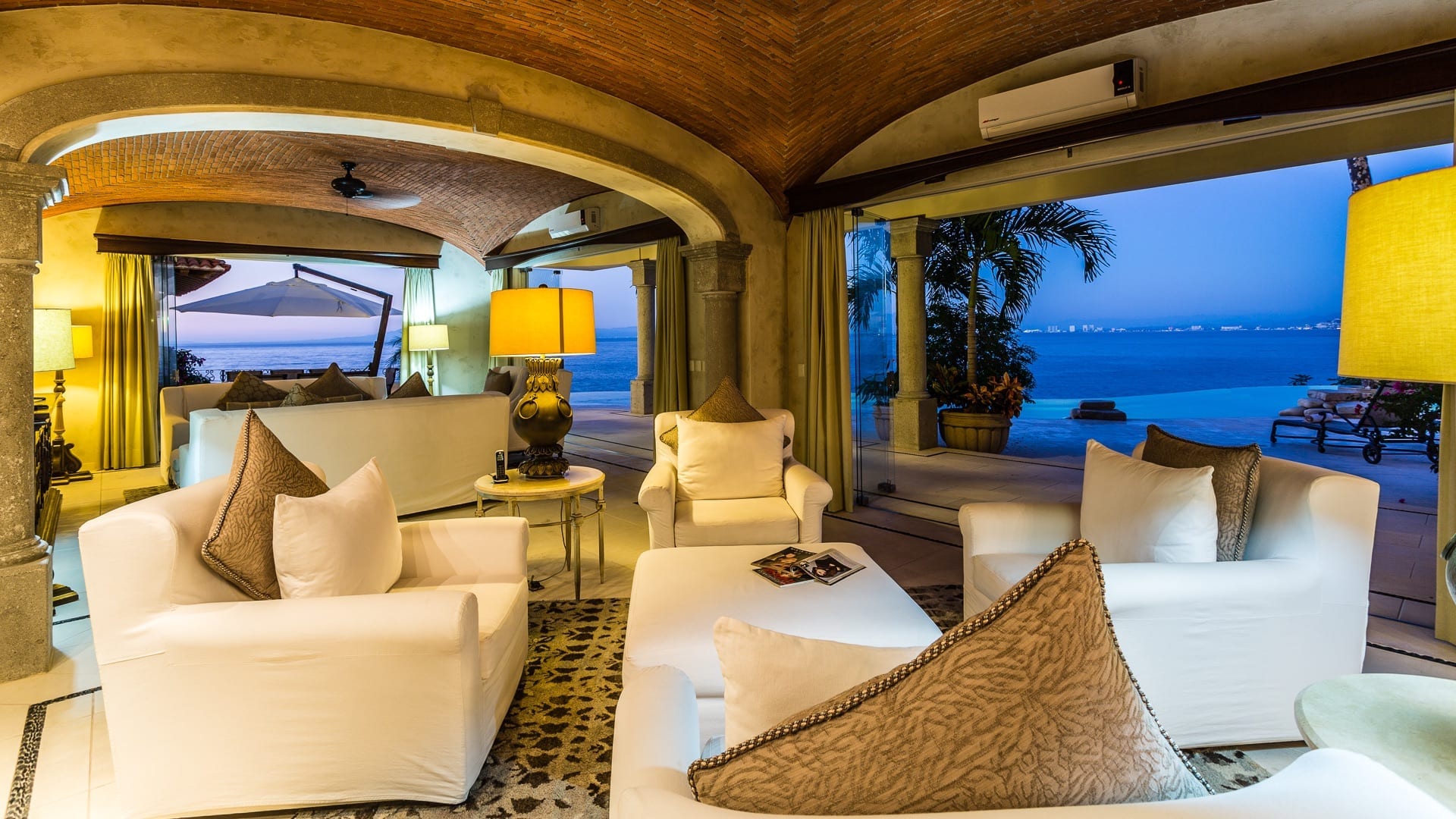 The formal dining can graciously host twelve. Furthermore, there’s alfresco dining and a kitchen breakfast bar, accommodating over 24 guests. Start your day on the main terrace, embracing the vast expanses of Puerto Vallarta. Later, the infinity pool, poised over the ocean, invites relaxation, especially with its adjoining bar and lounge chairs.