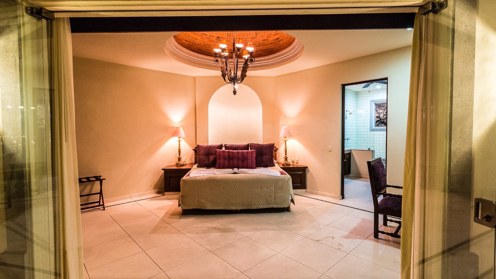 King bed, Ensuite, Dual Vanity, TV, AC, and Terrace.