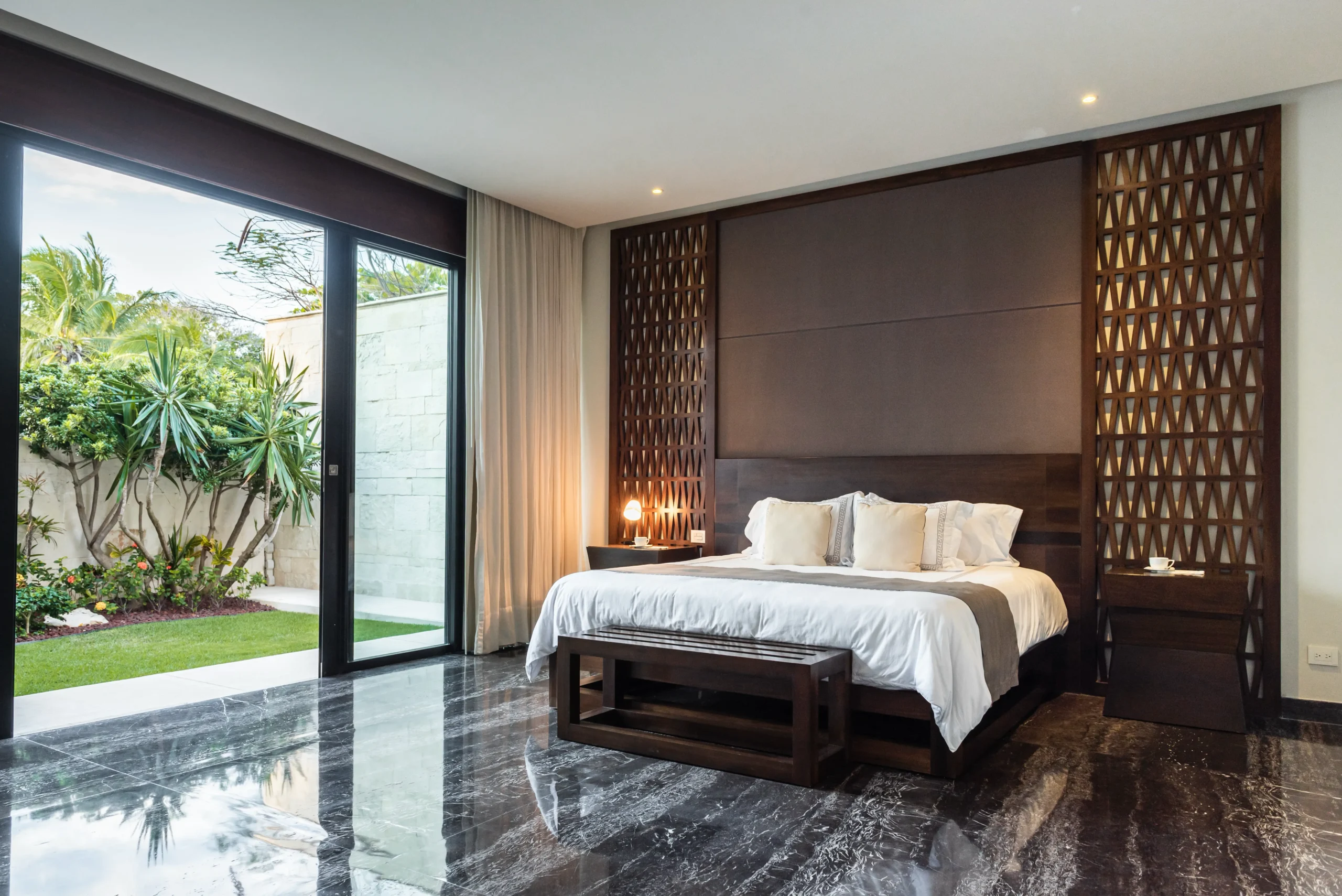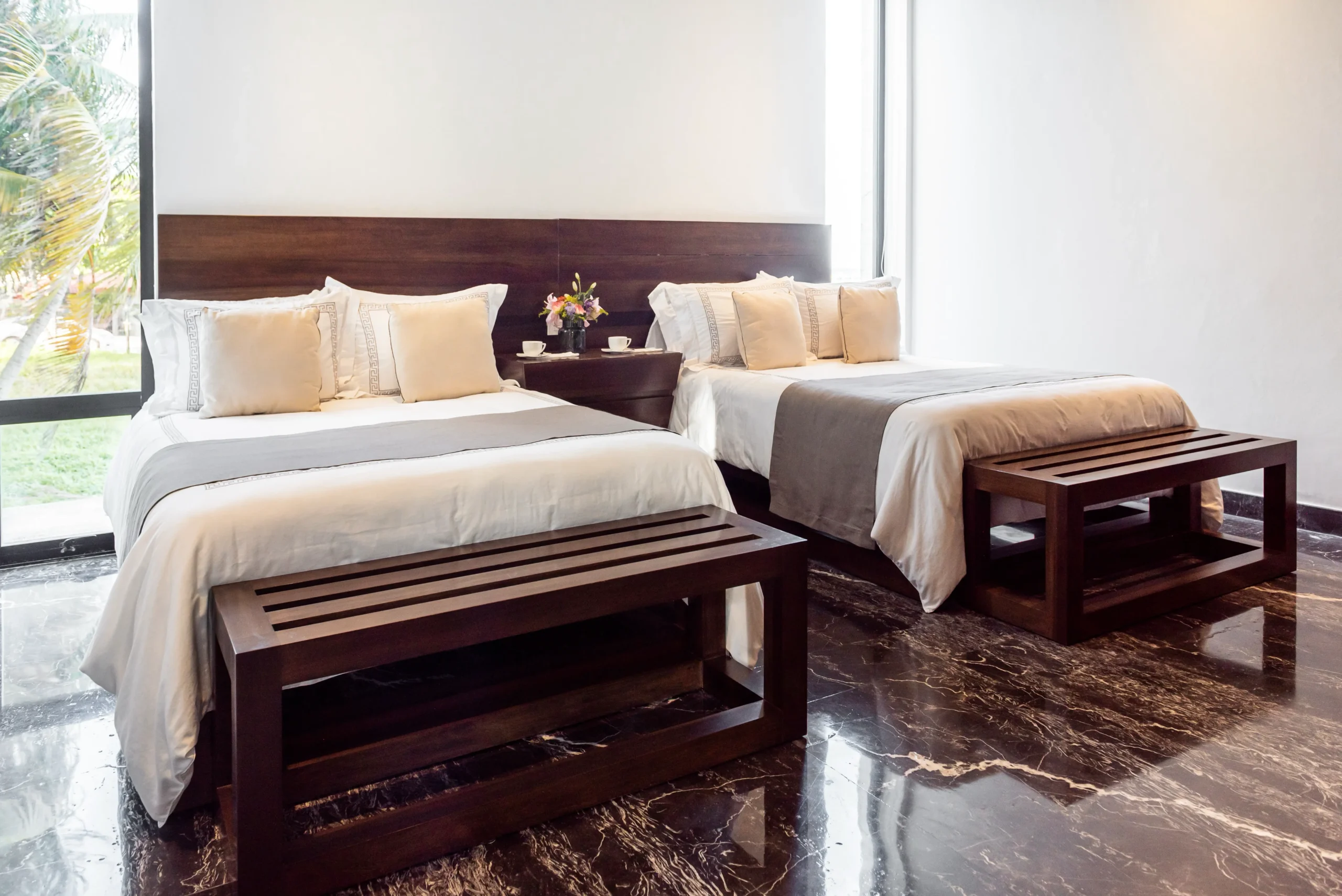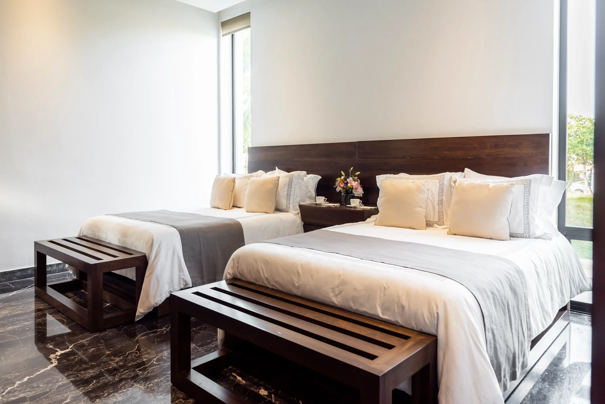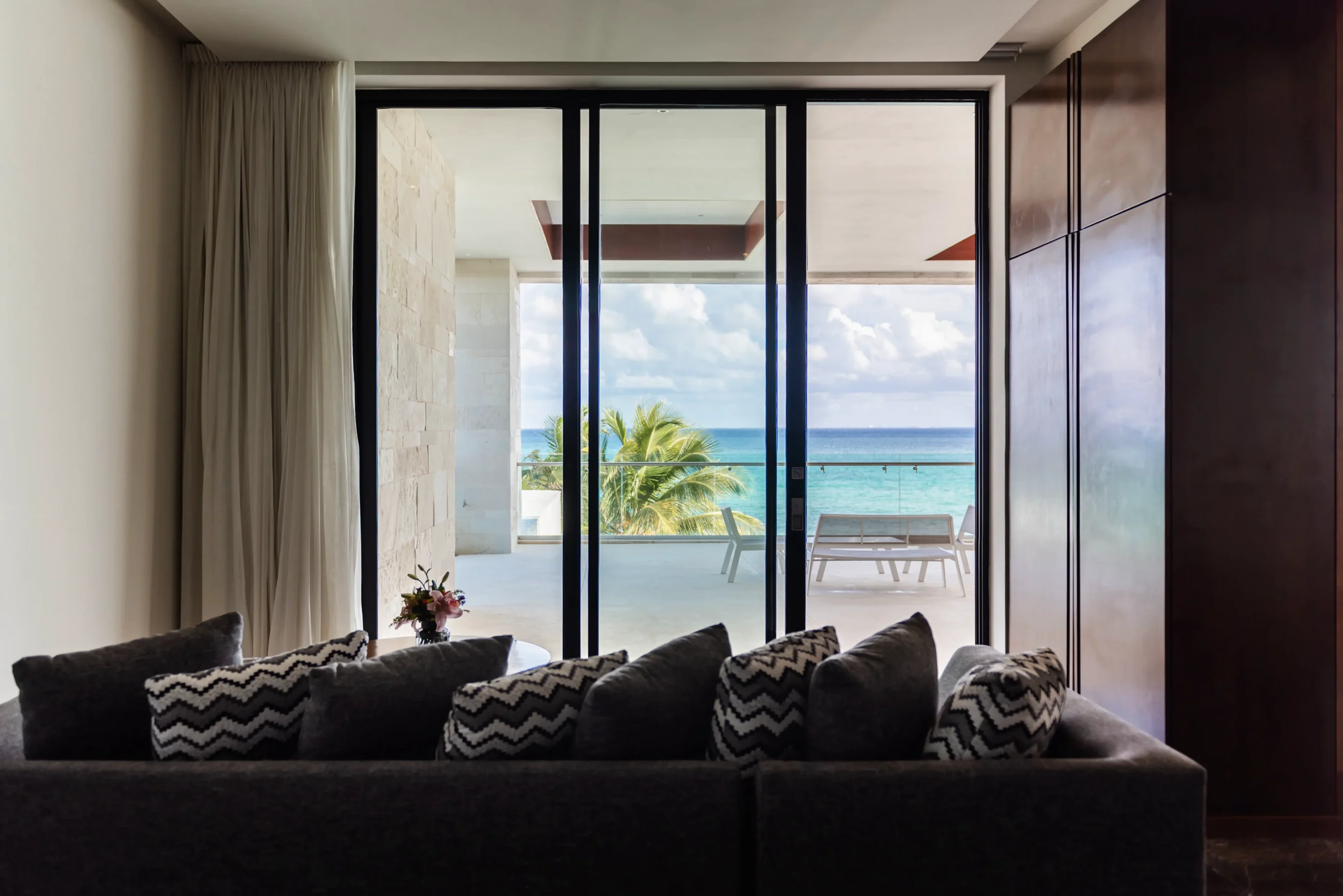Featuring two full beds, this suite opens directly to the beach and poolside, offering a serene connection to the outdoors and easy access for a dip in the ocean.