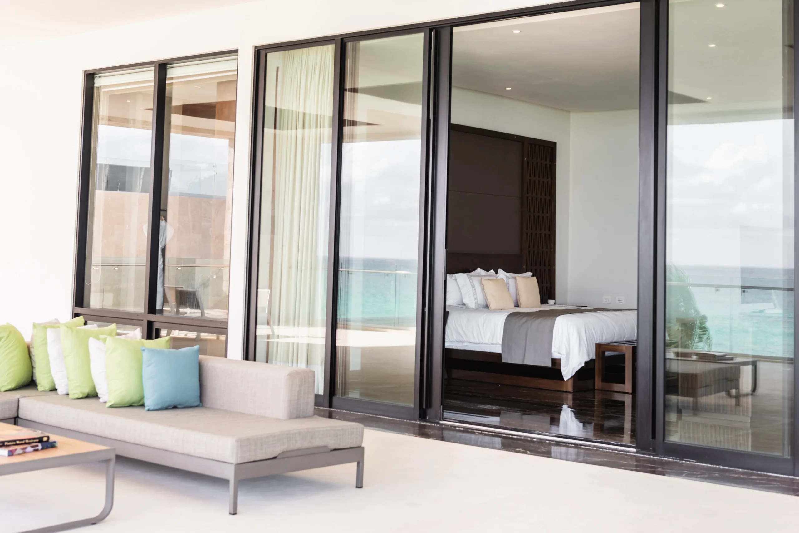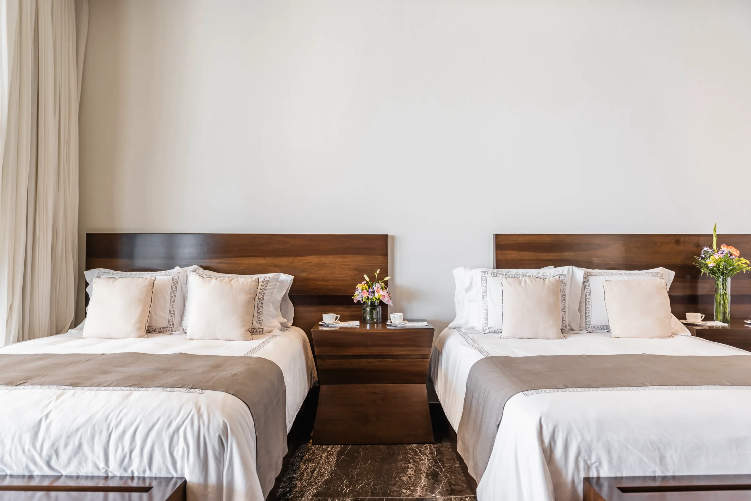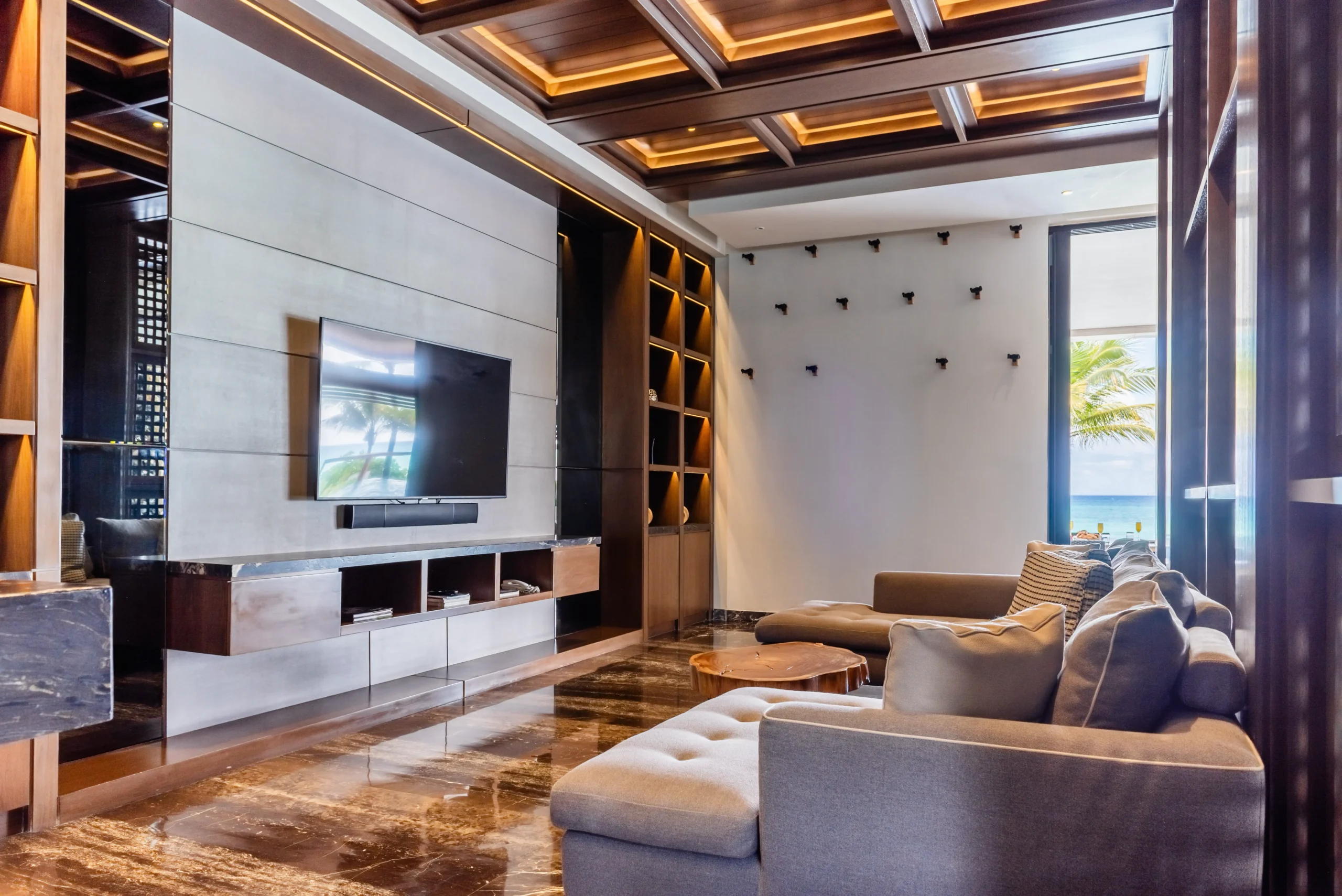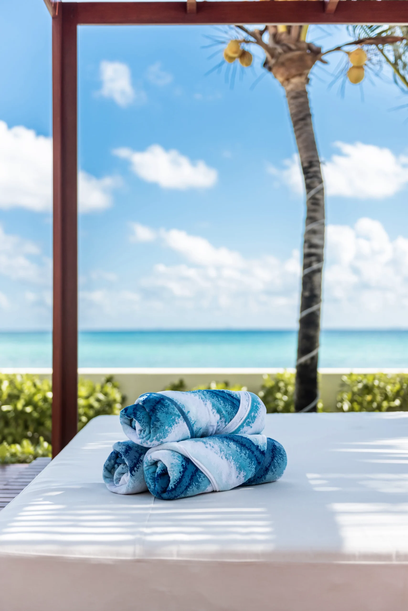 Featuring two full beds, this suite opens directly to the beach and poolside, offering a serene connection to the outdoors and easy access for a dip in the ocean.