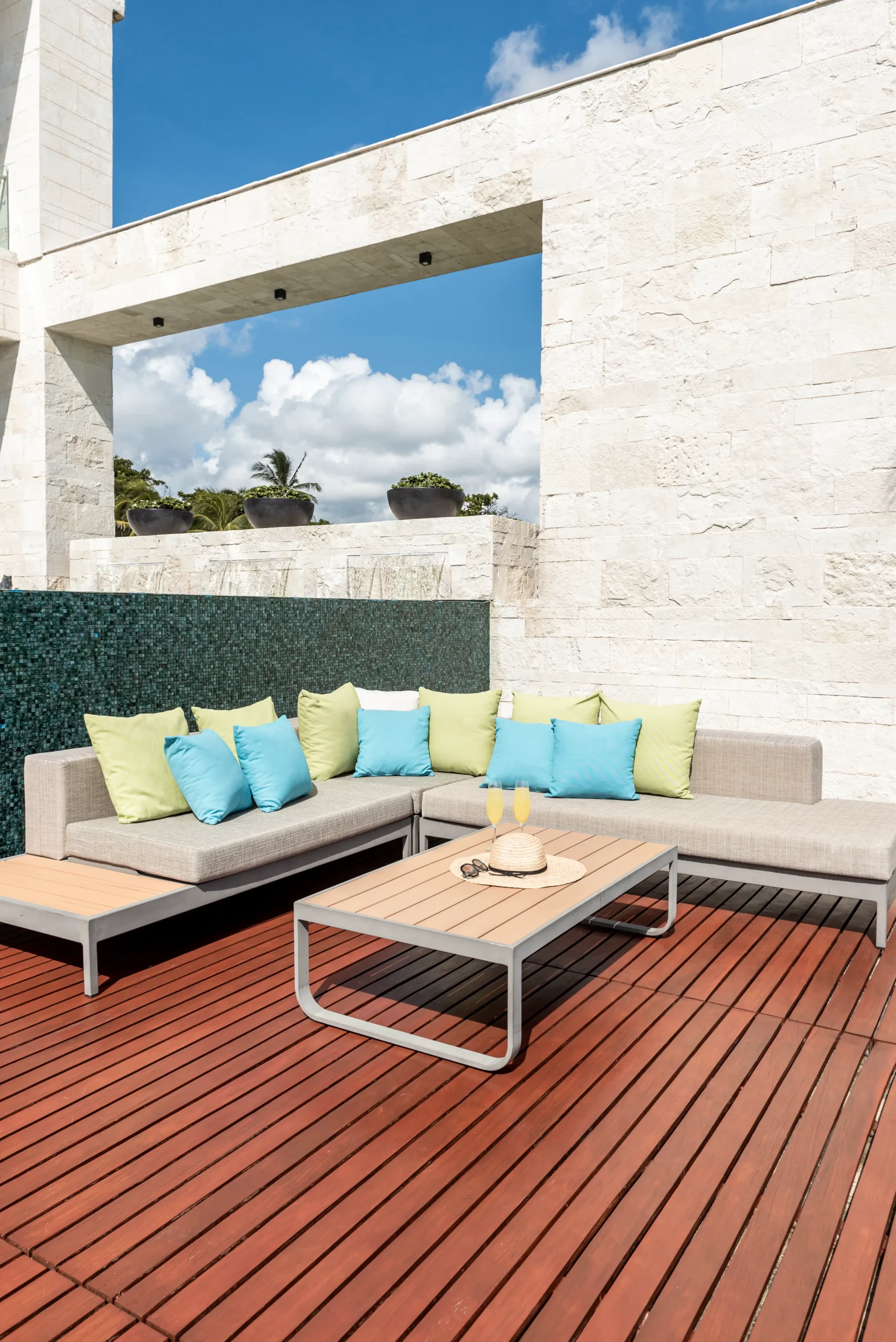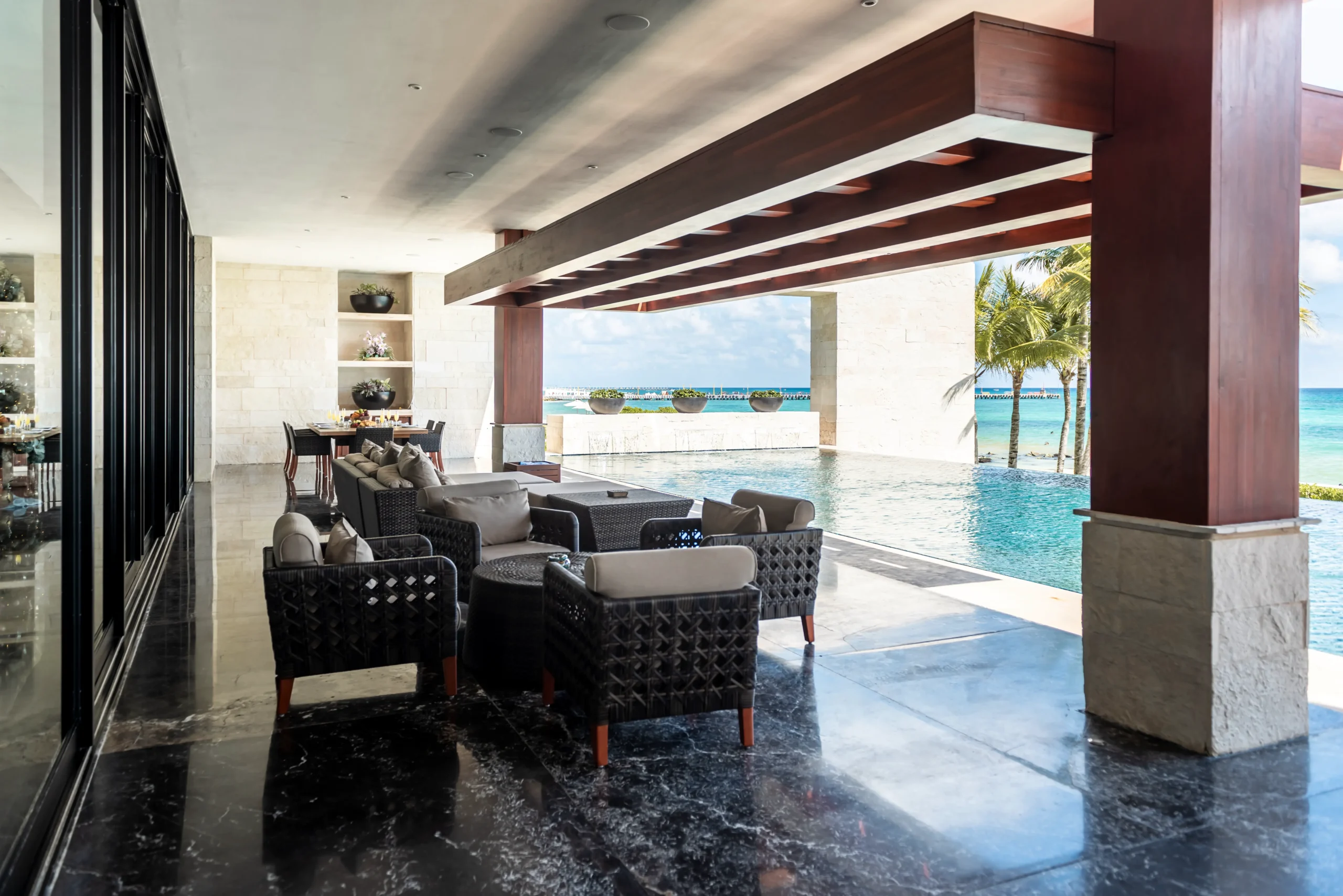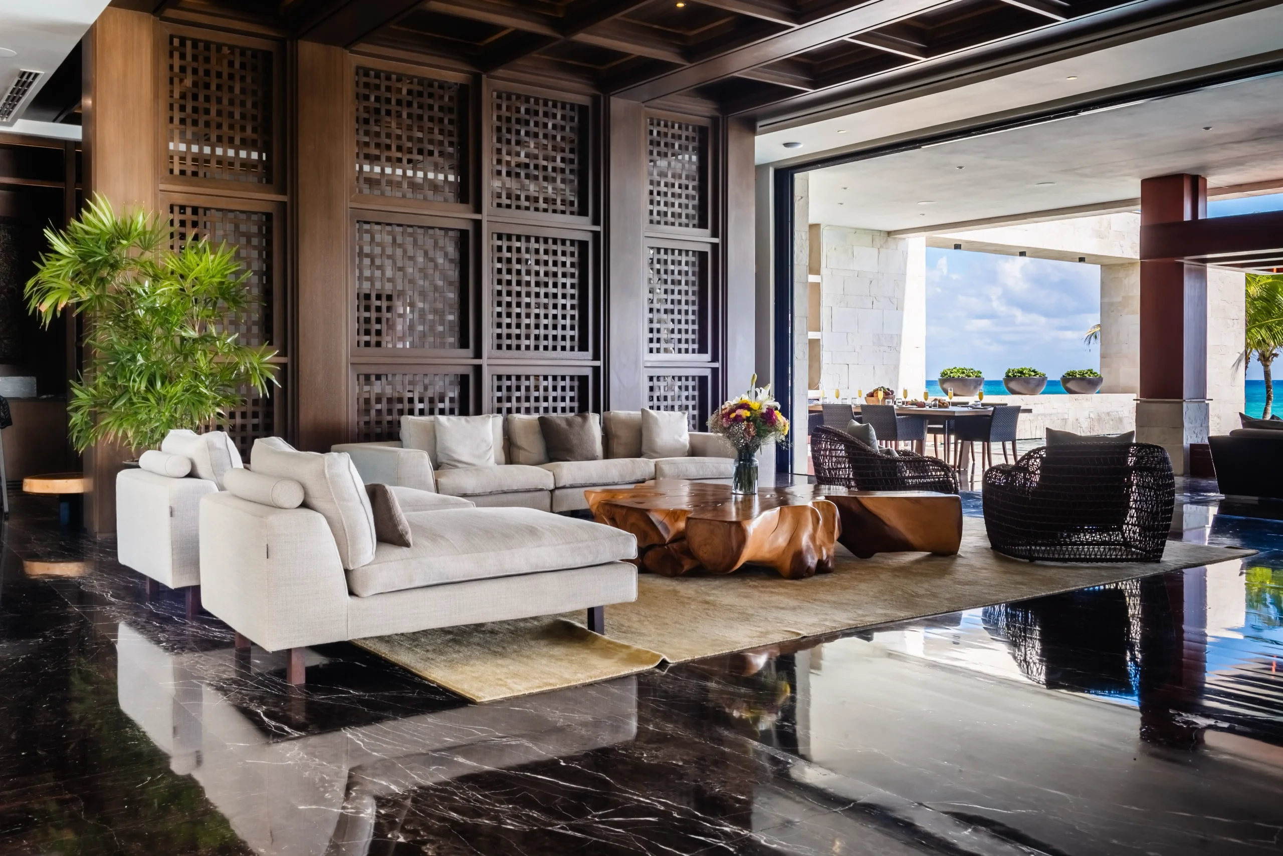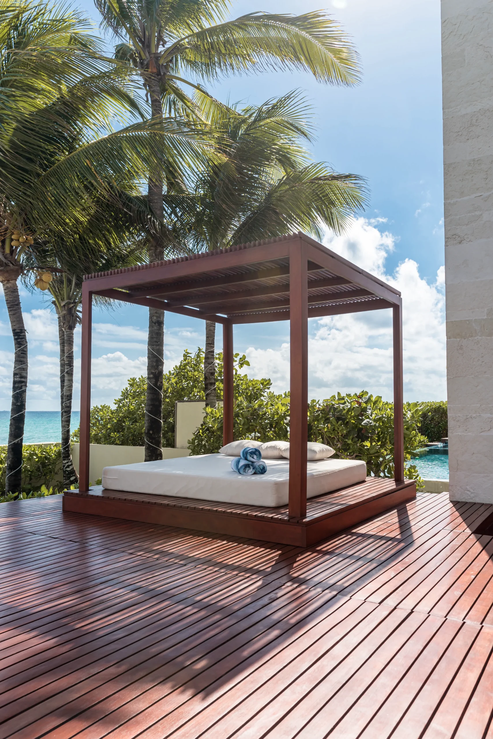 The outdoor spaces at Casa Nube Blanca offer a seamless connection to the beauty of the Mexican Caribbean: