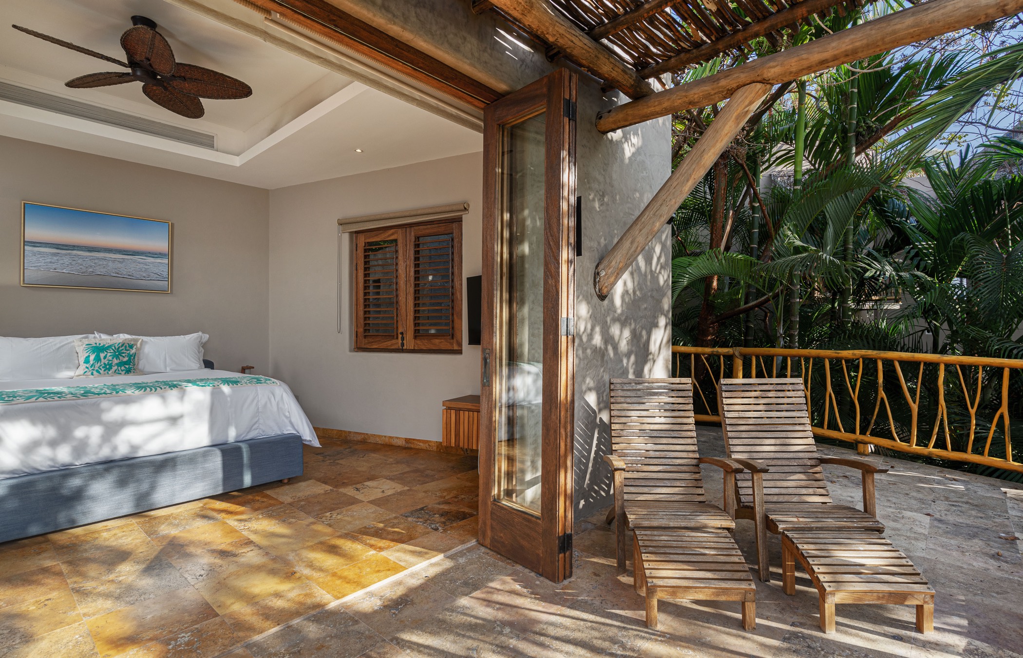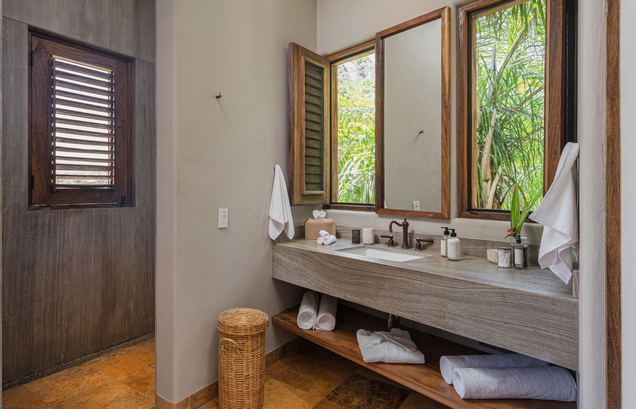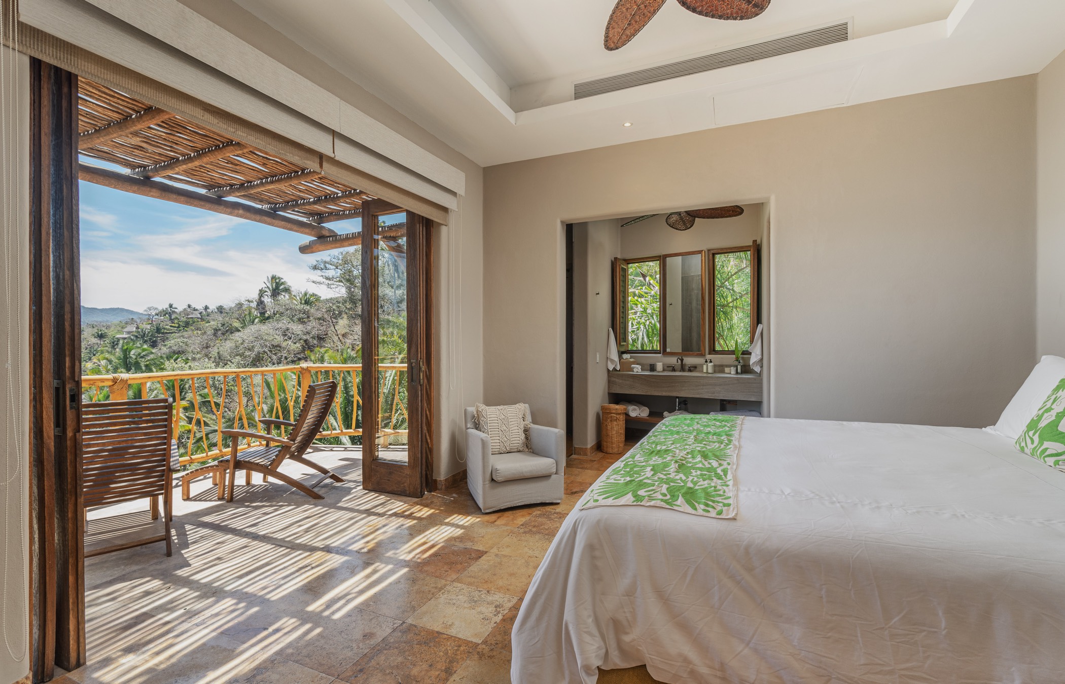Every room in Casa Paraiso promises a mesmerizing view of the vast ocean or the picturesque mountain landscape of Sayulita. Each luxurious chamber has state-of-the-art amenities, including A/C, HD satellite TV, and high-speed internet. Two rooms offer unique external showers set in a verdant jungle backdrop, providing a closer connection to nature.